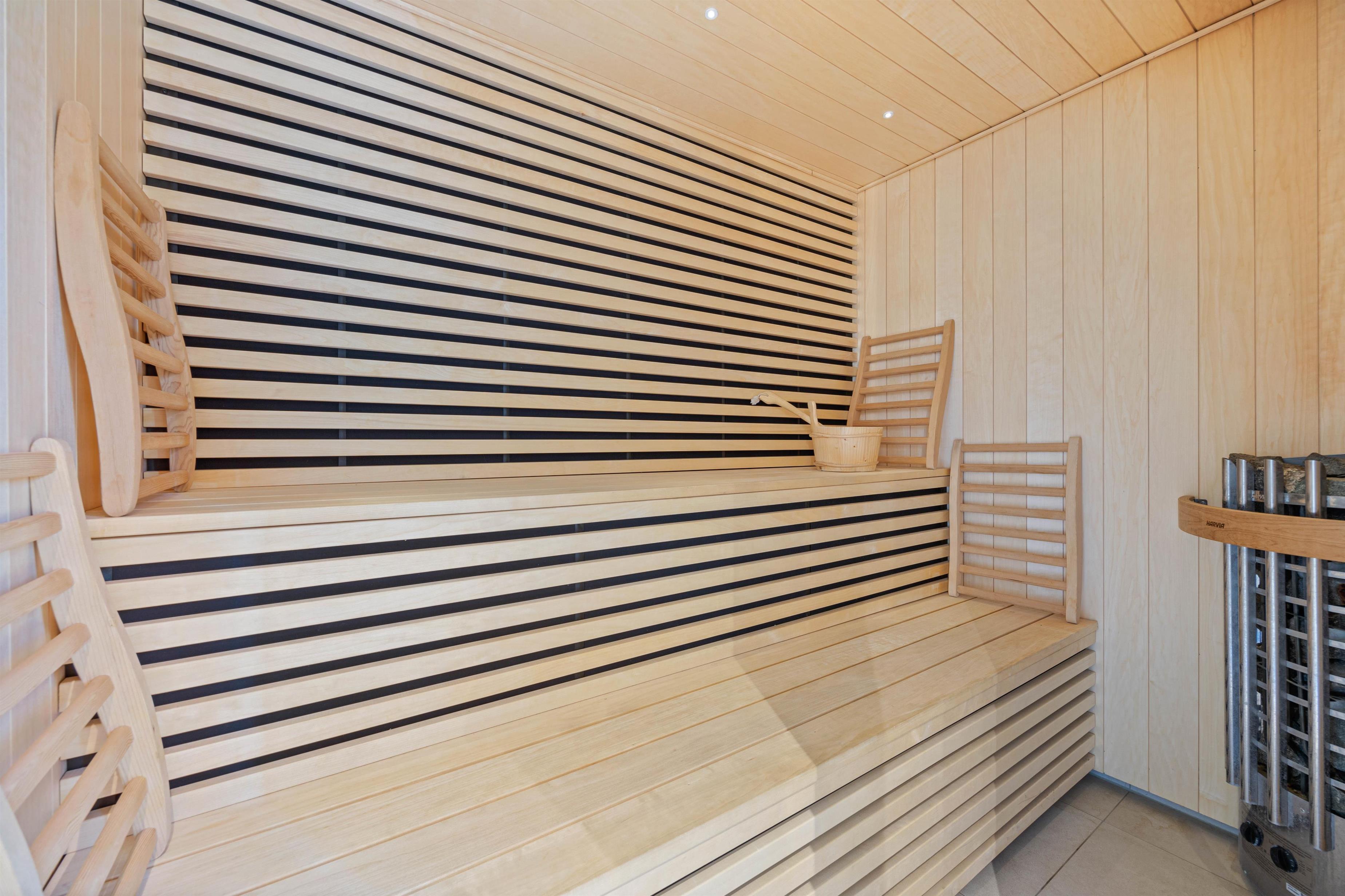 One of the bathrooms conceals a wellness haven: here you'll find your private sauna, the perfect spot to relax and recharge for the holiday days ahead. A heat pump ensures comfortable temperatures throughout the holiday home.