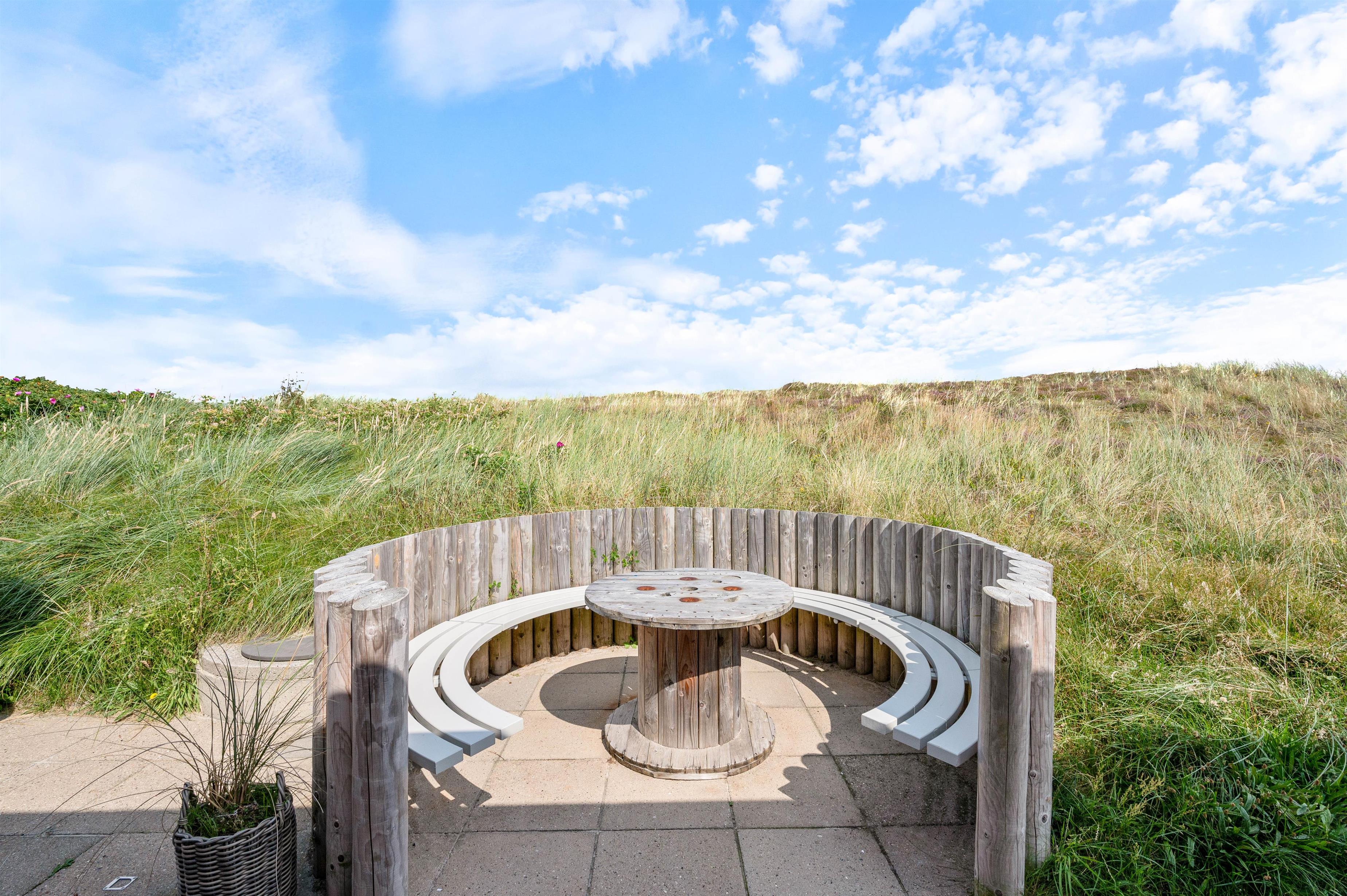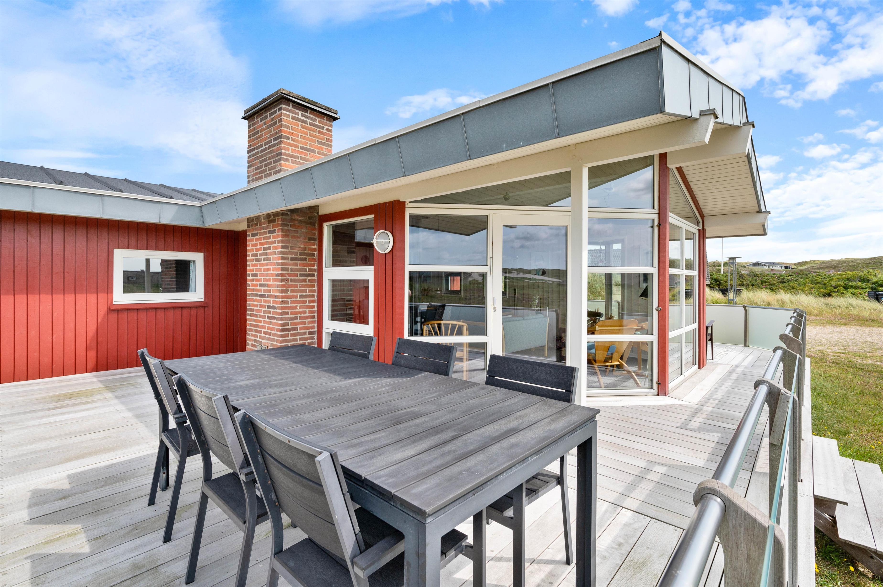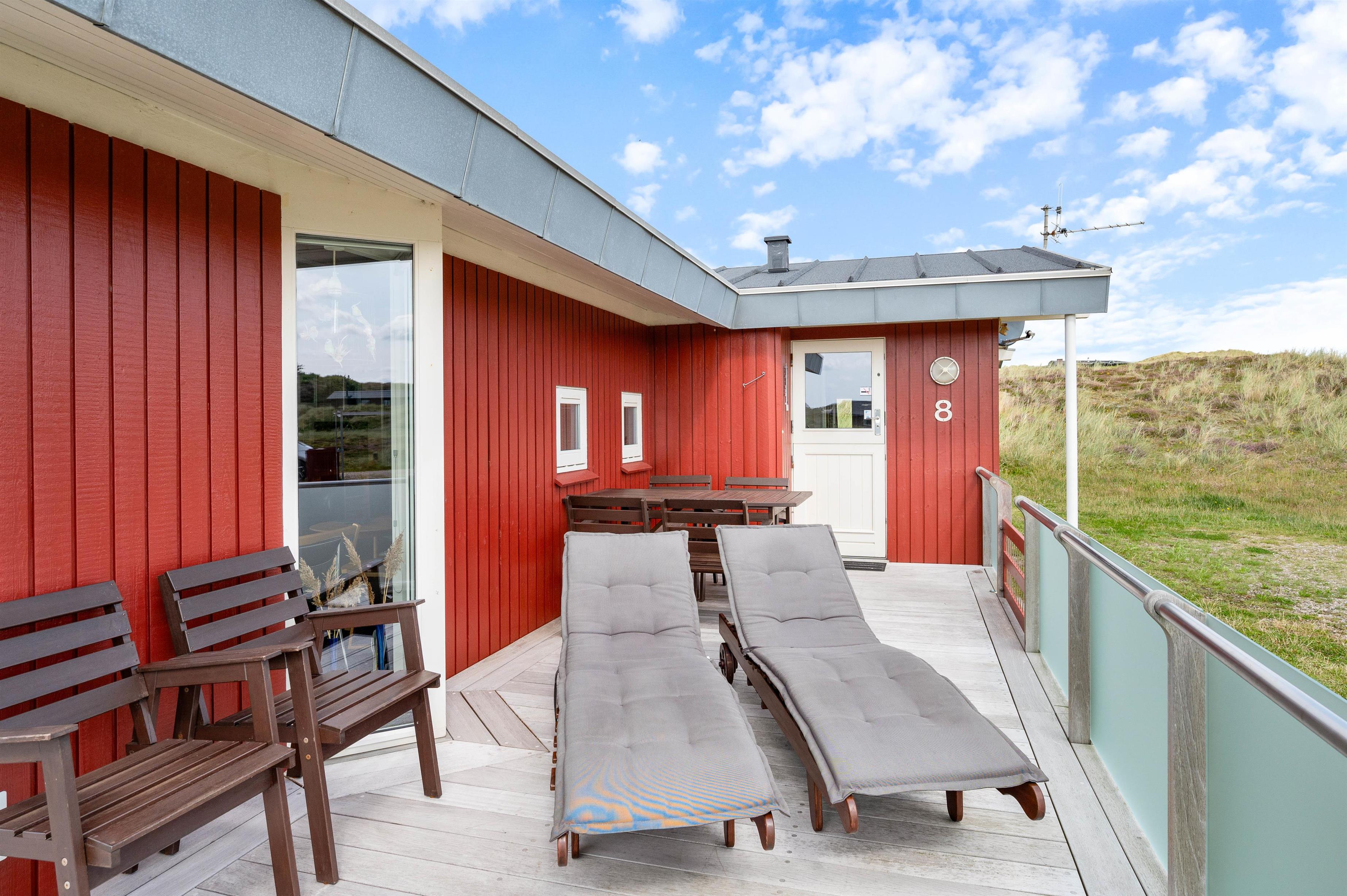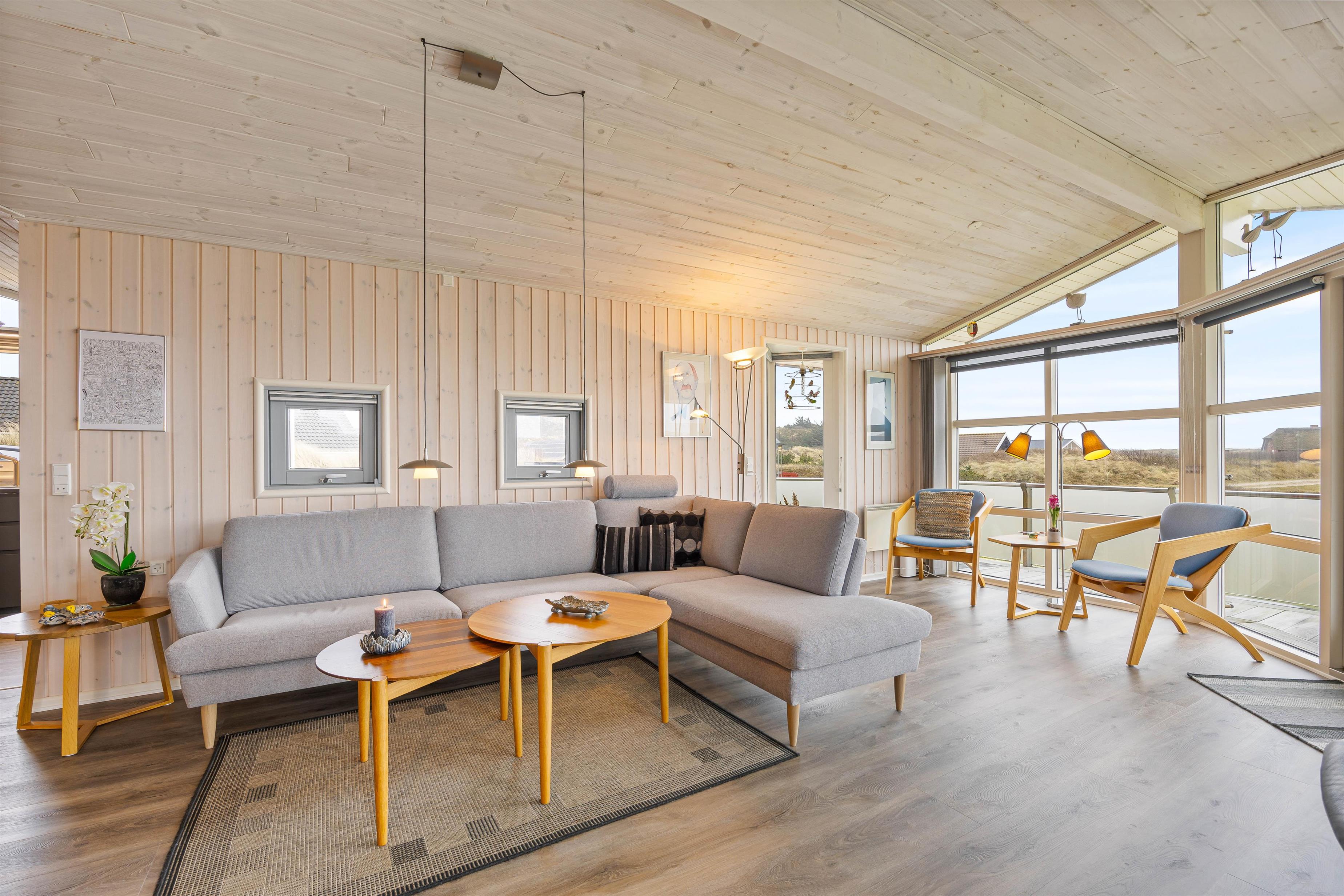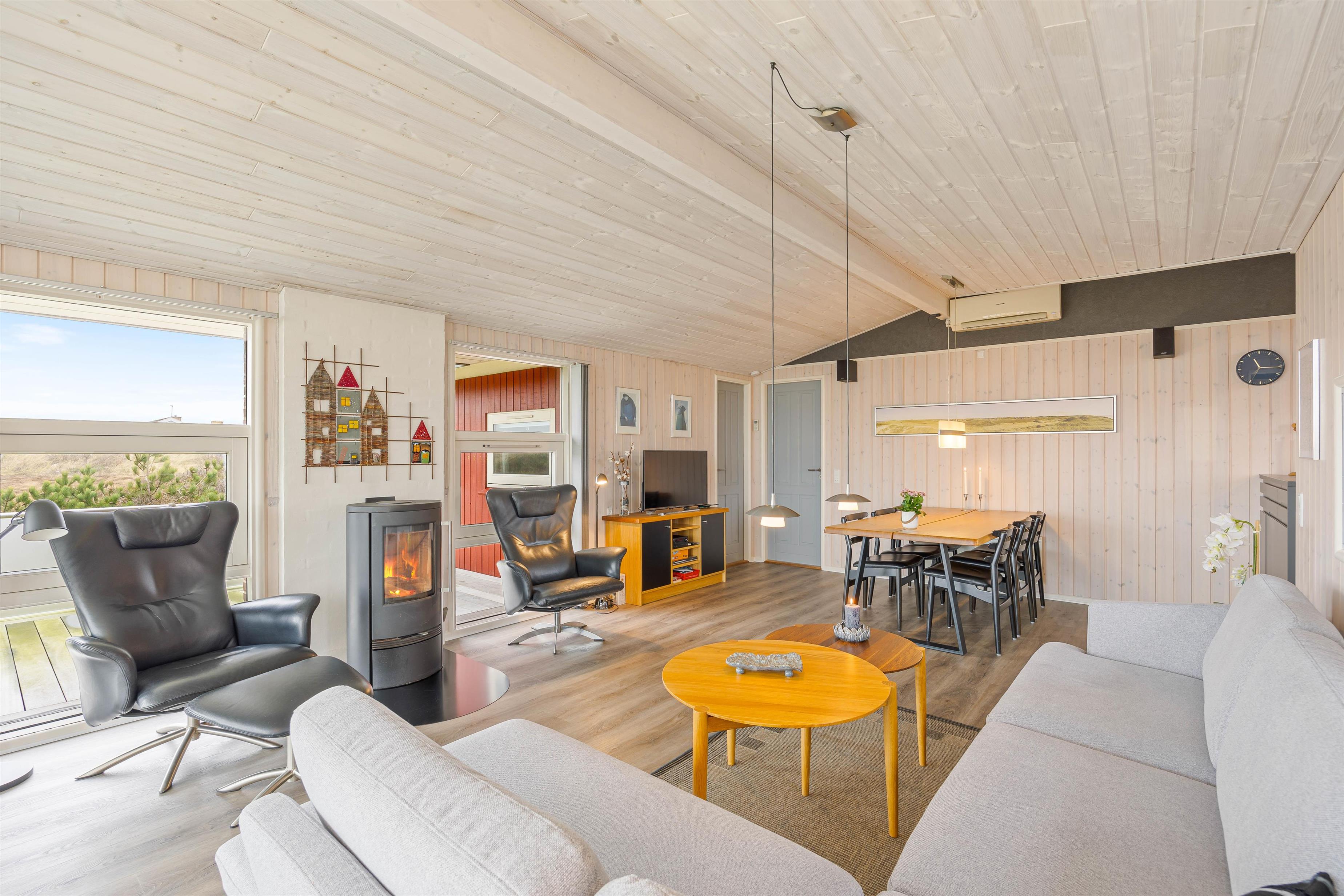 The large living room provides access to both terraces through patio doors. The holiday home on Sandvej 8 features both east and west-facing terraces. Enjoy your morning coffee on the east-facing terrace as the sun rises and the new day begins.