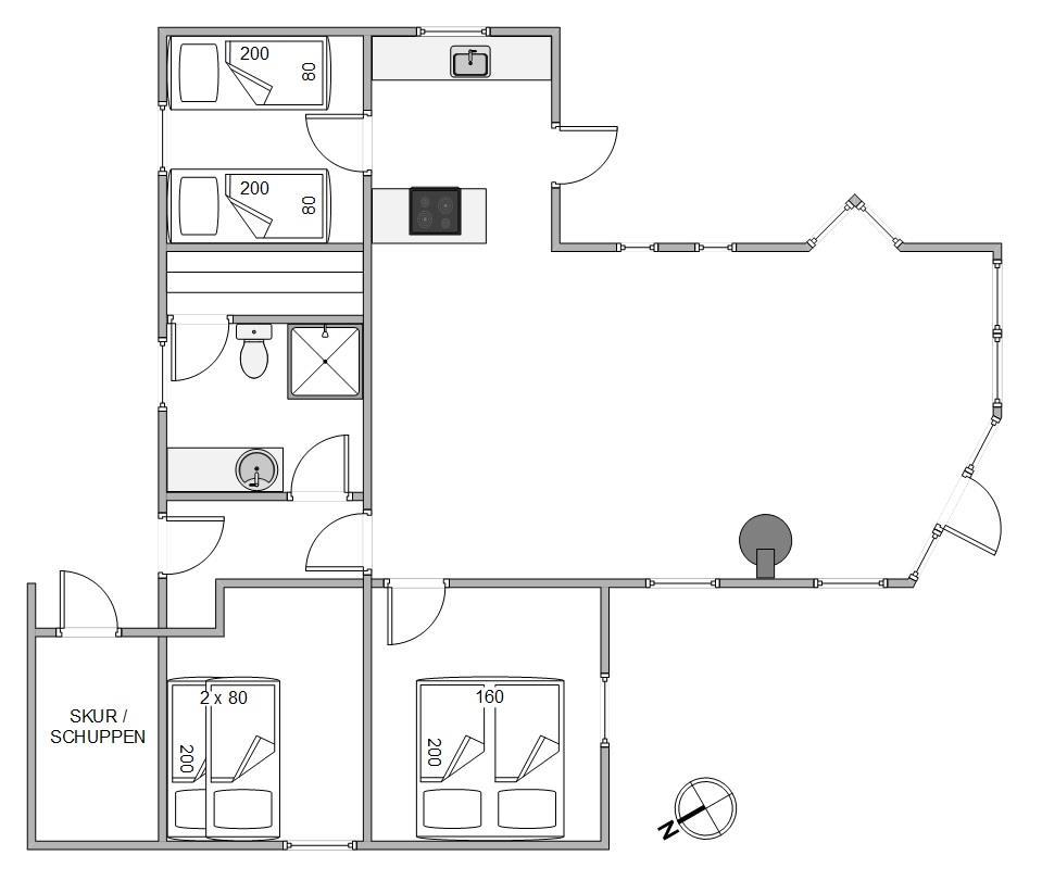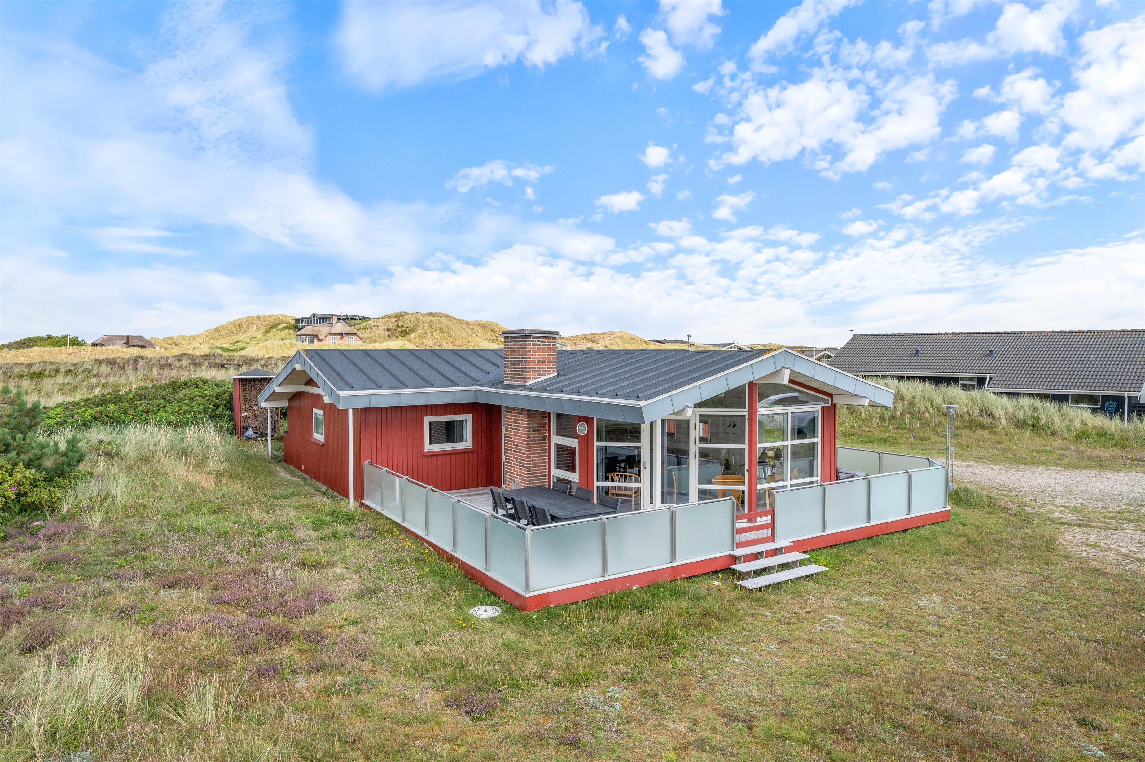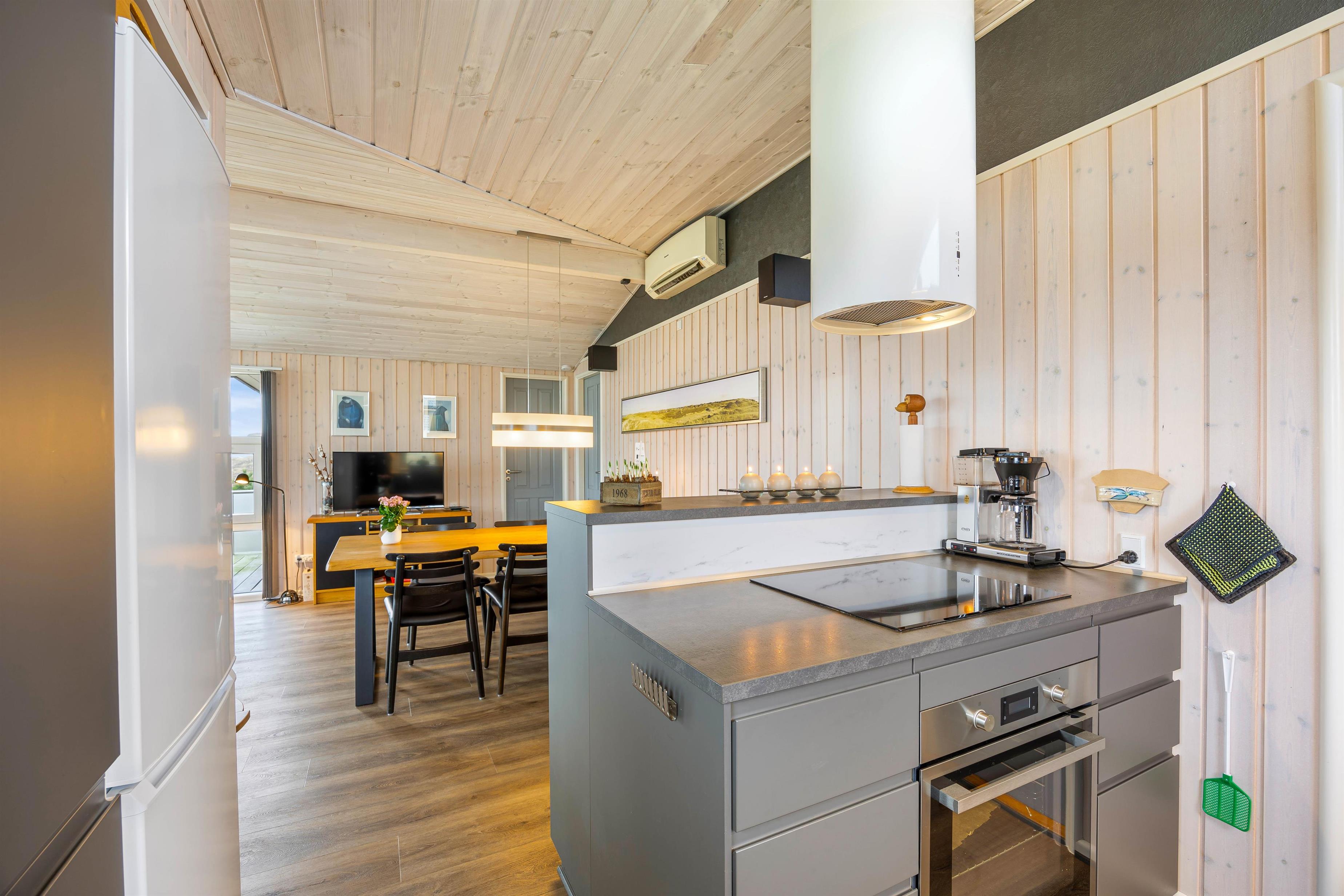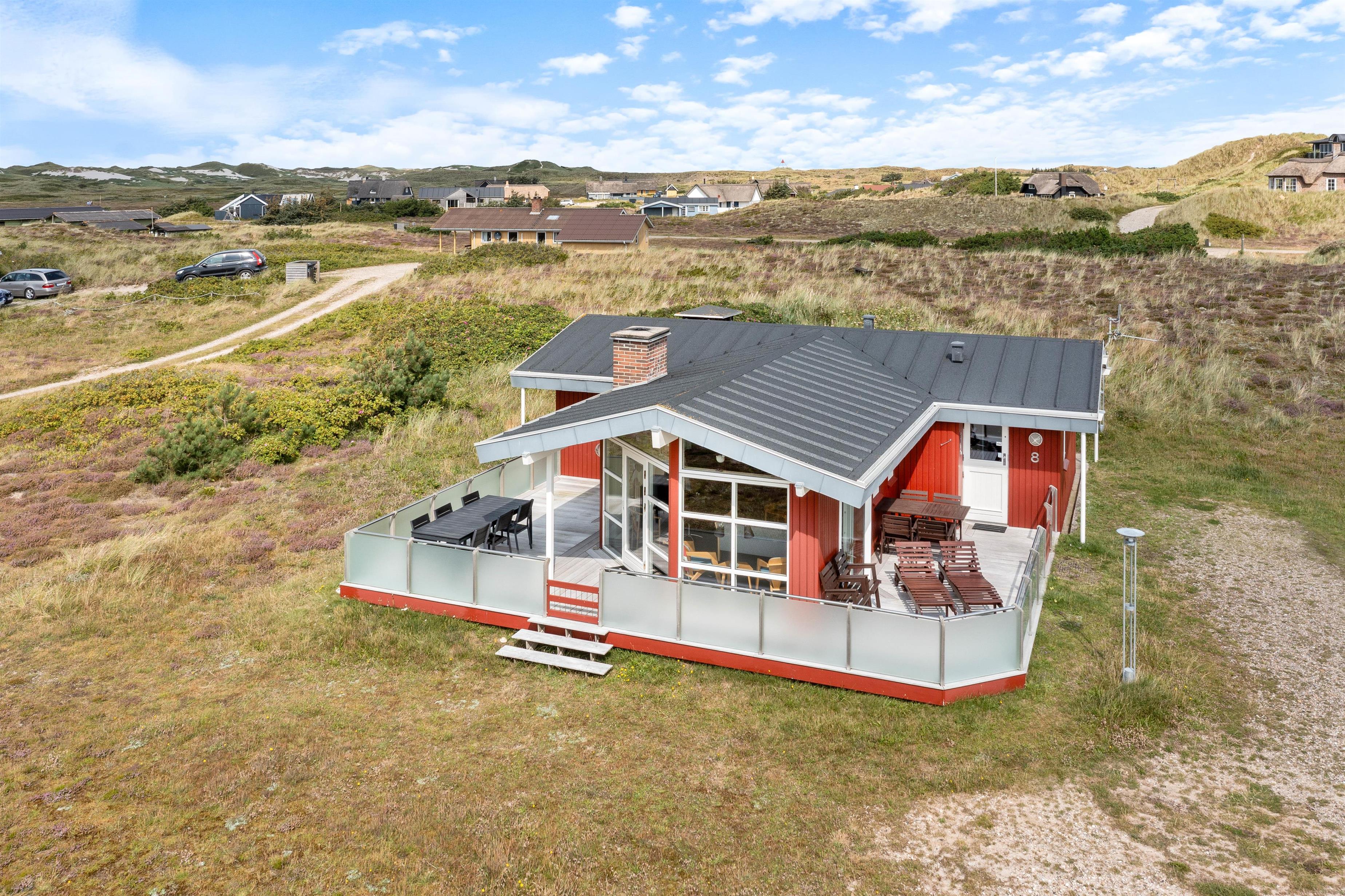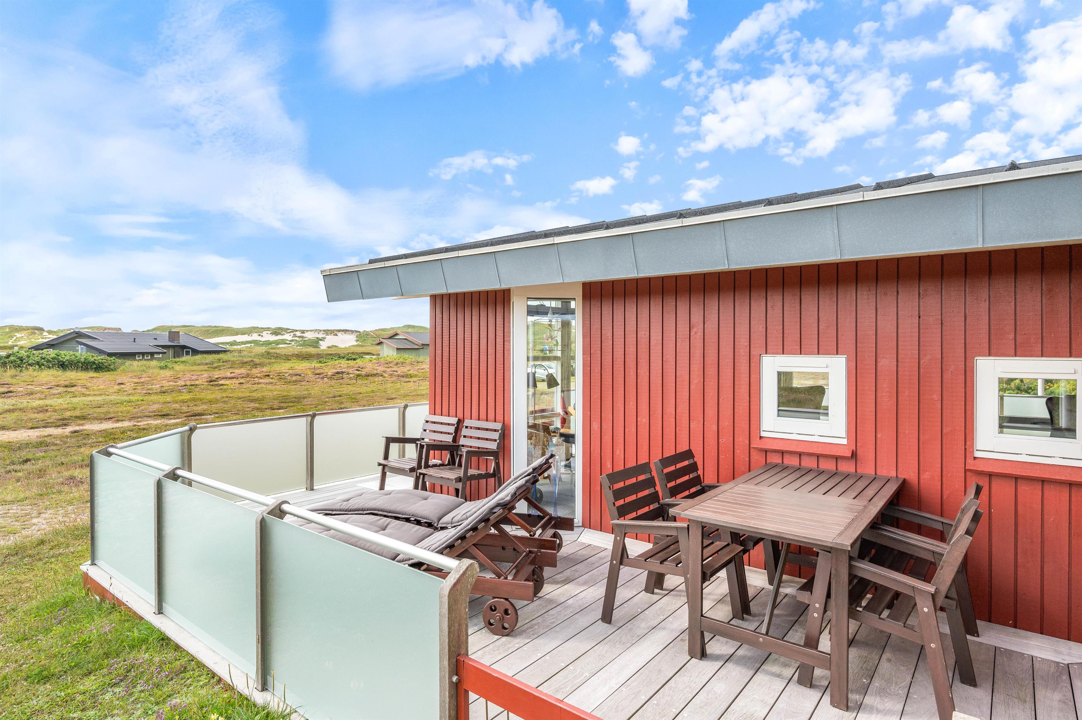 The large living room provides access to both terraces through patio doors. The holiday home on Sandvej 8 features both east and west-facing terraces. Enjoy your morning coffee on the east-facing terrace as the sun rises and the new day begins.