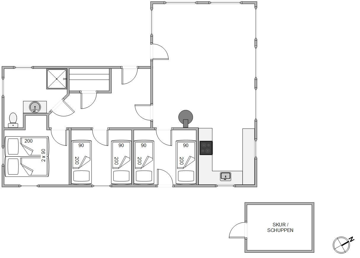 Sommervej 48 comfortably accommodates up to 6 people and your dog. Three bedrooms - one with a double bed and two with twin beds each - provide peaceful spaces for rest and relaxation. One bedroom offers access to the east-facing terrace, perfect for enjoying your morning coffee in the summer sunshine.
