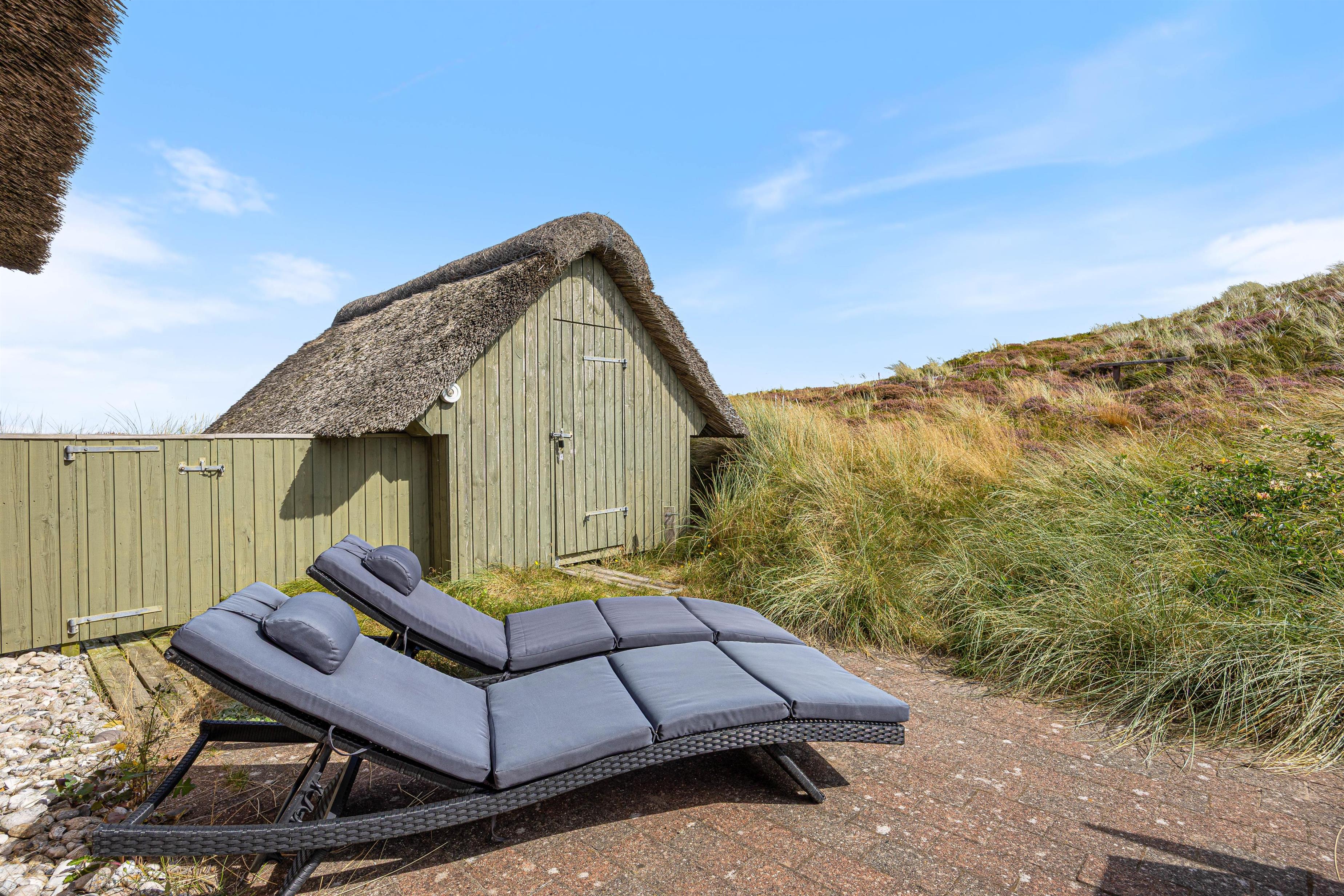 From the south-facing terrace, you'll enjoy magnificent views across the wild and partially untouched natural landscape, with dunes in the background. To the west, there's an unobstructed view of the outer dune line, with the North Sea just 400 metres away.