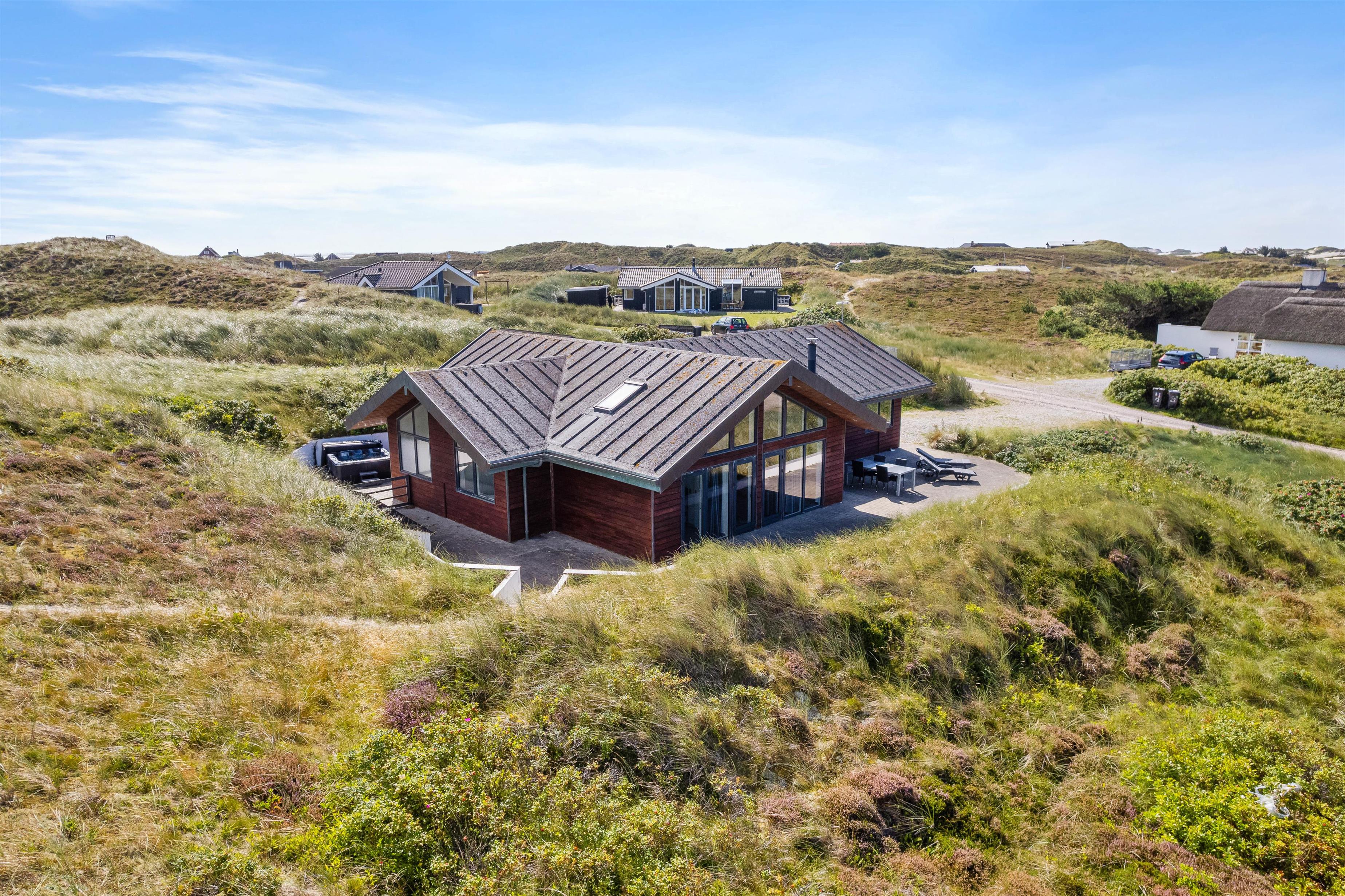 Your holiday home in Skodbjerge sits on the Holmsland Klit peninsula, between the rolling North Sea to the west and the beautiful Ringkøbing Fjord to the east. It's perfect for water sports enthusiasts, nature lovers and anglers alike.