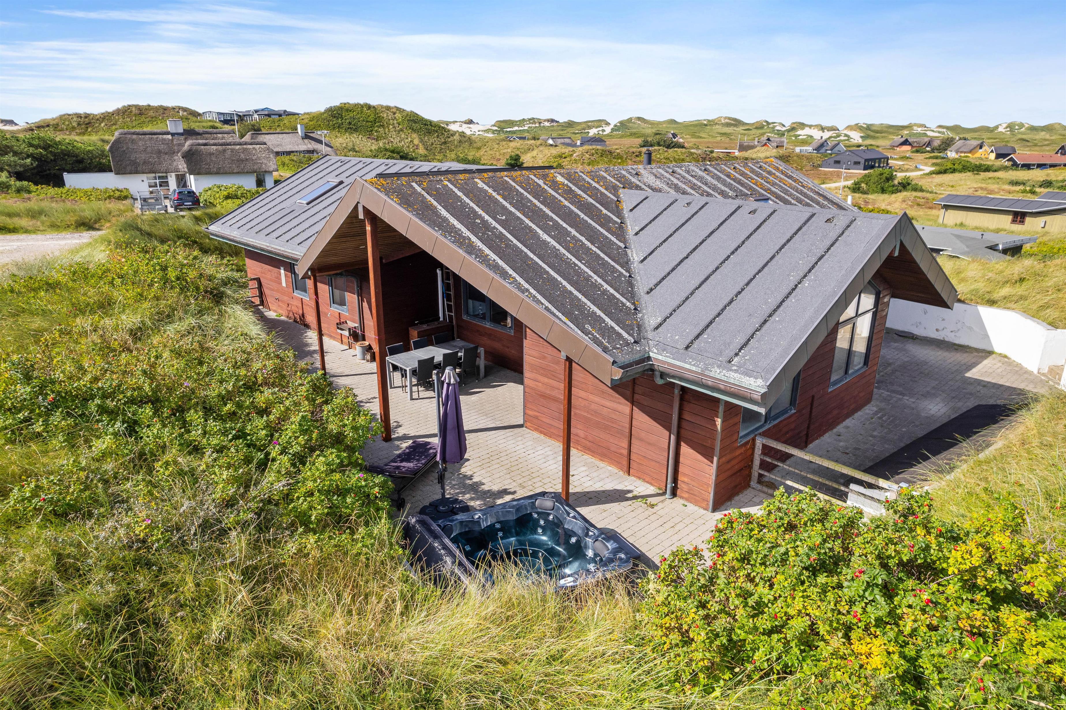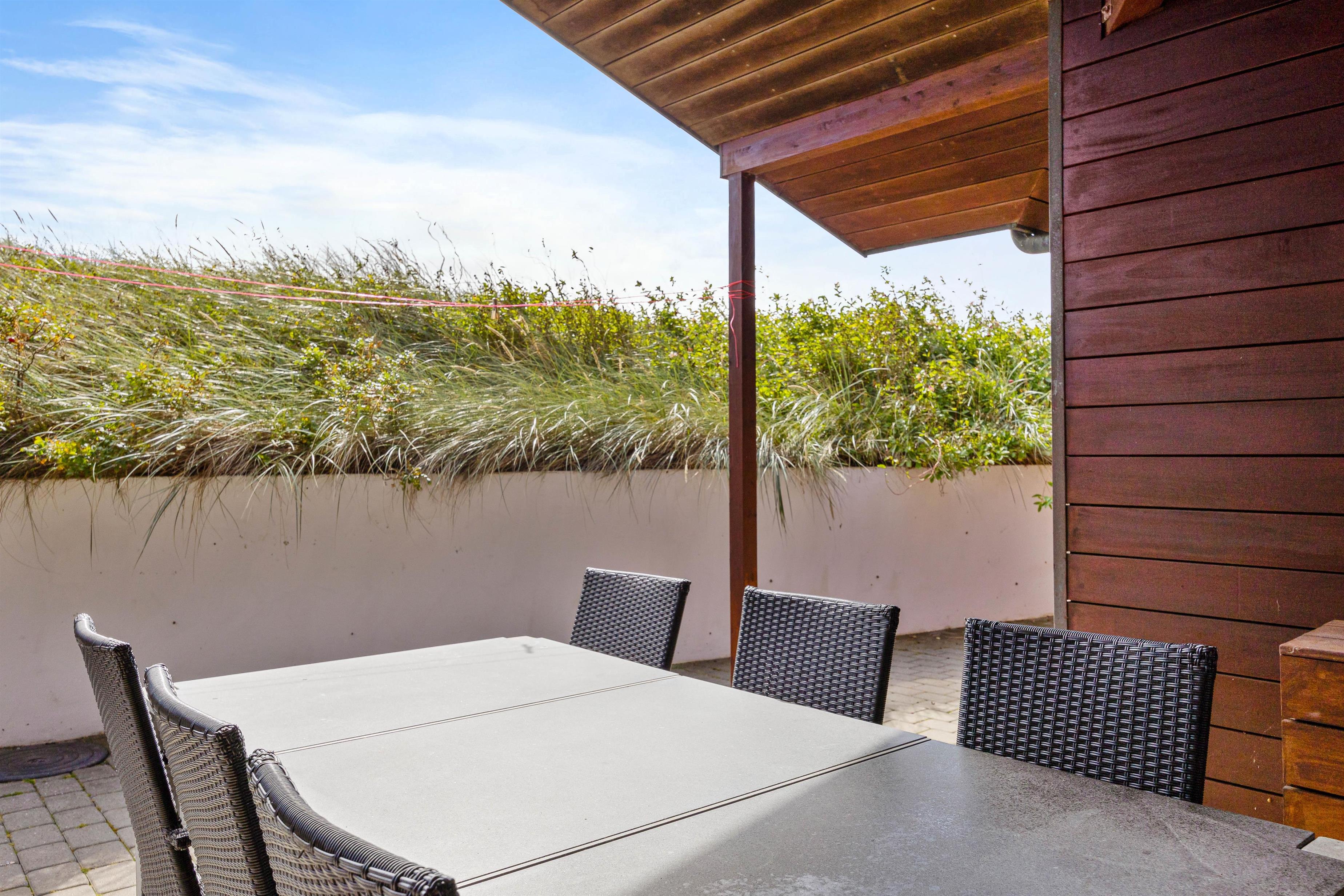 Several terrace areas surround the holiday home, allowing you to enjoy nature - whether relaxing in a deck chair, dining alfresco, or having pleasant barbecue evenings. As the terraces wrap around the holiday home, you can almost always find a sheltered spot.