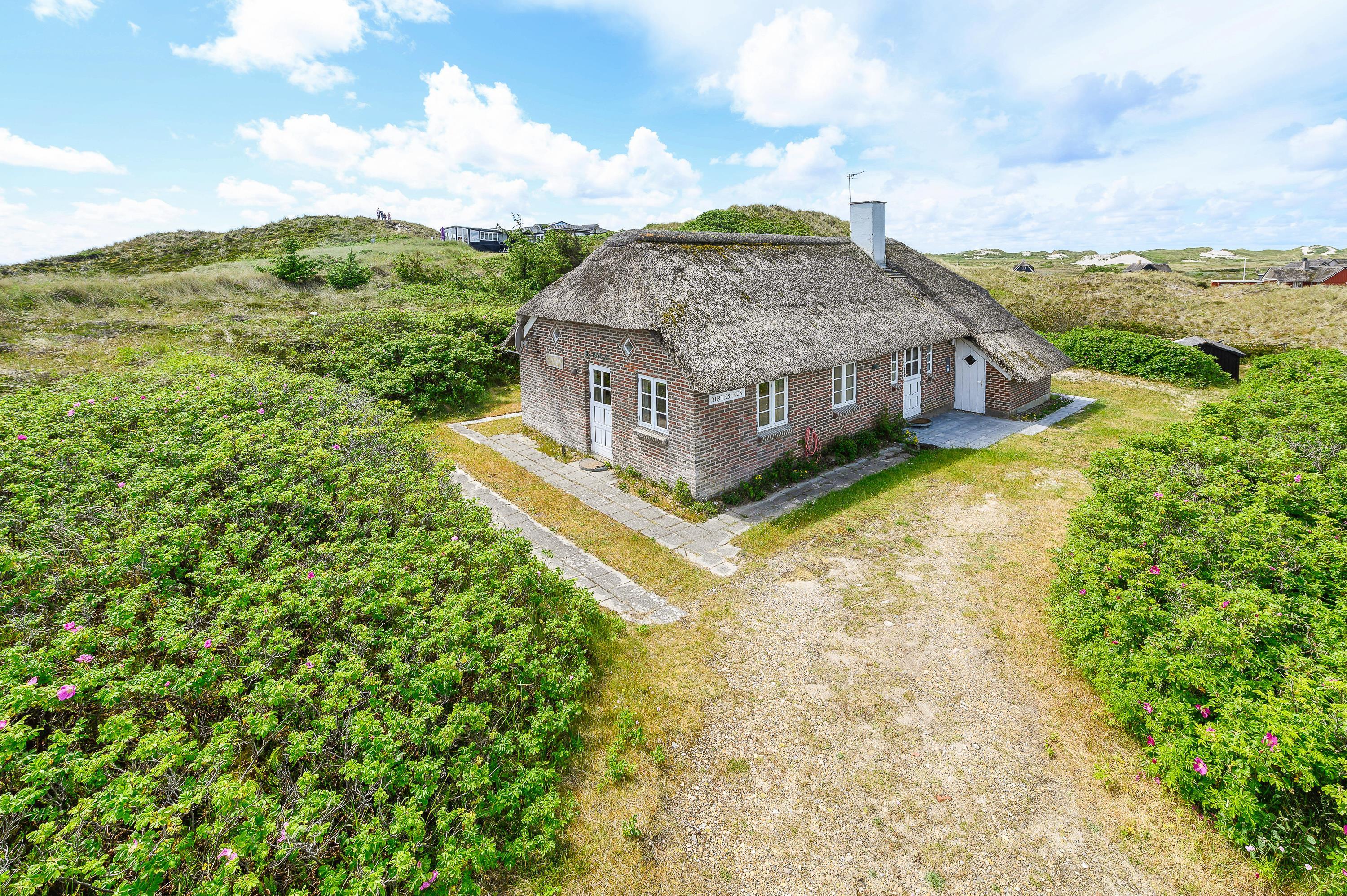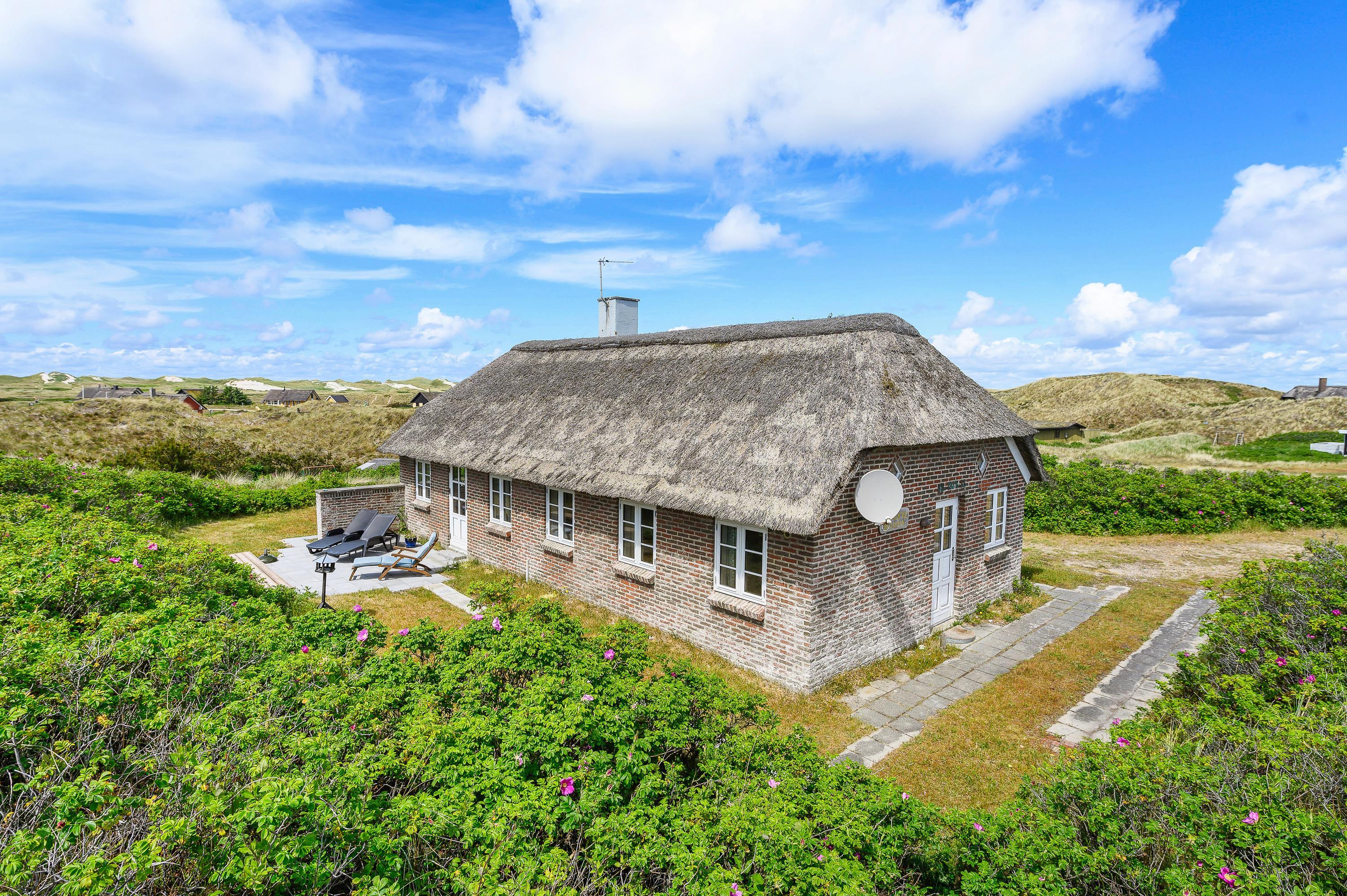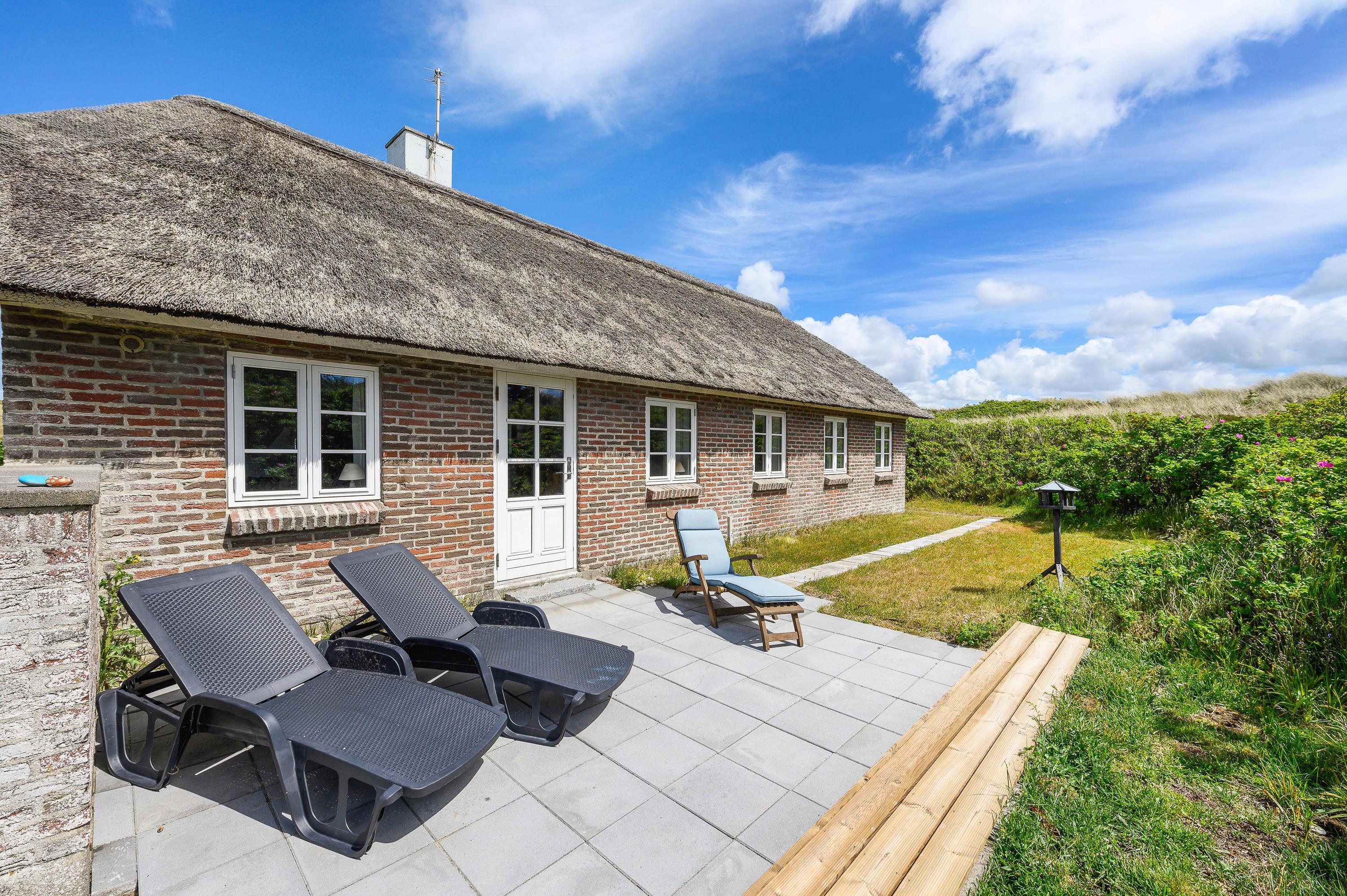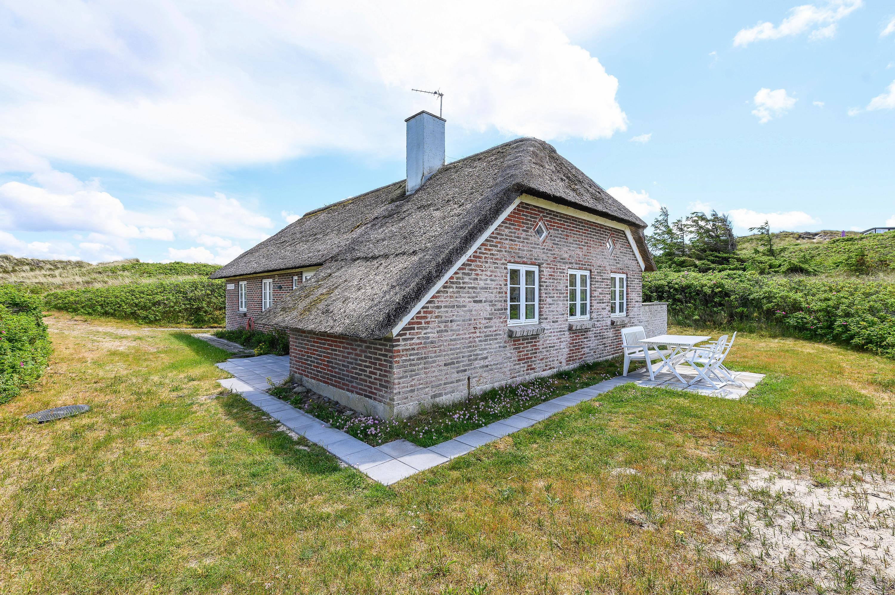 This charming thatched holiday home enjoys a secluded position in Skodbjerge, set within dune grounds of 4,500 square metres. The views across the landscape are exceptional. Up to 5 people can enjoy a relaxing holiday in this holiday home, and you're welcome to bring one dog.