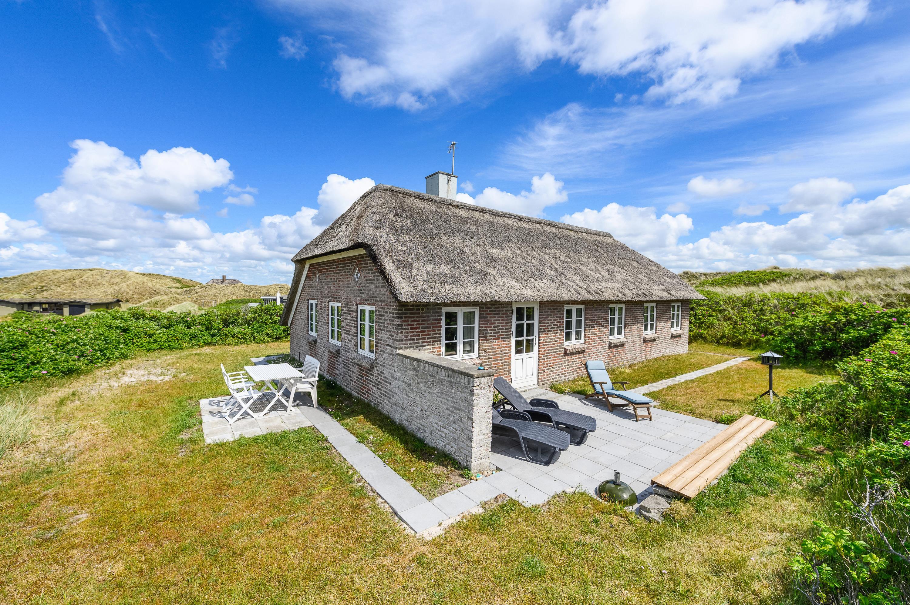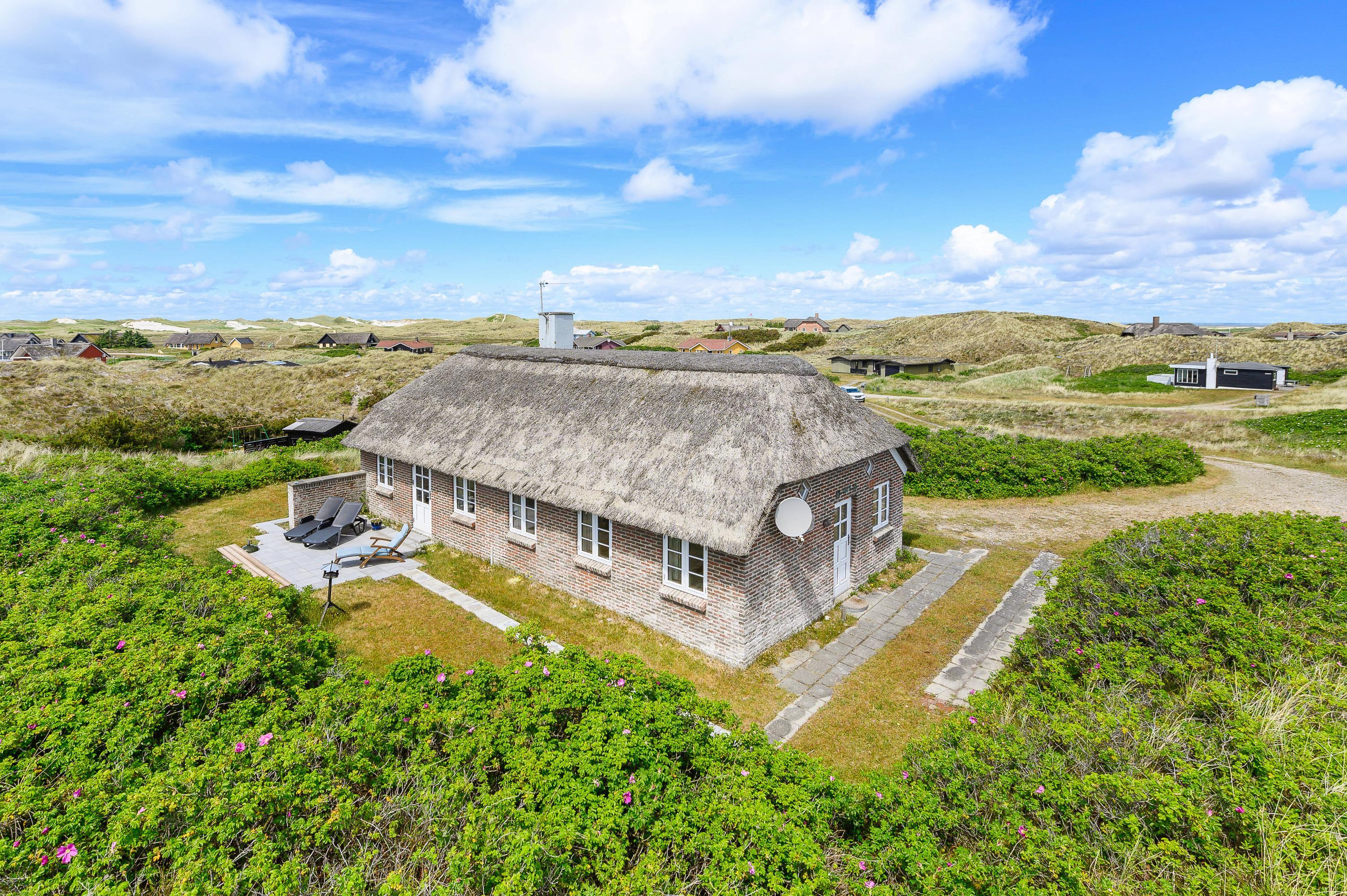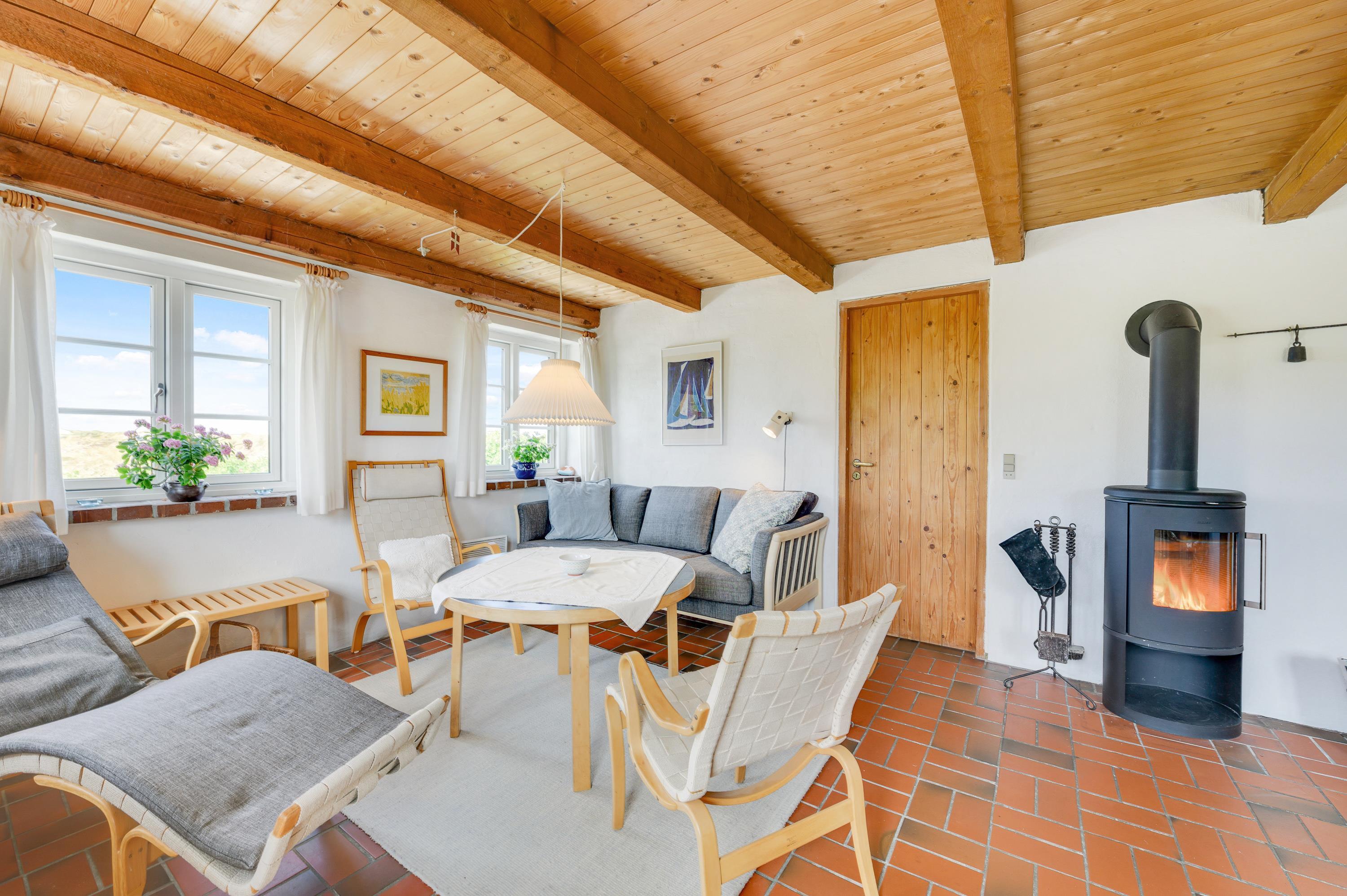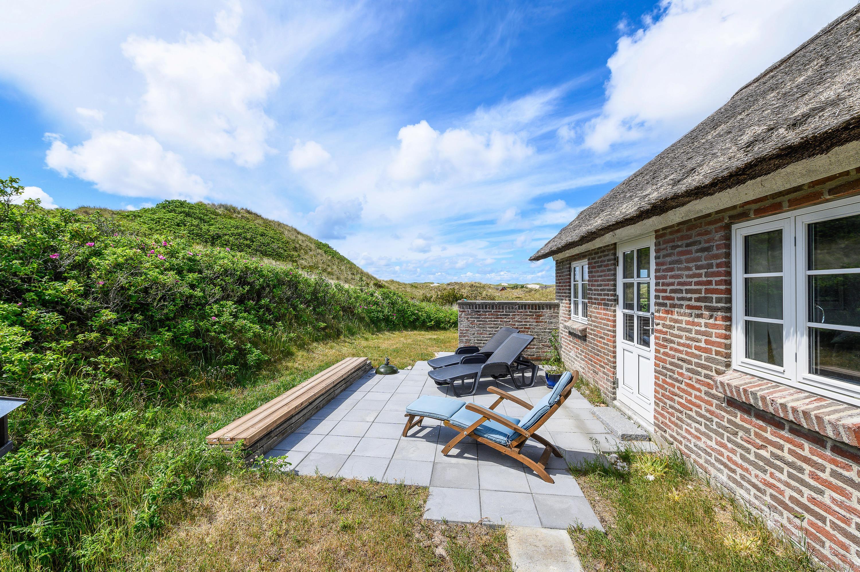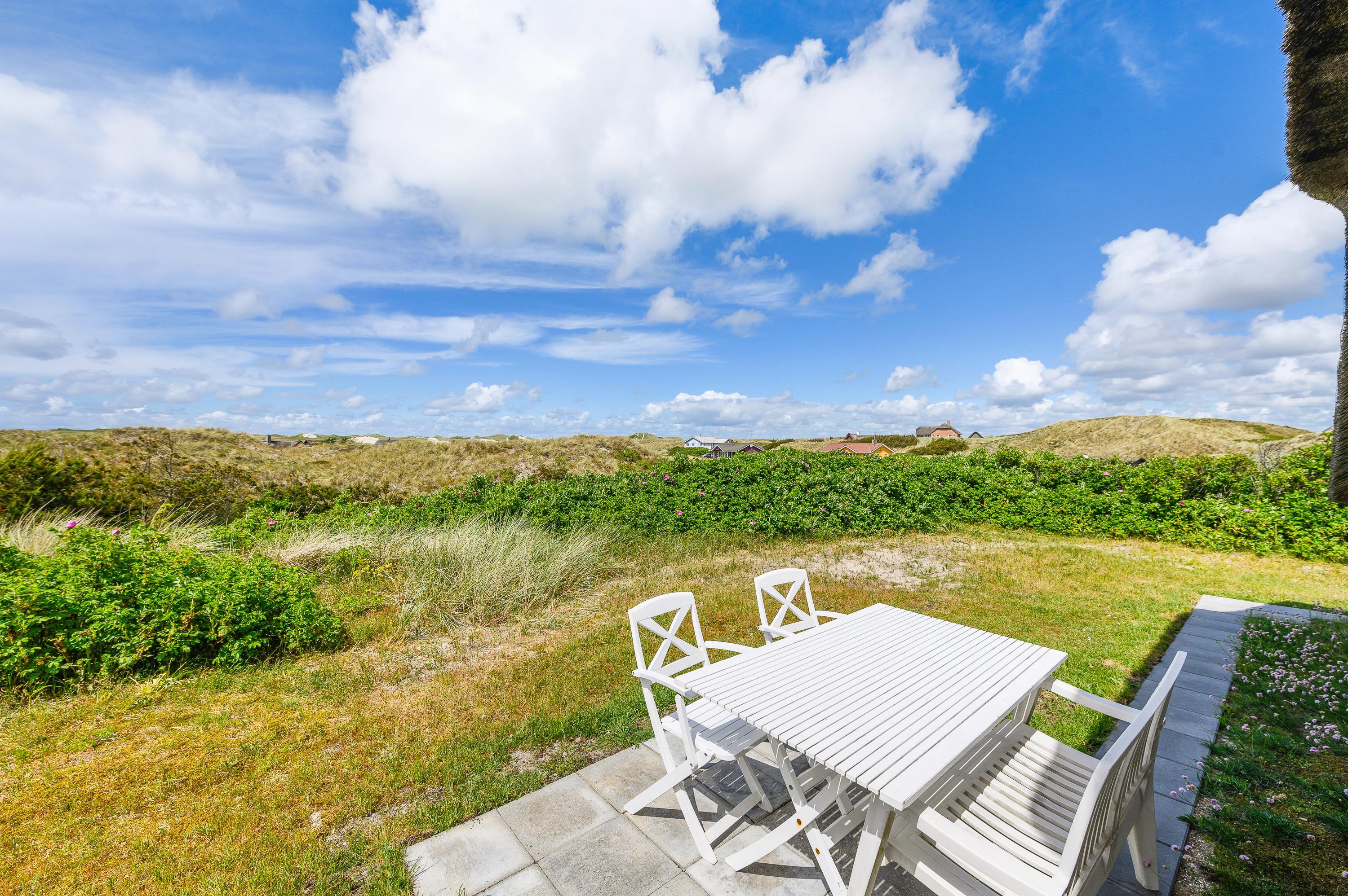 This charming thatched holiday home enjoys a secluded position in Skodbjerge, set within dune grounds of 4,500 square metres. The views across the landscape are exceptional. Up to 5 people can enjoy a relaxing holiday in this holiday home, and you're welcome to bring one dog.