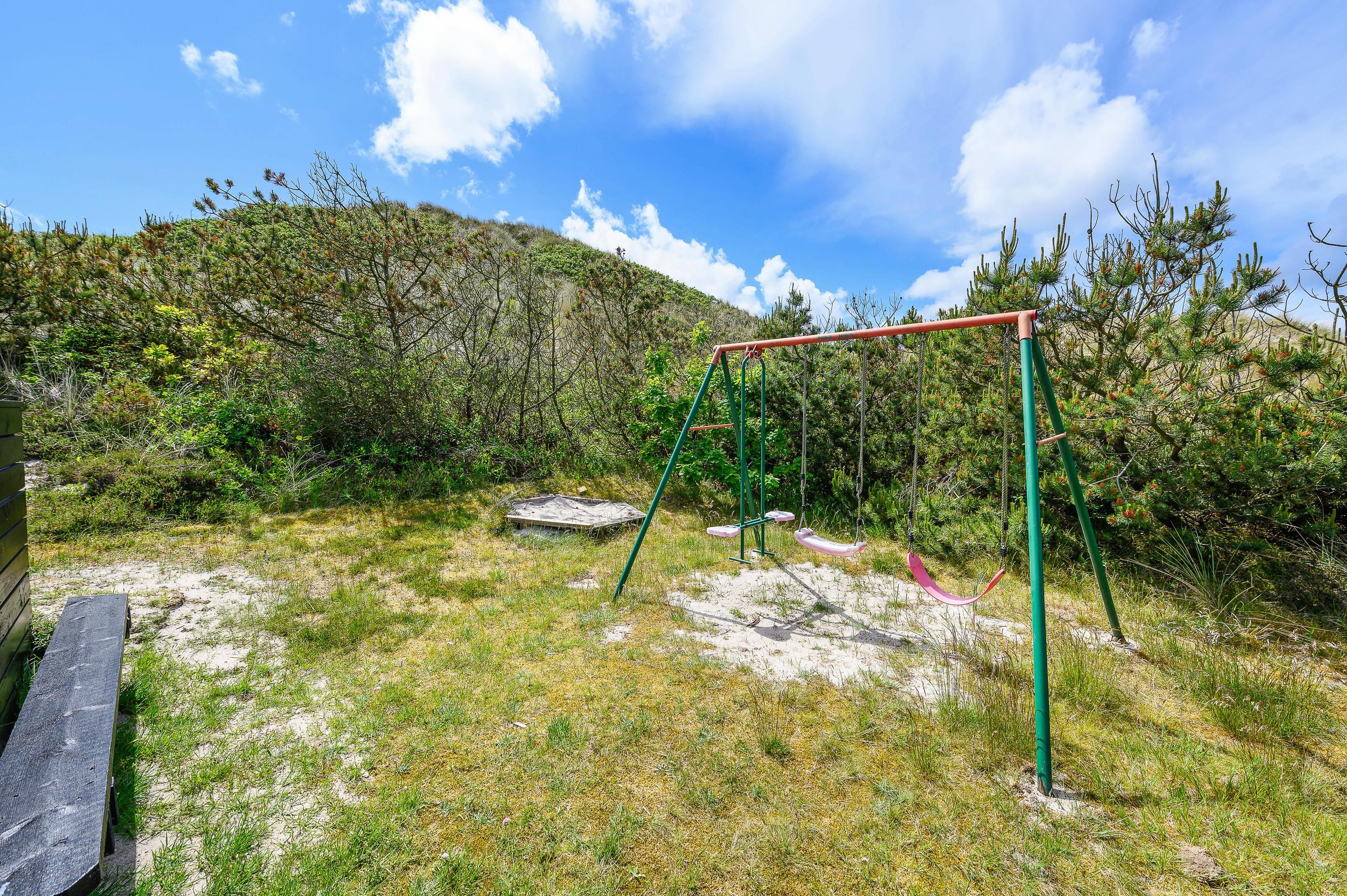 Children's play area with swing, sandpit and climbing frame