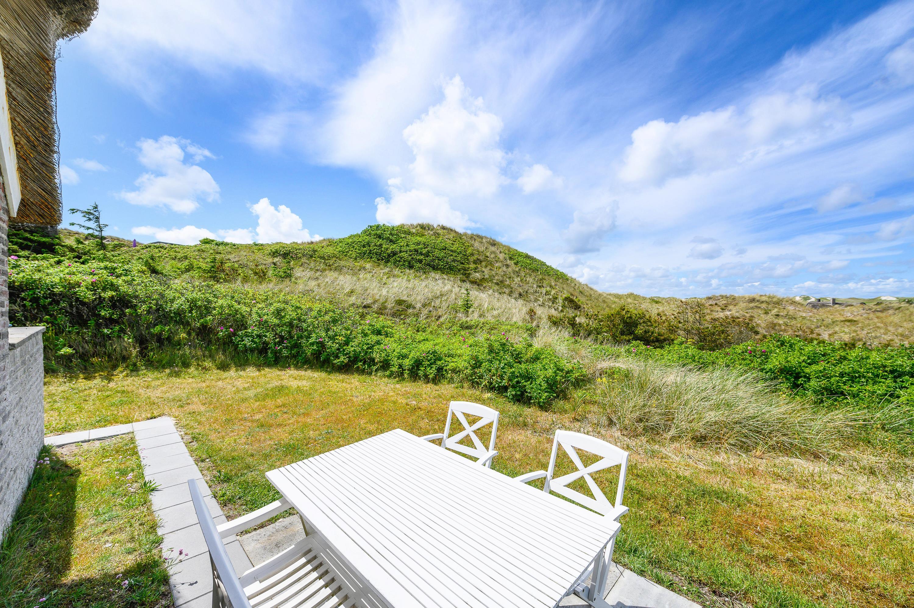 The holiday home sits on a 4,500-square-metre dune plot, offering plenty of distance from neighbouring properties and excellent privacy. From here, you'll enjoy magnificent views across the dune landscape. The North Sea is just 400 metres away.