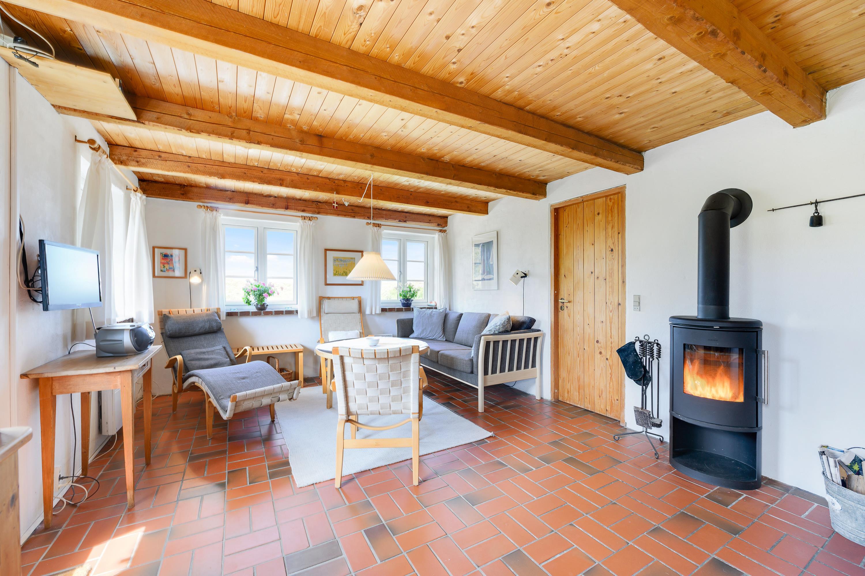 This welcoming brick-built holiday home is ideal for a relaxing holiday, including with a dog if you wish. The living room features exposed ceiling beams and a lovely wood-burning stove, creating an authentic, traditional holiday cottage atmosphere. An energy-efficient heat pump is also available for heating.