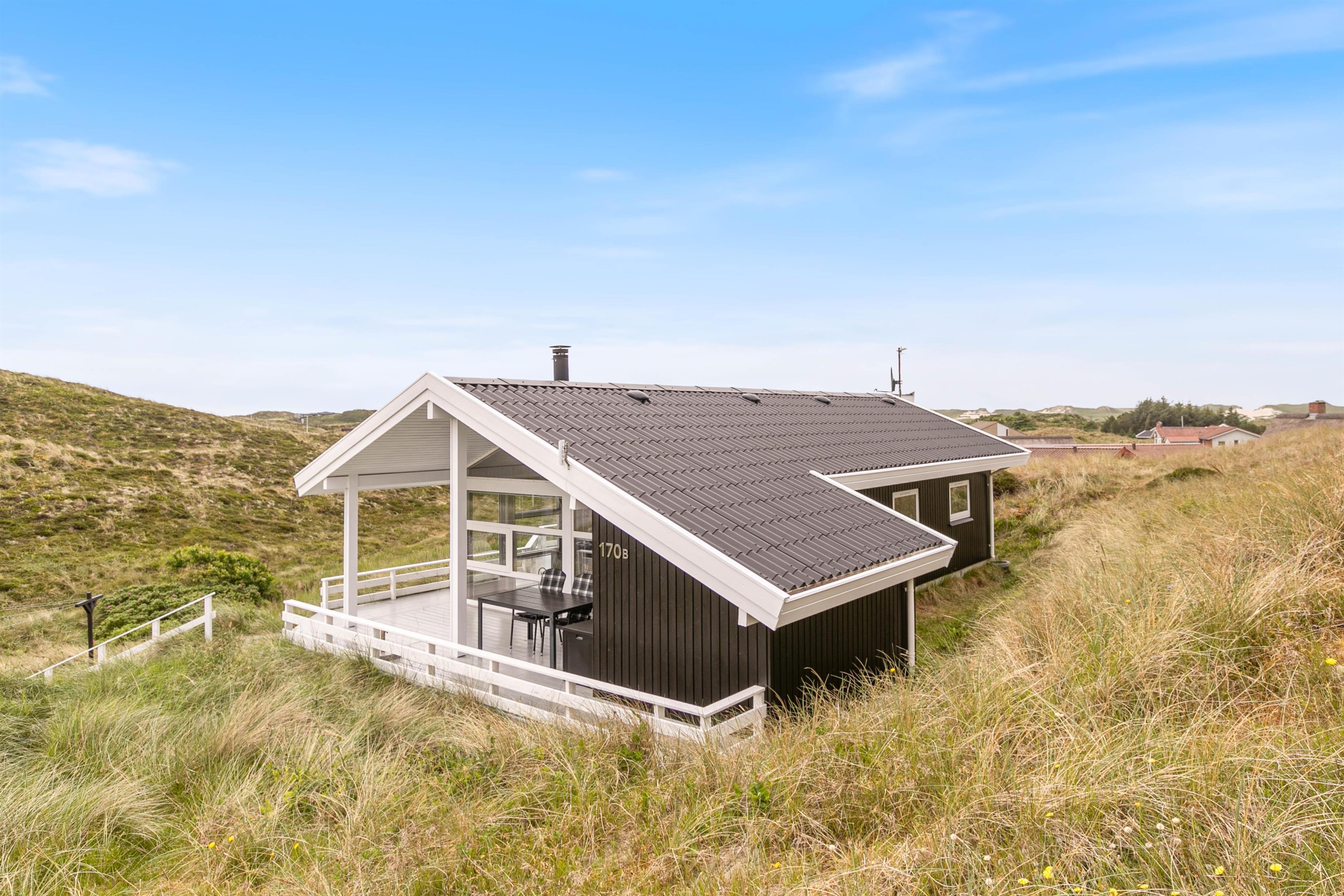 Welcome to Sønder Klitvej 170b, a bright and welcoming holiday home on the Danish west coast. Spanning 77 square metres of comfortable, practical living space, this holiday home features a sauna, hot tub and wood-burning stove. The highlight is undoubtedly the cosy wooden terrace offering fantastic views over Ringkøbing Fjord.