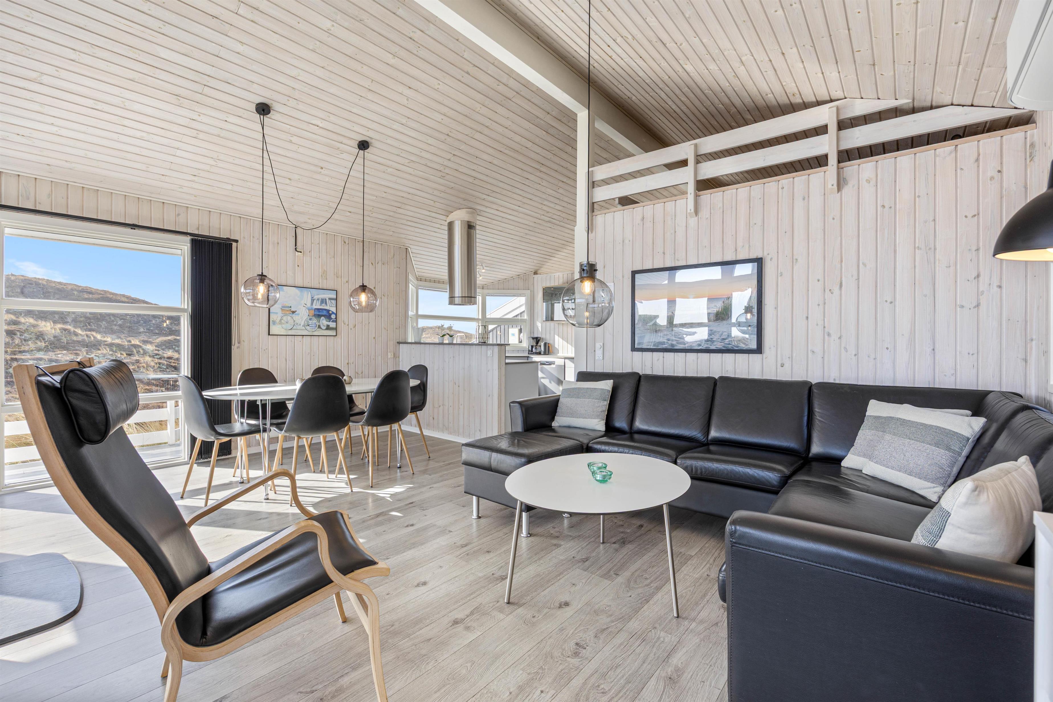 This typical Danish holiday home comfortably accommodates up to six guests. Large windows in the living area flood the space with natural light while offering beautiful views across the Danish west coast's natural landscape.