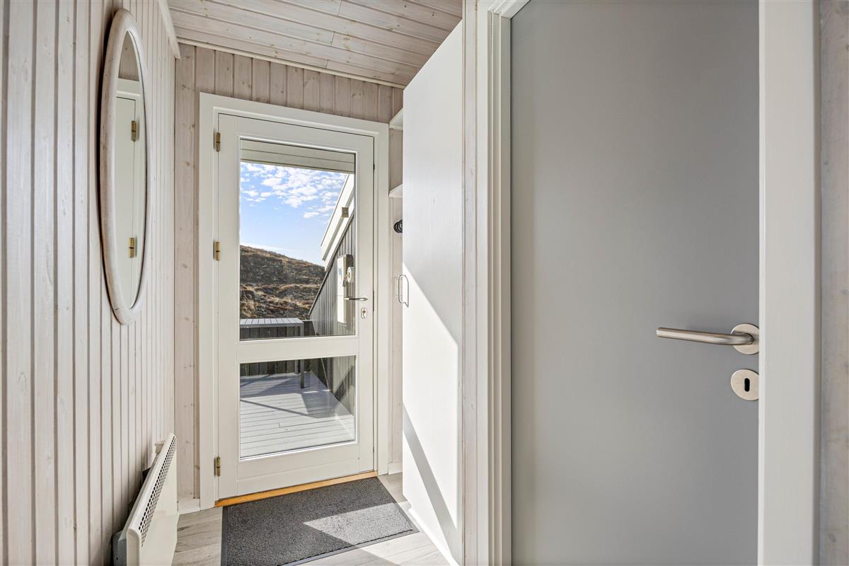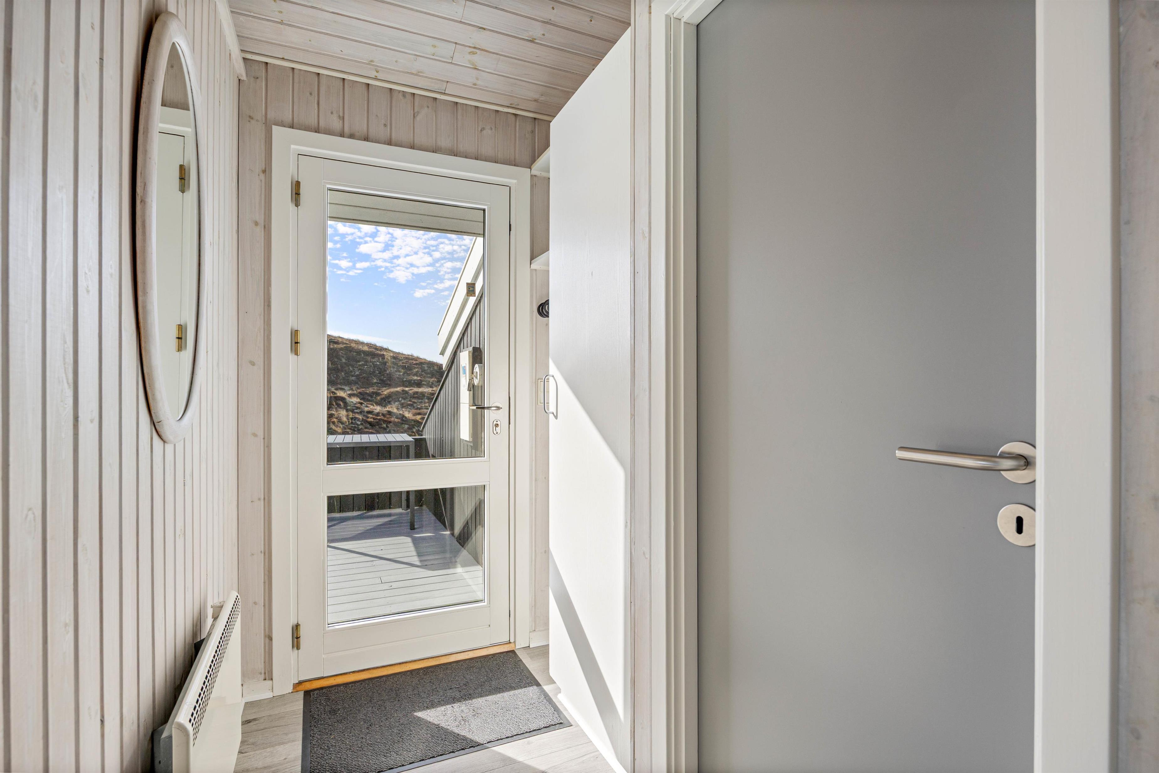 Your holiday home sits on a dune plot of approximately 3,000 square metres. The sheltered, partially covered terrace features comfortable garden furniture and sun loungers. Start your day by enjoying breakfast as the sun rises over the fjord. A barbecue is also available for evening entertaining.