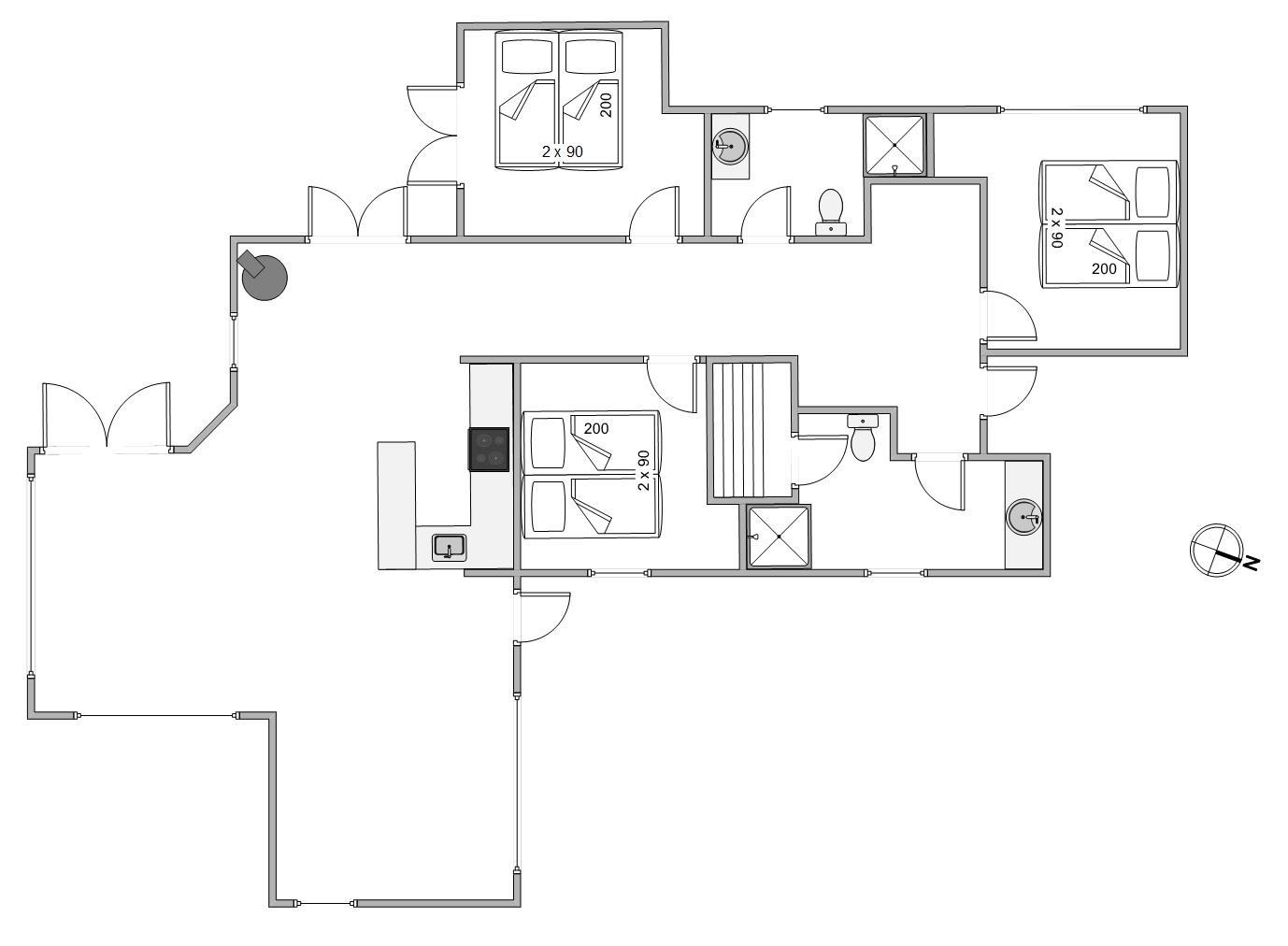 There are 3 bright bedrooms, each with a double bed. The house also features 2 bathrooms, one of which includes a sauna. Here you can warm up properly and recharge your energy.