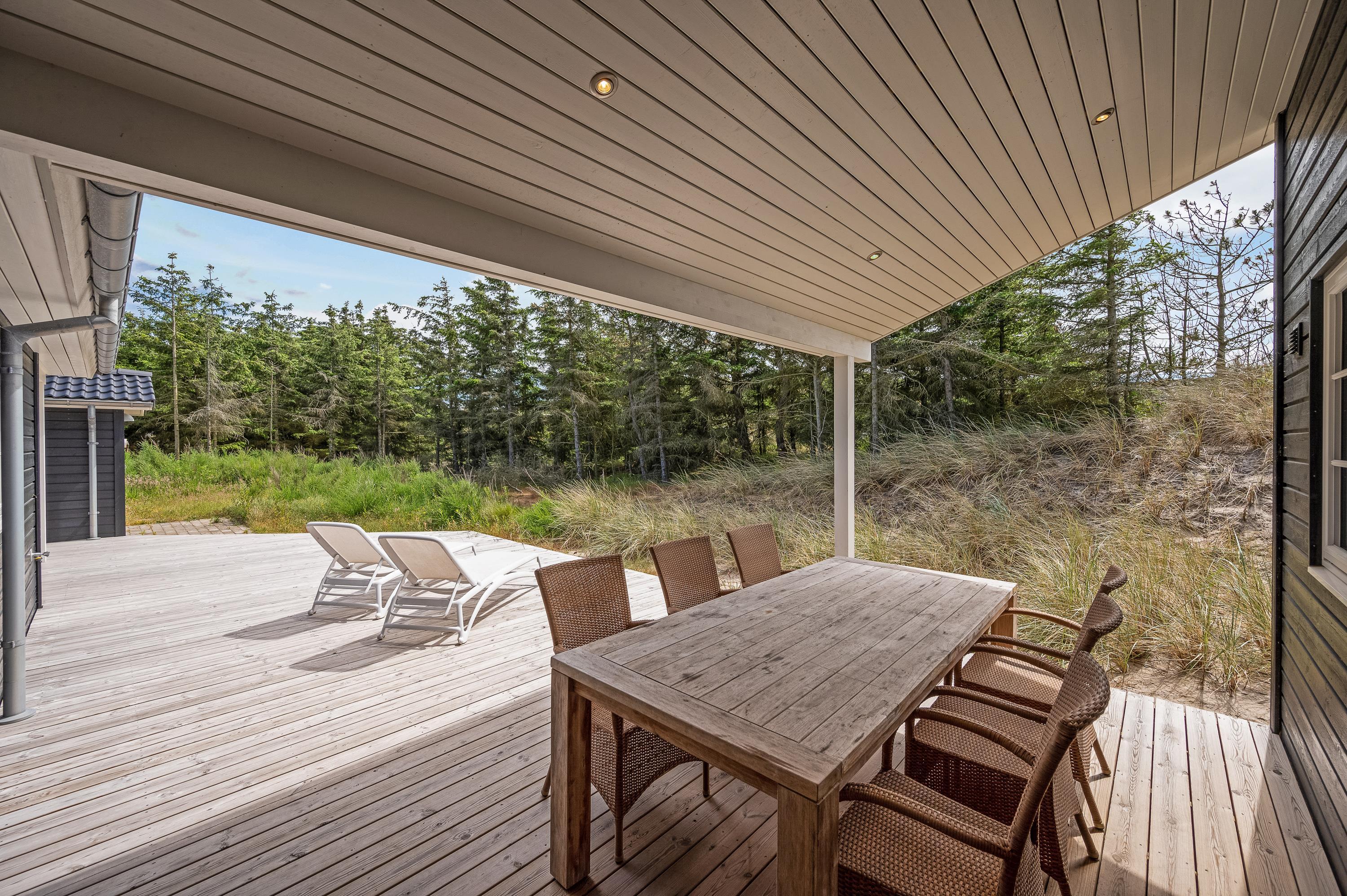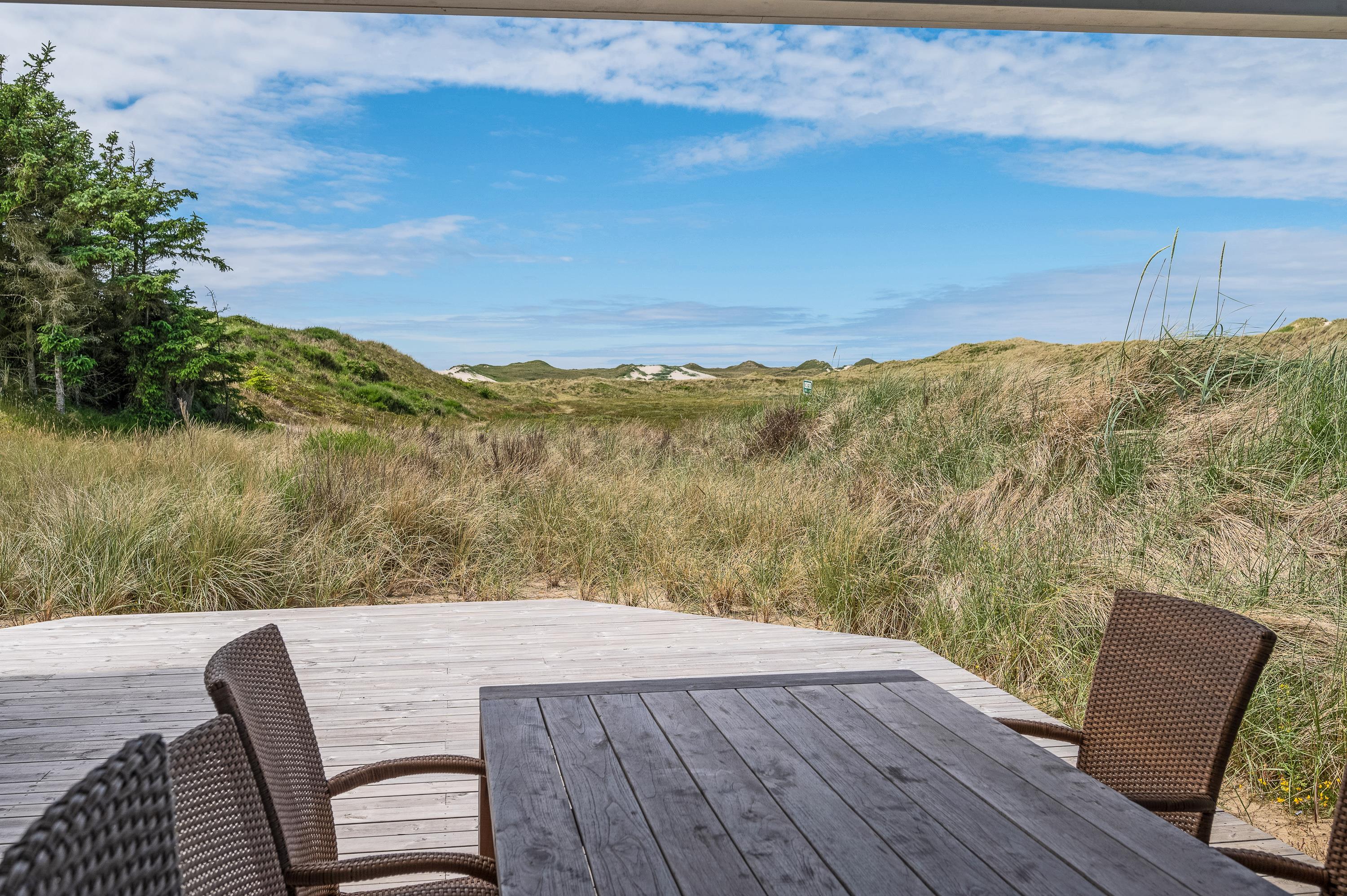 There are plenty of opportunities to enjoy the sunshine and breathtaking landscape from the terraces. The dunes lie directly to the west, providing uninterrupted views of the surroundings. Multiple seating areas around the house offer various spots to always find a place in the sun.