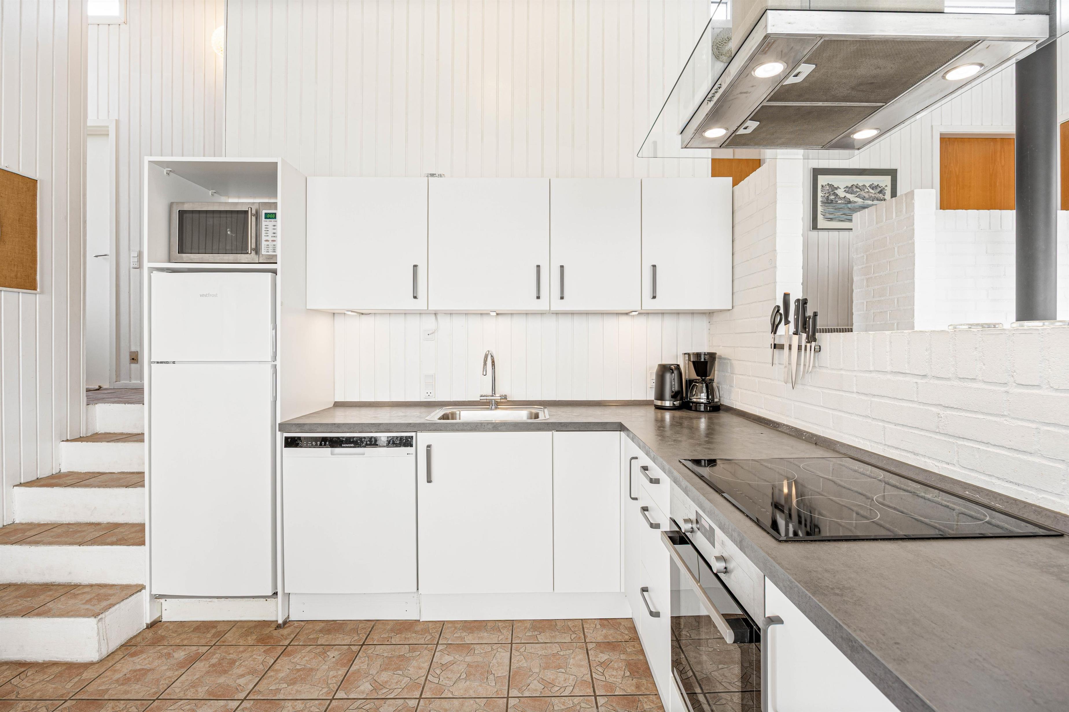The kitchen is equipped with an induction hob, microwave and 40-litre freezer compartment for preparing delicious meals. The dishwasher happily takes care of the washing up afterwards.