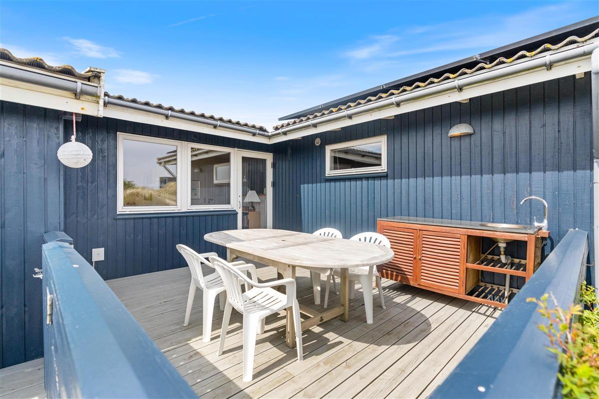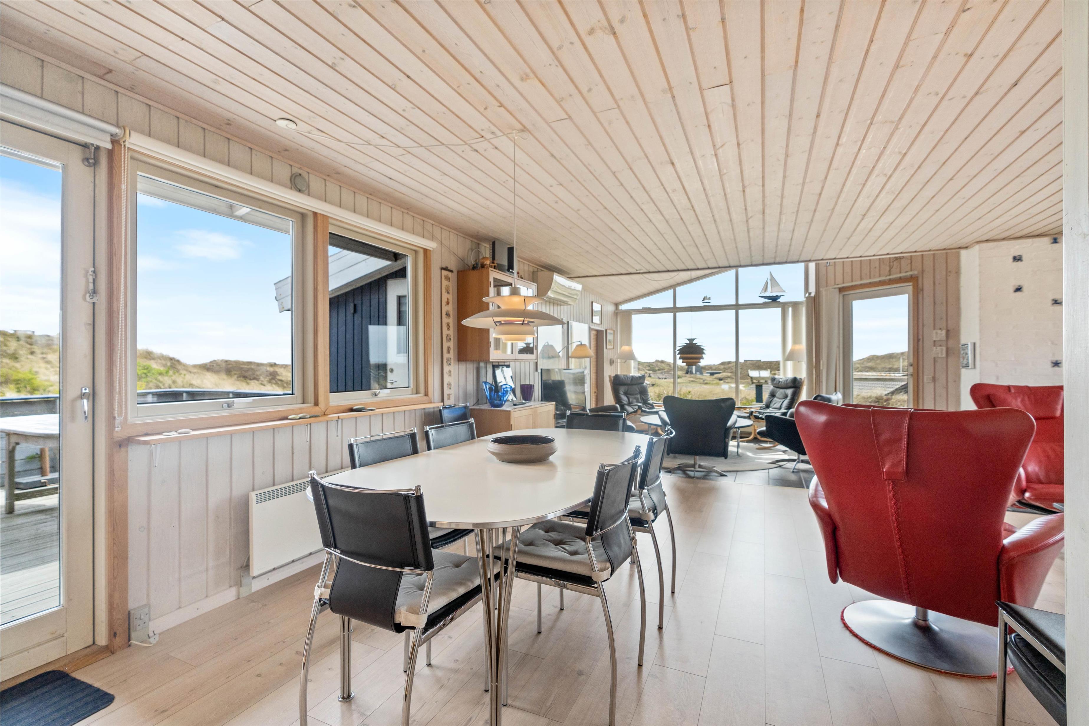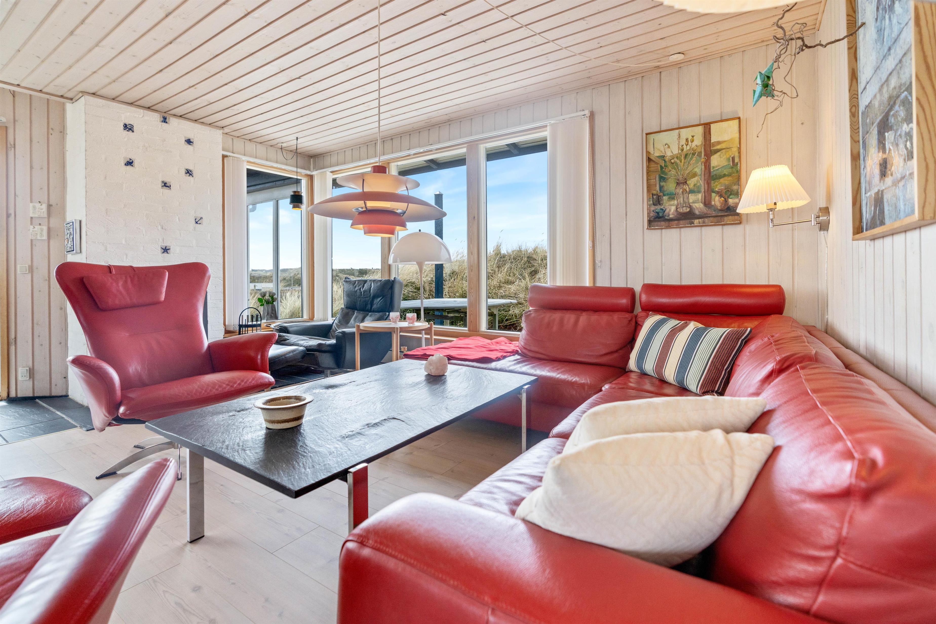 Located at Sønder Klitvej 182, this welcoming holiday home features multiple terraces where you can enjoy the sunshine, fresh air and magnificent views over Ringkøbing Fjord. The holiday home also includes a garage and an outdoor kitchen perfect for cleaning your freshly caught fish.