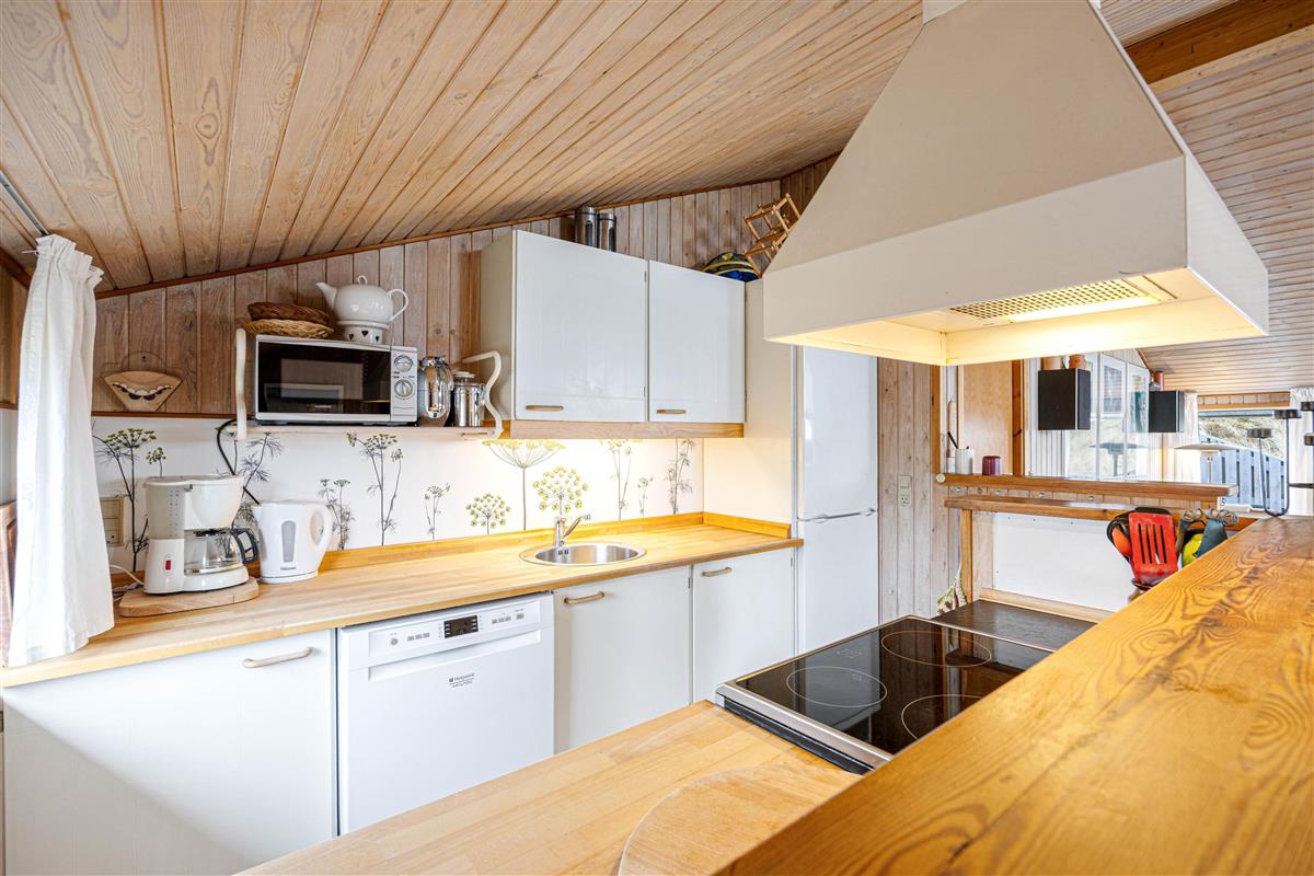 The energy-efficient heat pump ensures a comfortable temperature year-round, while the open-plan kitchen comes equipped with a dishwasher and an 80-litre freezer capacity. The latter will particularly appeal to anglers, with plenty of space for your fresh catches.
