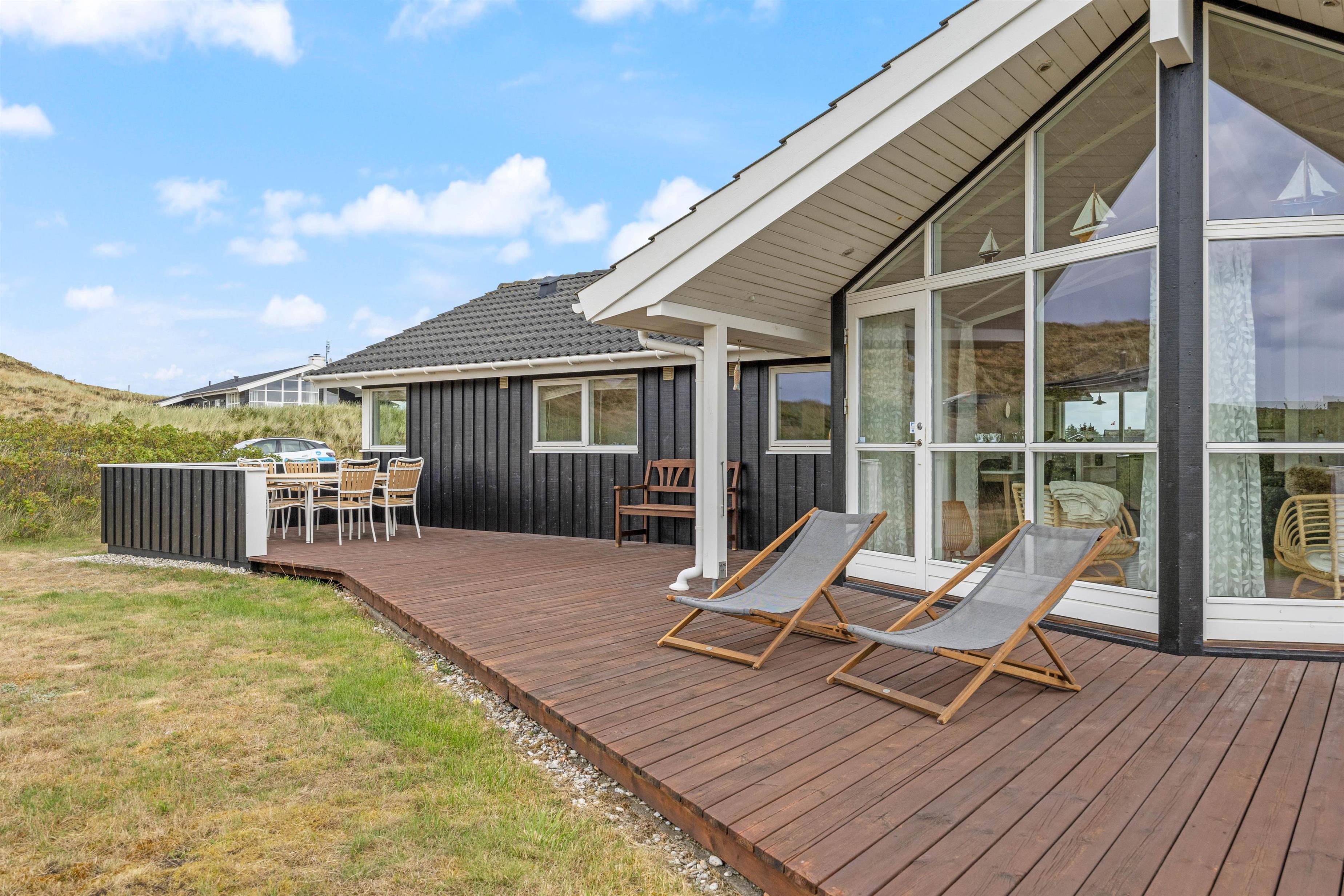 The holiday home features a partially screened and covered terrace on three sides. Depending on wind direction and sun position, you can always find a comfortable spot and follow the sun. Comfortable garden furniture and sun loungers are provided for relaxing with a cold drink and your favourite book.