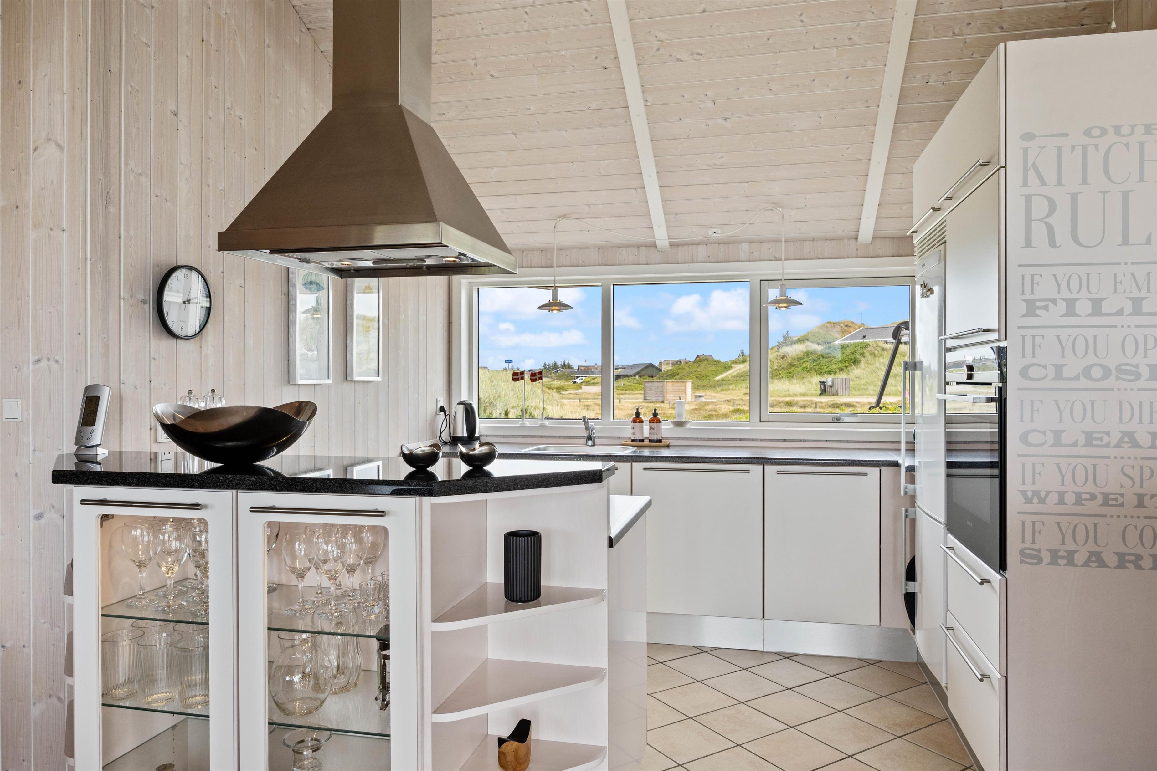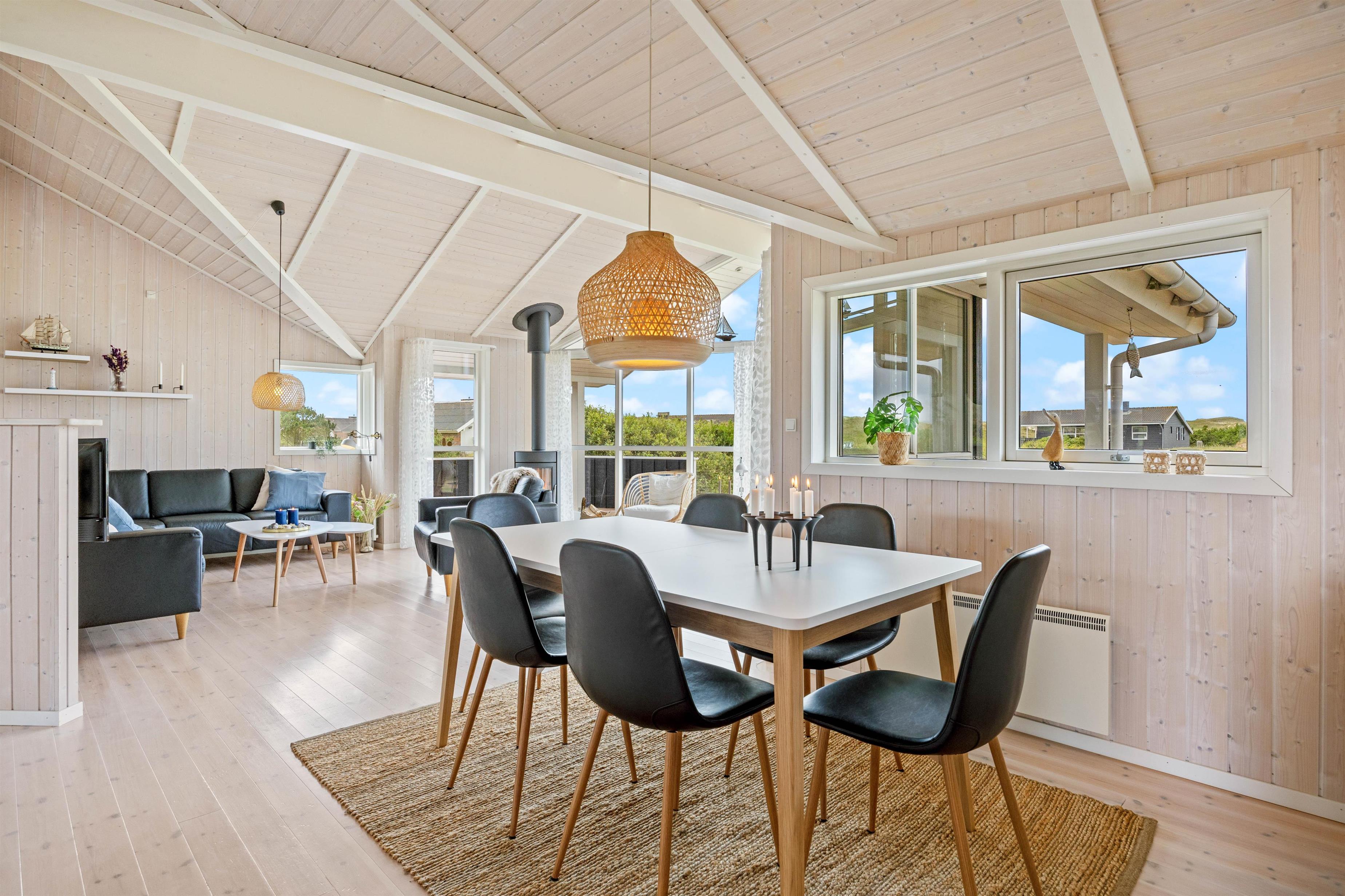 The heart of the house is the large living and dining area with open-plan kitchen. Like the rest of the house, it features high ceilings and plenty of natural light through large windows. Here you can prepare delicious meals in the modern kitchen, play board games at the dining table and read your favourite book on the sofa.