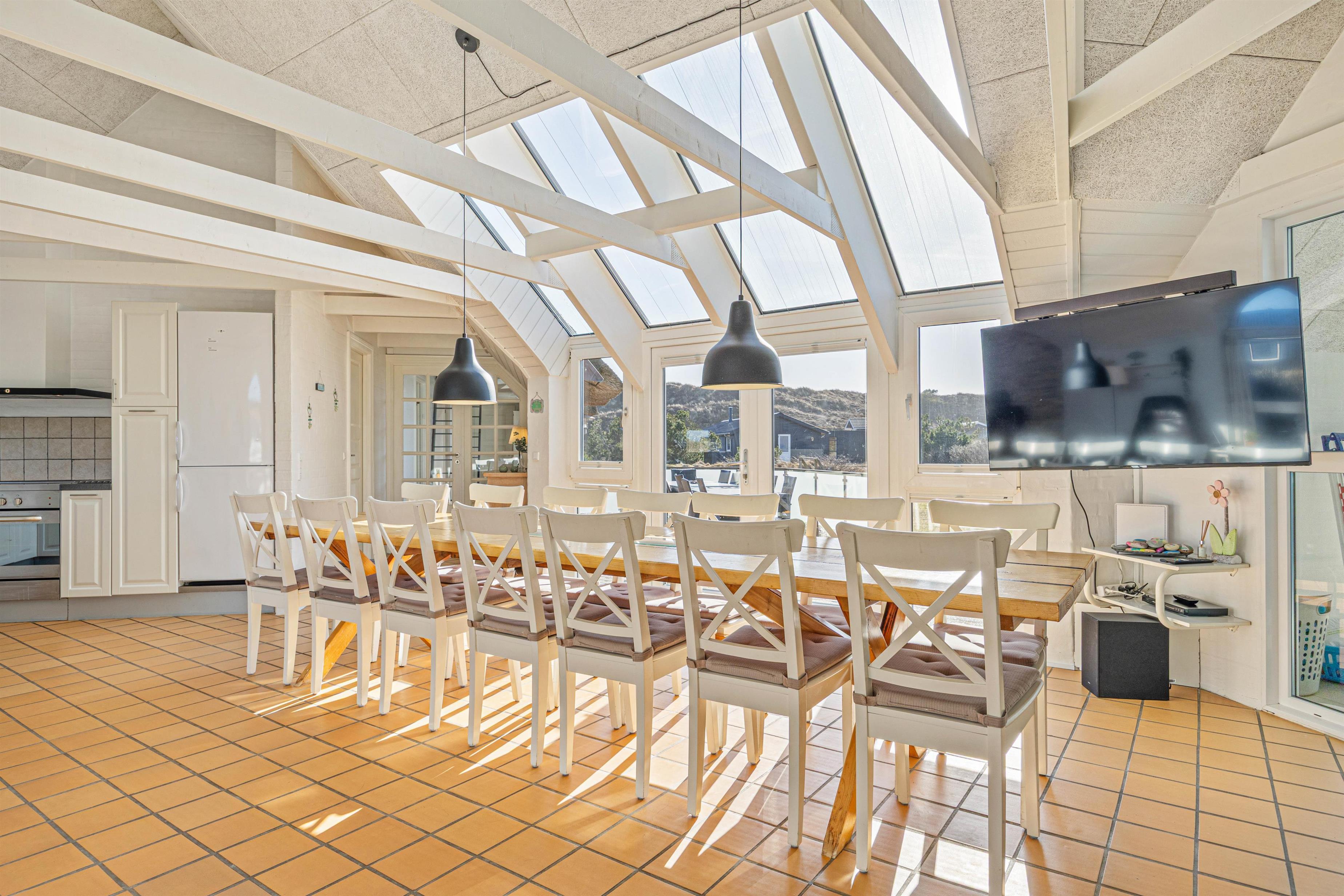 The 200-square-metre holiday home offers plenty of room to spread out and relax. The spacious kitchen, which opens onto the large living room, serves as the gathering point and social hub of this beautiful house at Skodbjergevej 26. Not only is the tasteful decor perfect, but the comfortable amenities including dishwasher, washing machine and tumble dryer are particularly convenient when hosting larger groups.