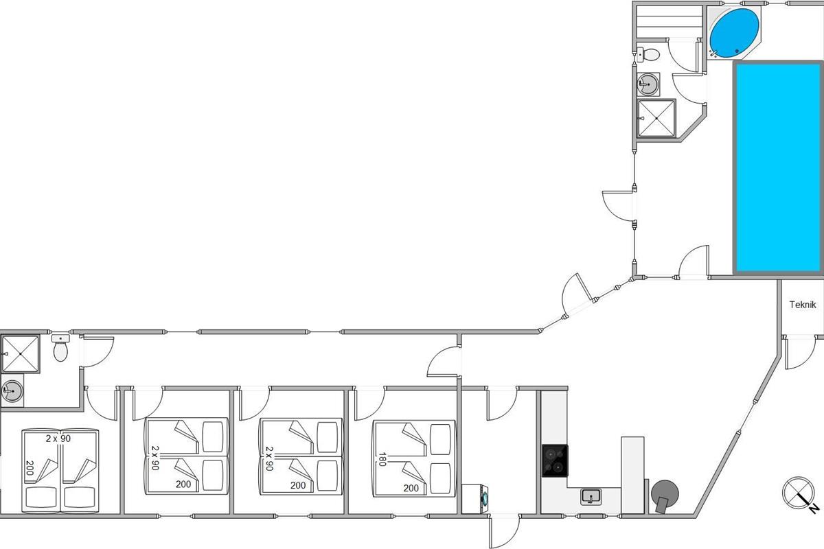 Just 500 metres from the beach, this beautiful pool house, completely renovated in 2019, sits on a large plot between the sea and Ringkøbing Fjord. A fantastic hot tub, lovely sauna and, of course, the swimming pool offer up to 12 people a perfect swimming holiday in beautiful surroundings. Dogs are welcome too!