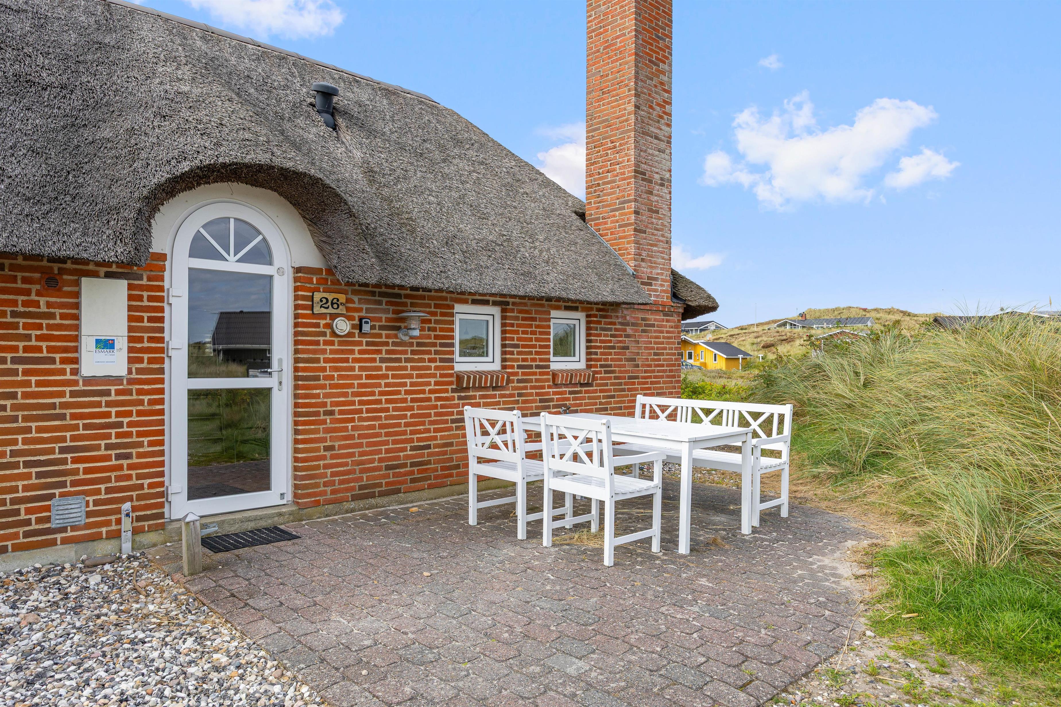 Skodbjerge is a beautiful area in the middle of Holmsland Klit - a narrow peninsula between the sea and Ringkøbing Fjord. The thatched house fits perfectly into the beautiful natural surroundings and radiates pure tranquillity.