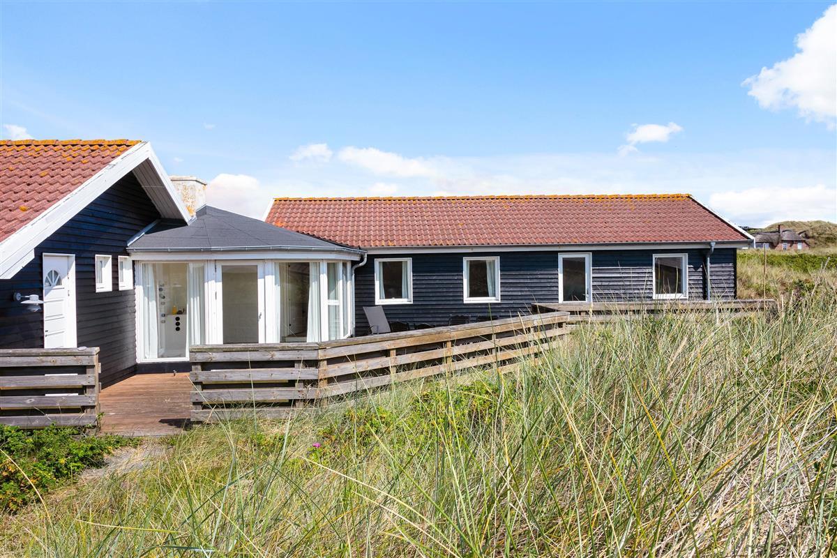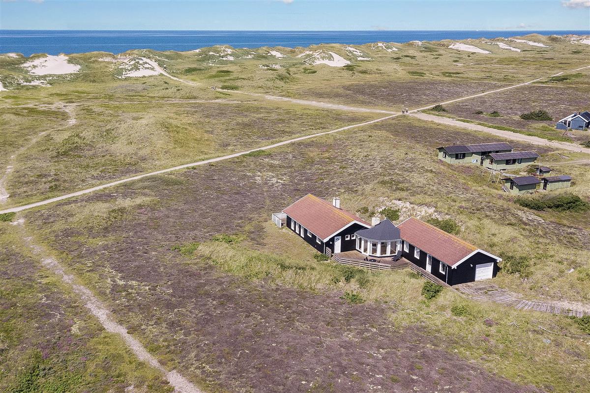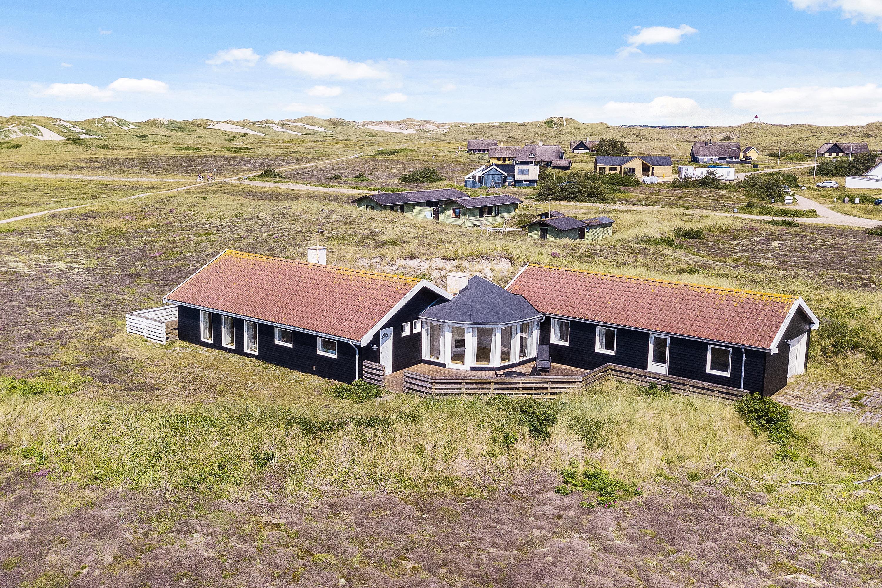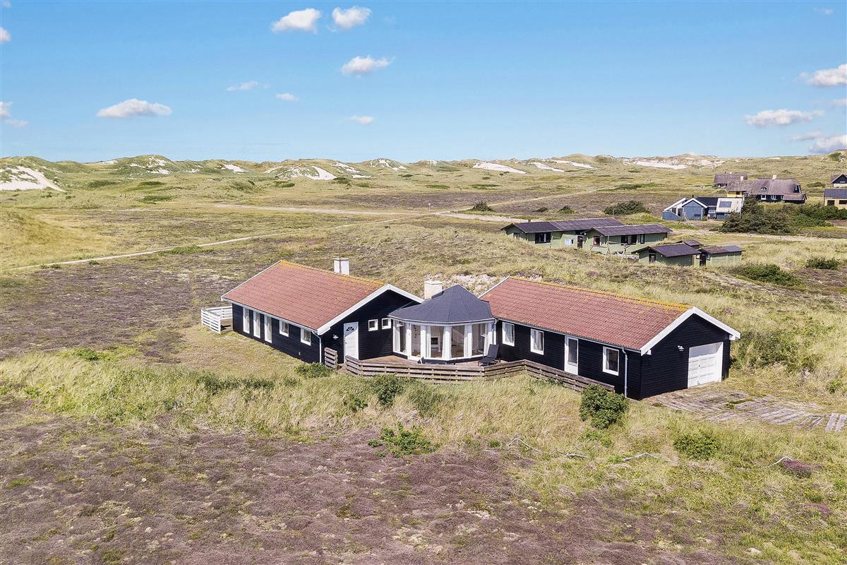 Welcome to Skodbjerge. Park your car in the garage and enjoy views across the sweeping dune landscape. This holiday home comfortably accommodates 7 people, offering relaxation options including a sauna, whirlpool and wood-burning stove. Dogs are also welcome.