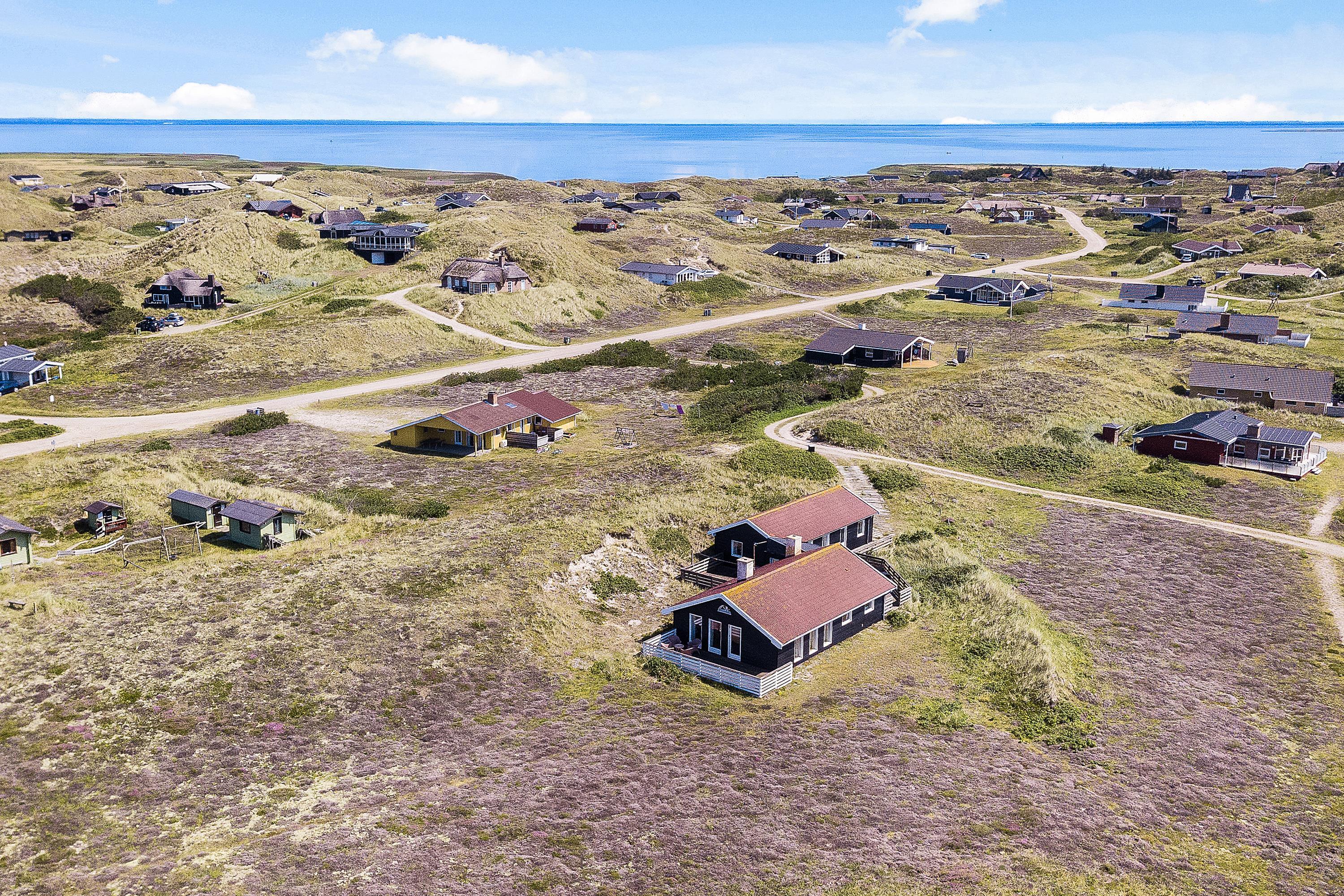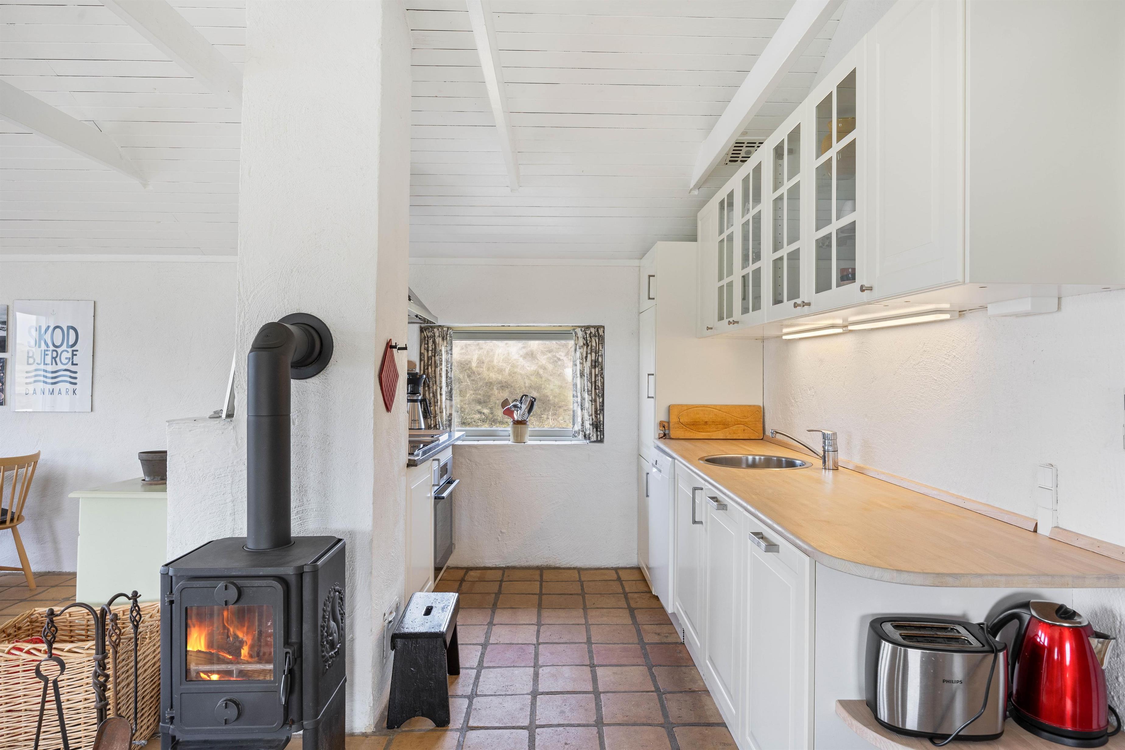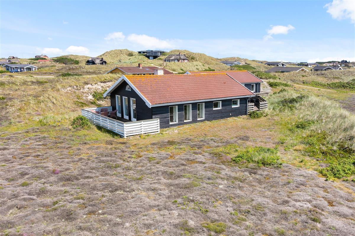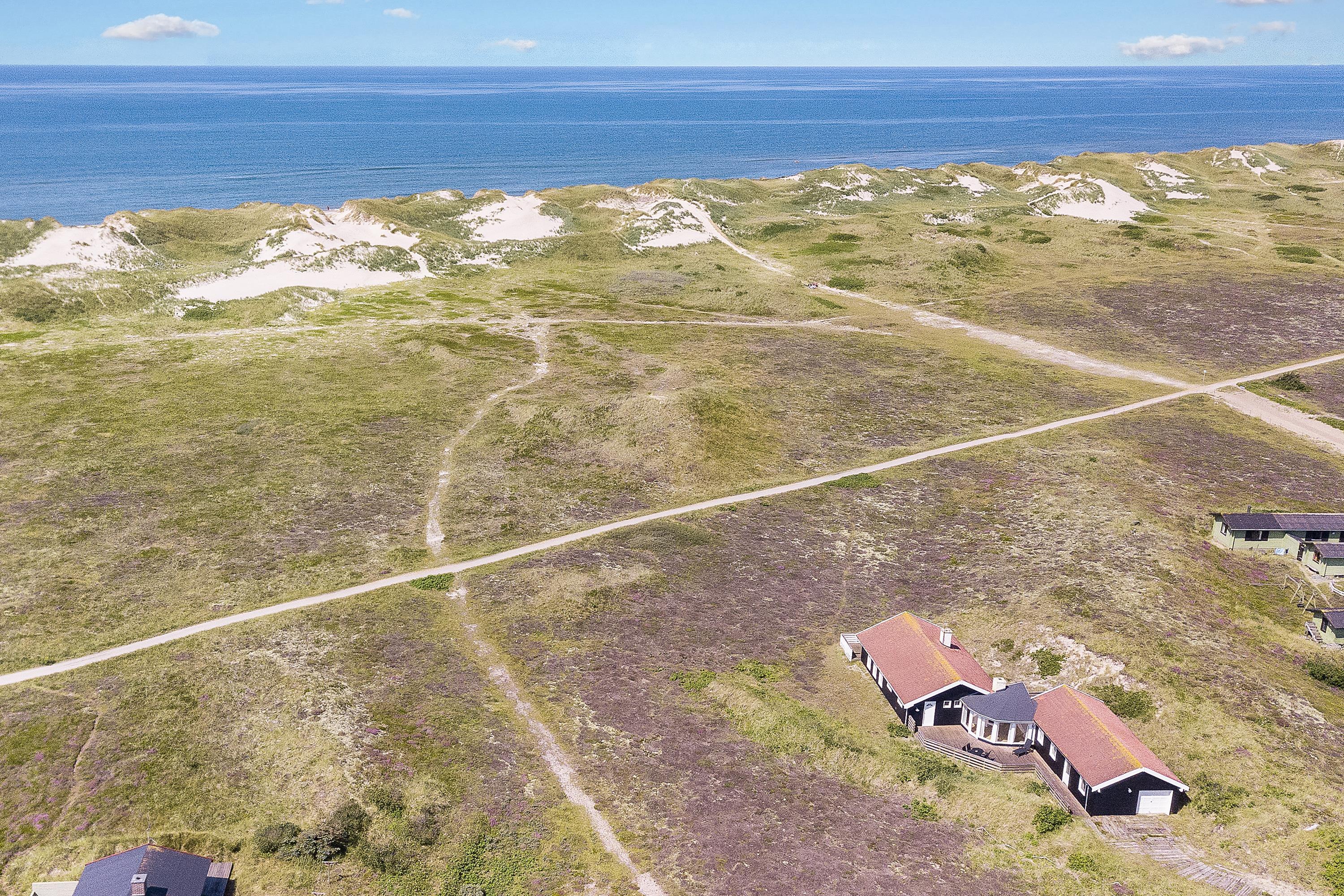 Welcome to Skodbjerge. Park your car in the garage and enjoy views across the sweeping dune landscape. This holiday home comfortably accommodates 7 people, offering relaxation options including a sauna, whirlpool and wood-burning stove. Dogs are also welcome.