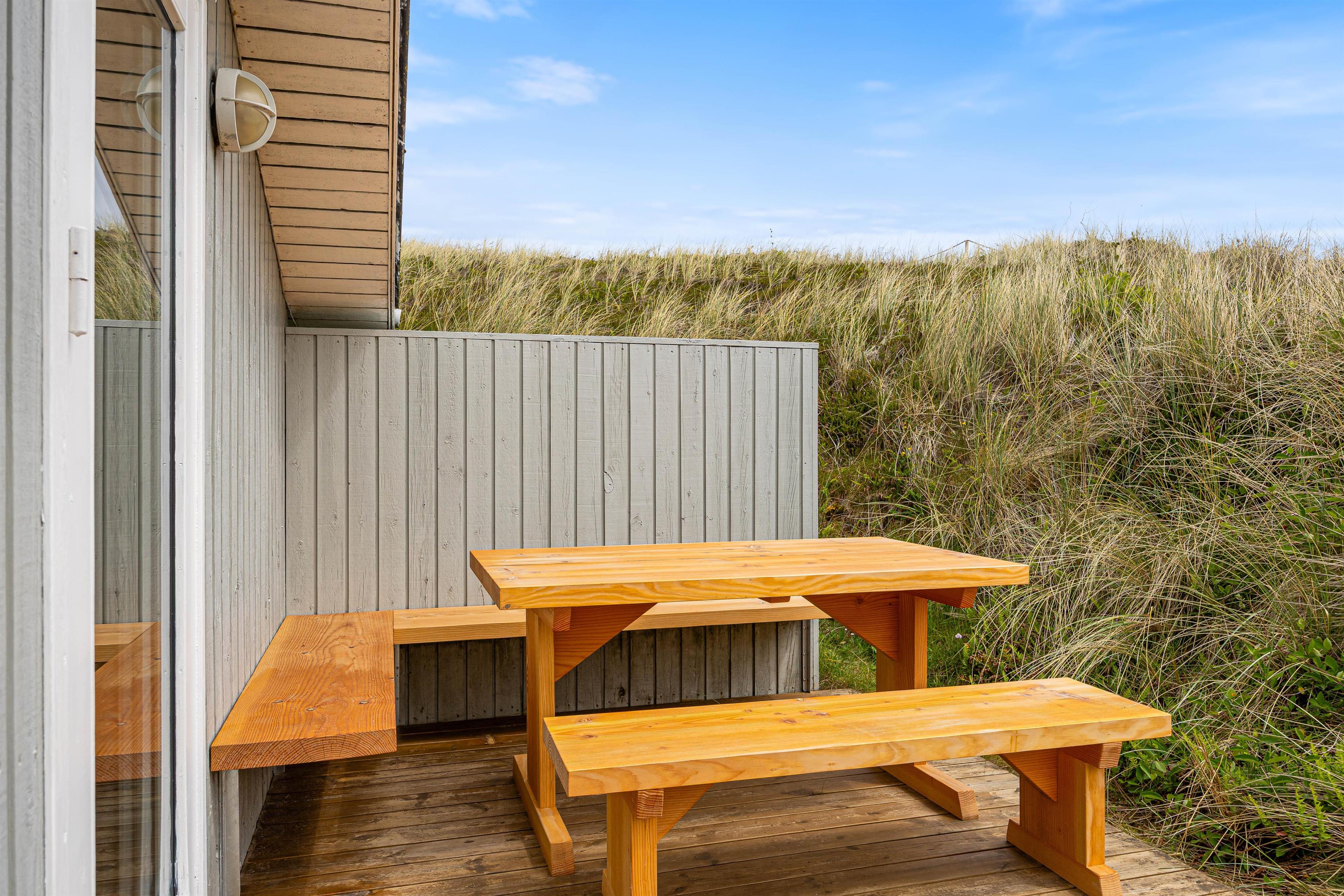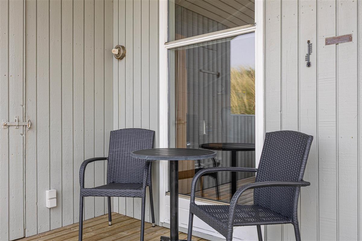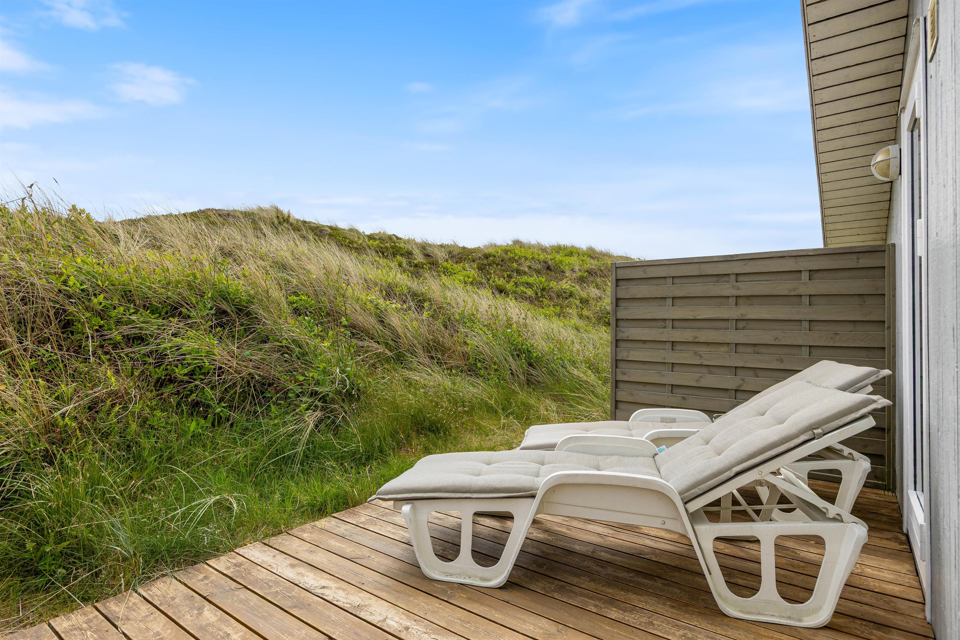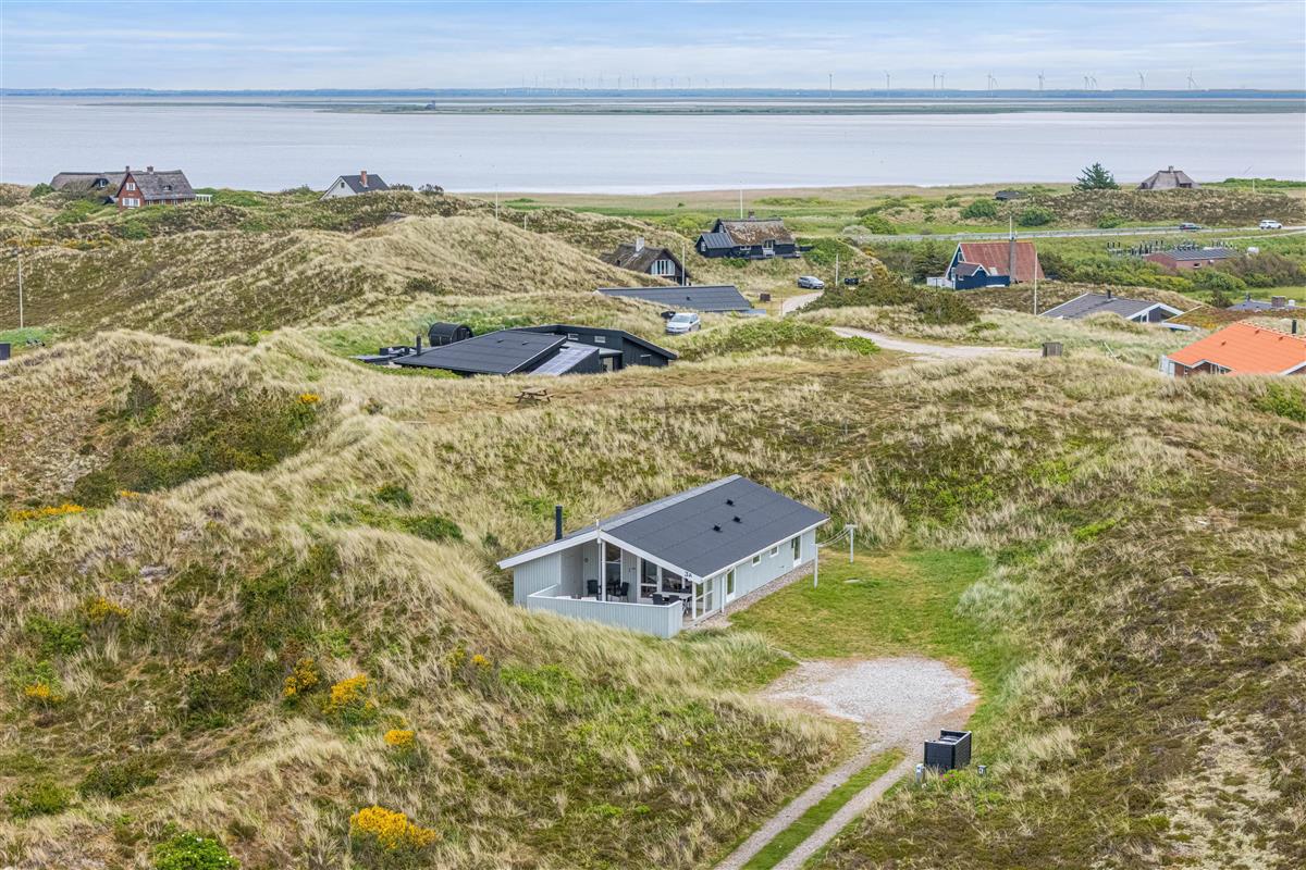 Protected by a dune, the holiday home offers magnificent views of Skodbjerge's dune landscape both from the terrace and the interior. Located in a quiet cul-de-sac, its position provides the perfect setting for a peaceful and relaxing family holiday.