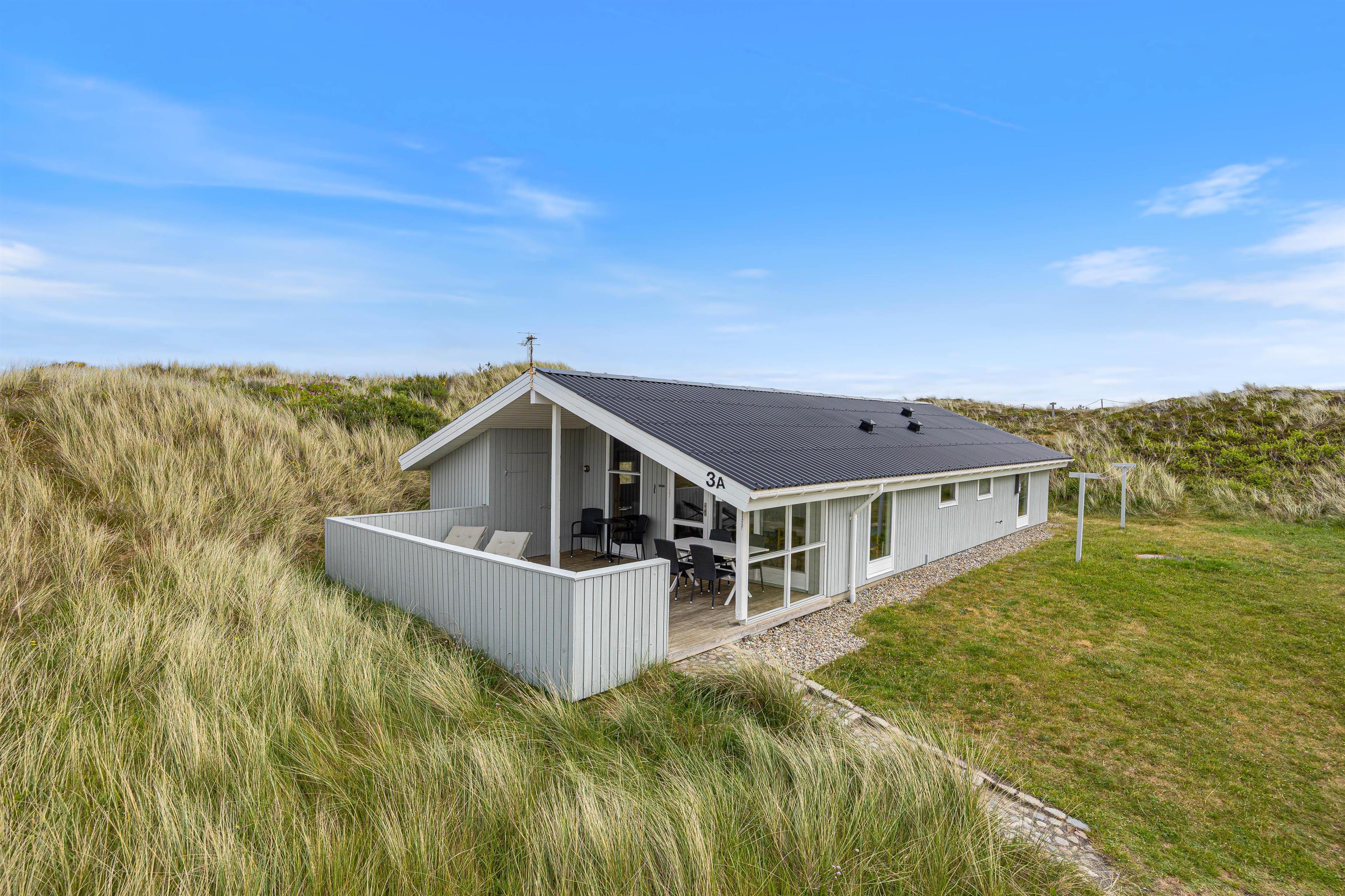 This welcoming and spacious holiday home is situated on a hillside natural plot at Sandvej 3A in the beautiful holiday region of Skodbjerge, just 500 metres from the Danish North Sea coast and its sandy beach. From the holiday home, you'll enjoy splendid views over the dune landscape and can fully embrace your time here.