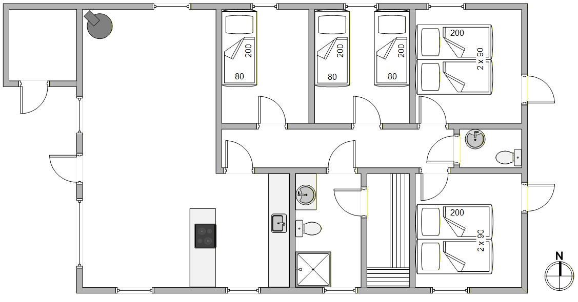 The holiday home accommodates up to 6 people and warmly welcomes the last two family members - your two dogs - to accompany you on your holiday. There are three bedrooms, a bathroom and a guest toilet. The large, open-plan kitchen and living area is perfect for cooking together and enjoying family film nights. You can make yourself comfortable by the warming wood-burning stove.