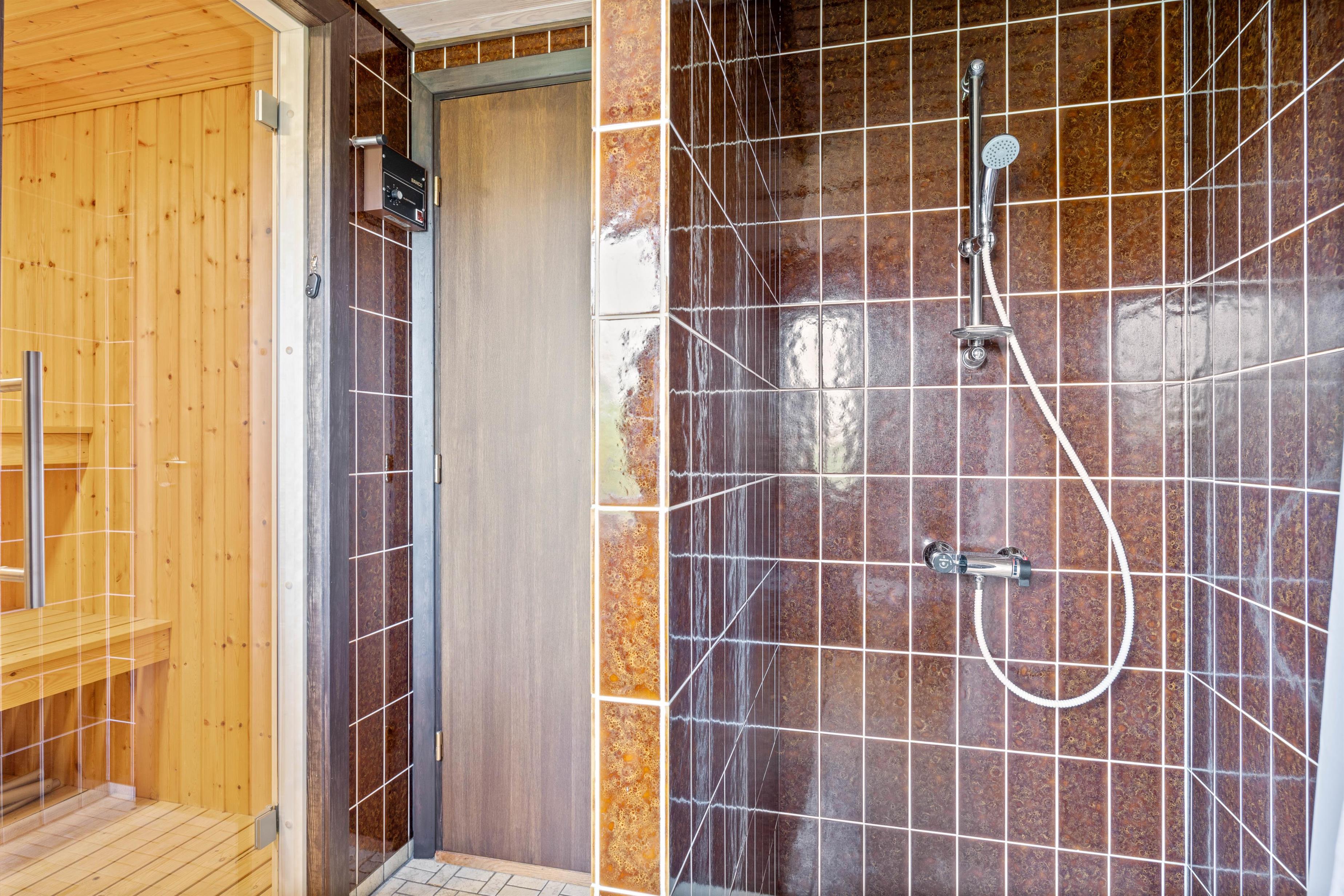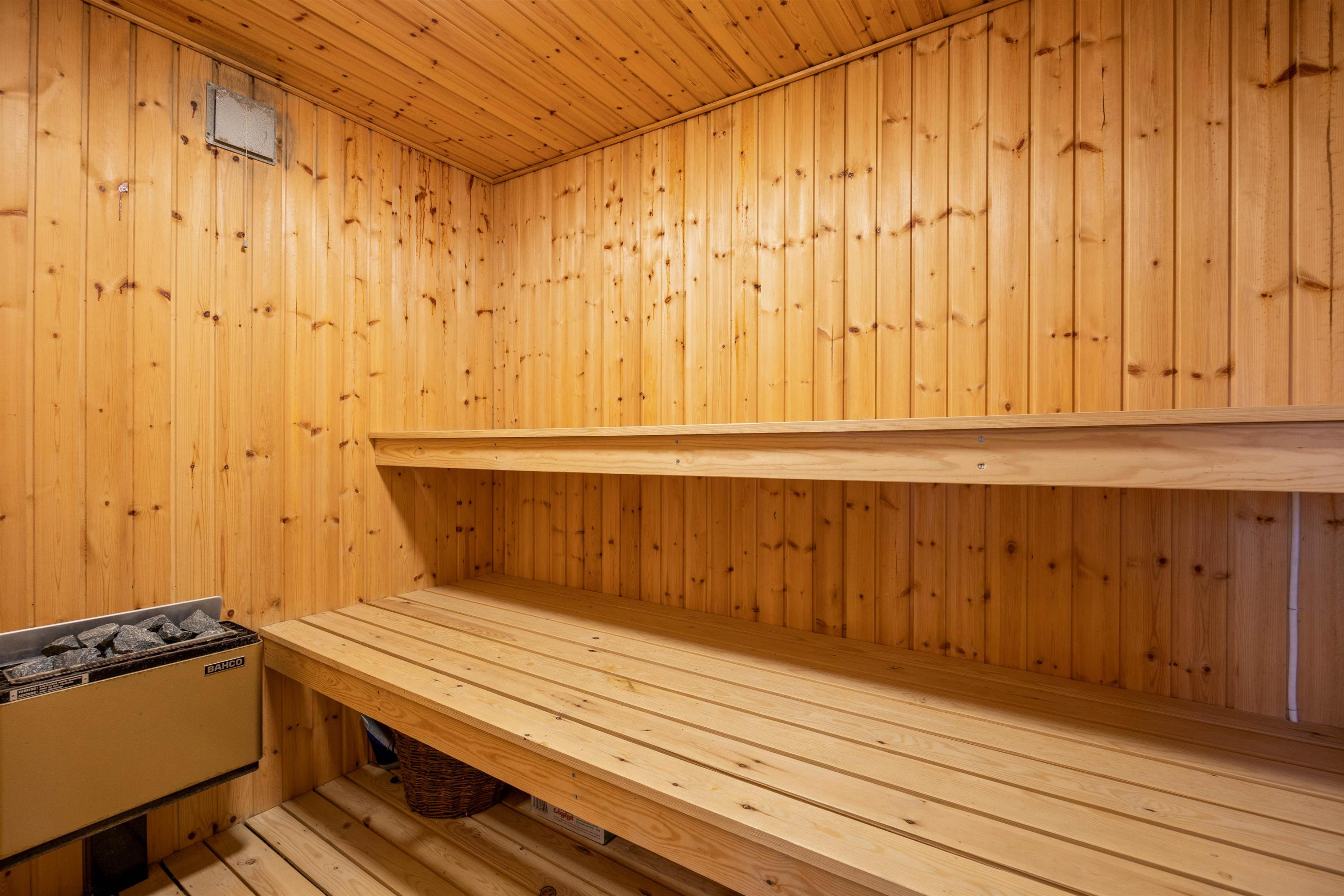 You'll also find the bathroom, which connects to the sauna. Look forward to relaxing sauna sessions, perhaps after a long beach walk.