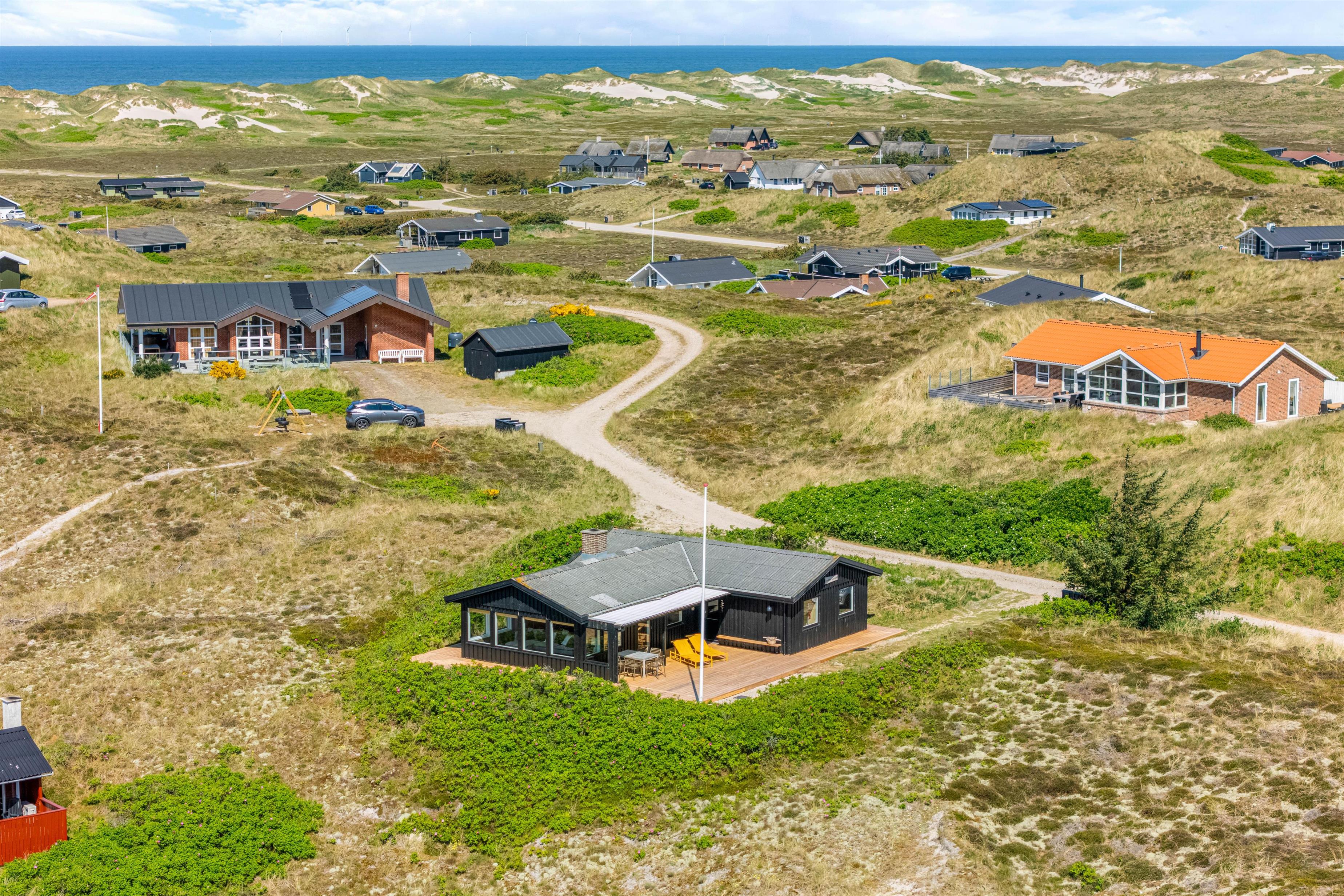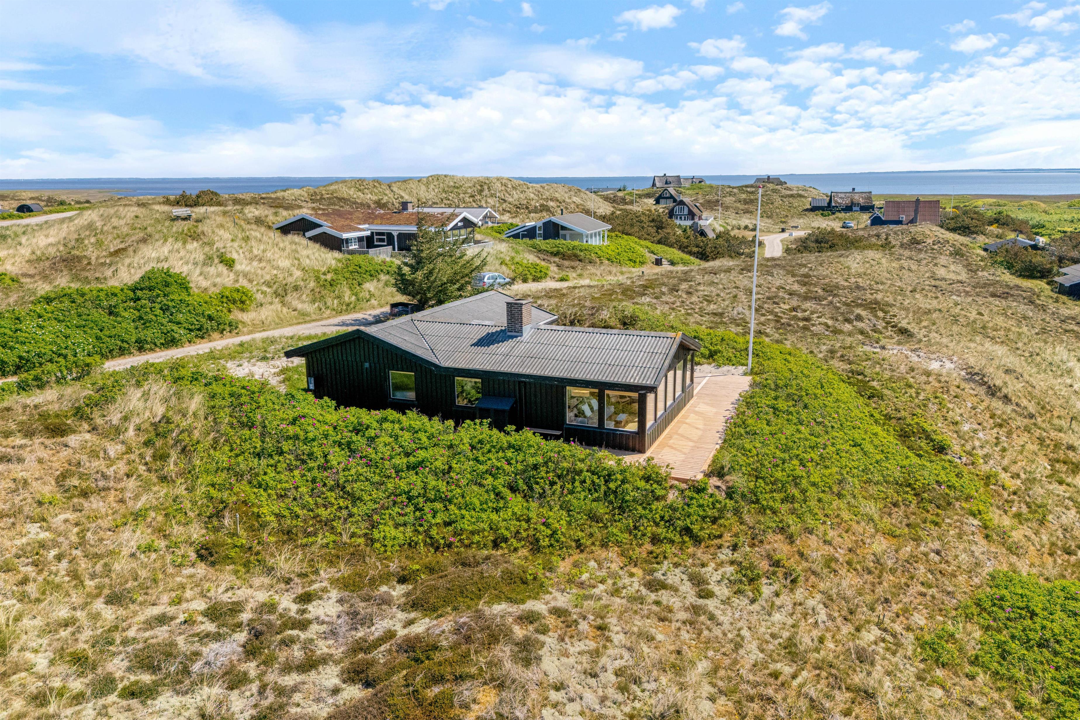 This summer house, renovated in 2023, is idyllically situated among the dunes on the Danish west coast. Its slightly elevated position offers wonderful views across the surrounding landscape. Up to 5 people can enjoy a relaxing holiday just 500 metres from the North Sea.
