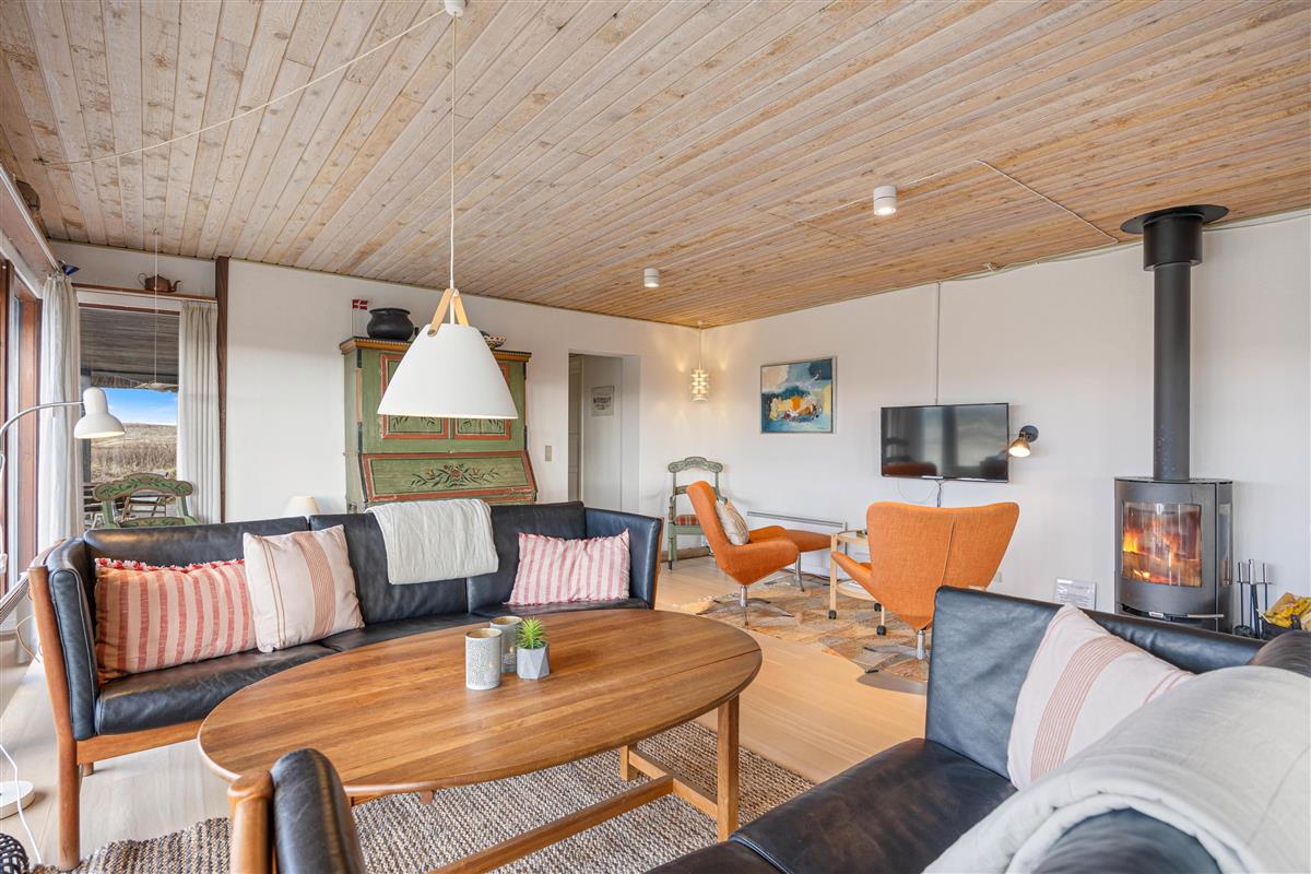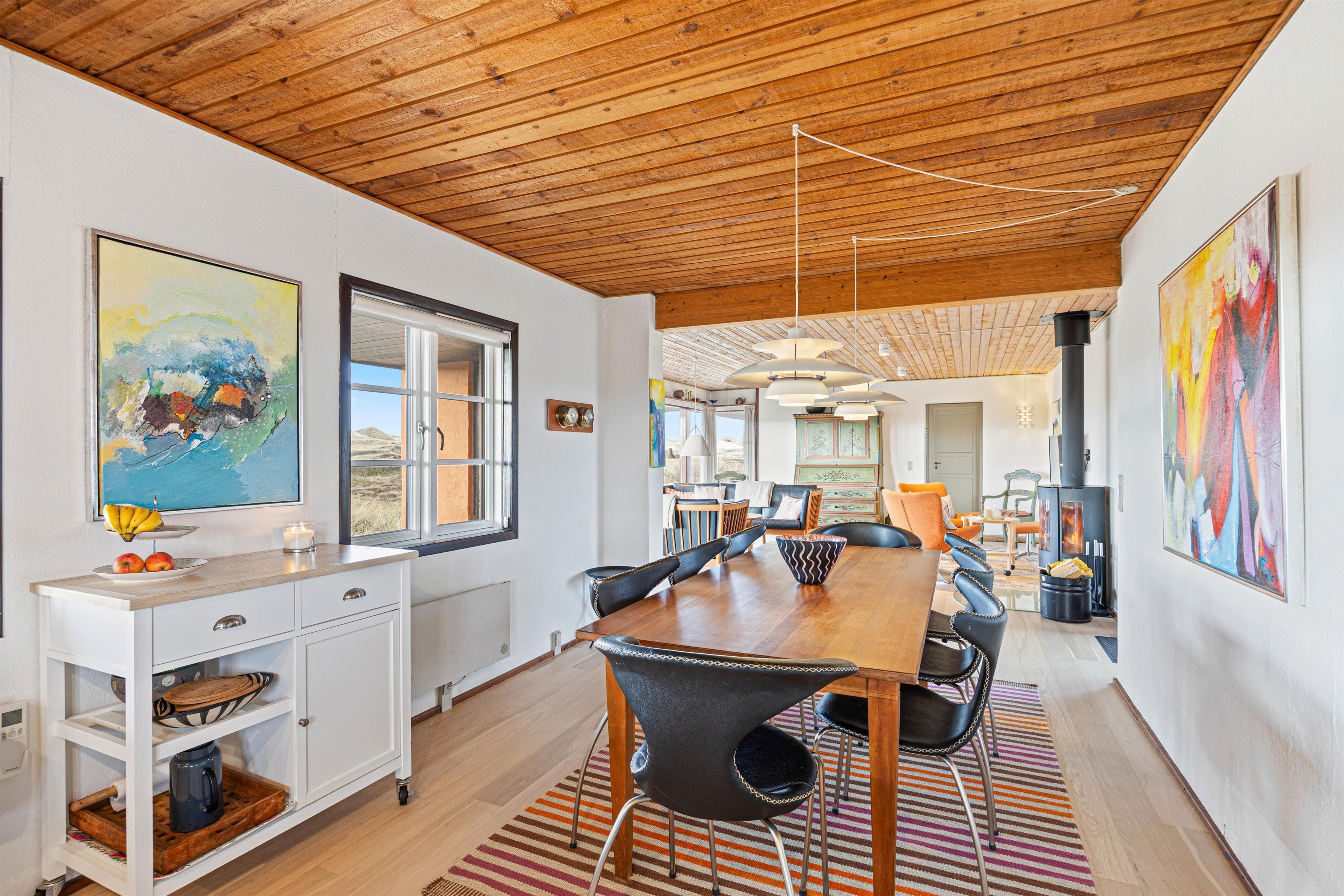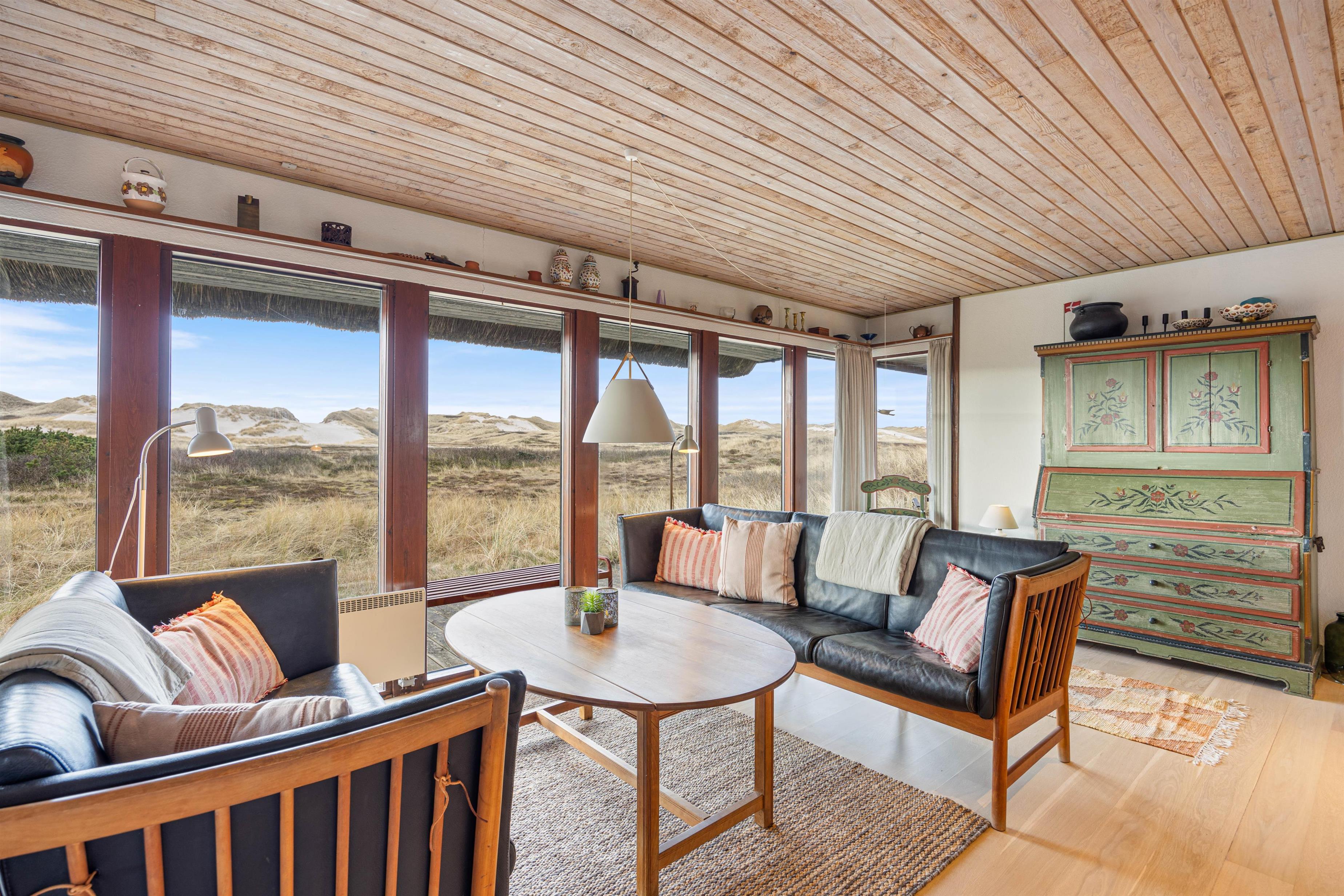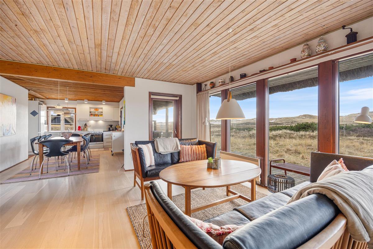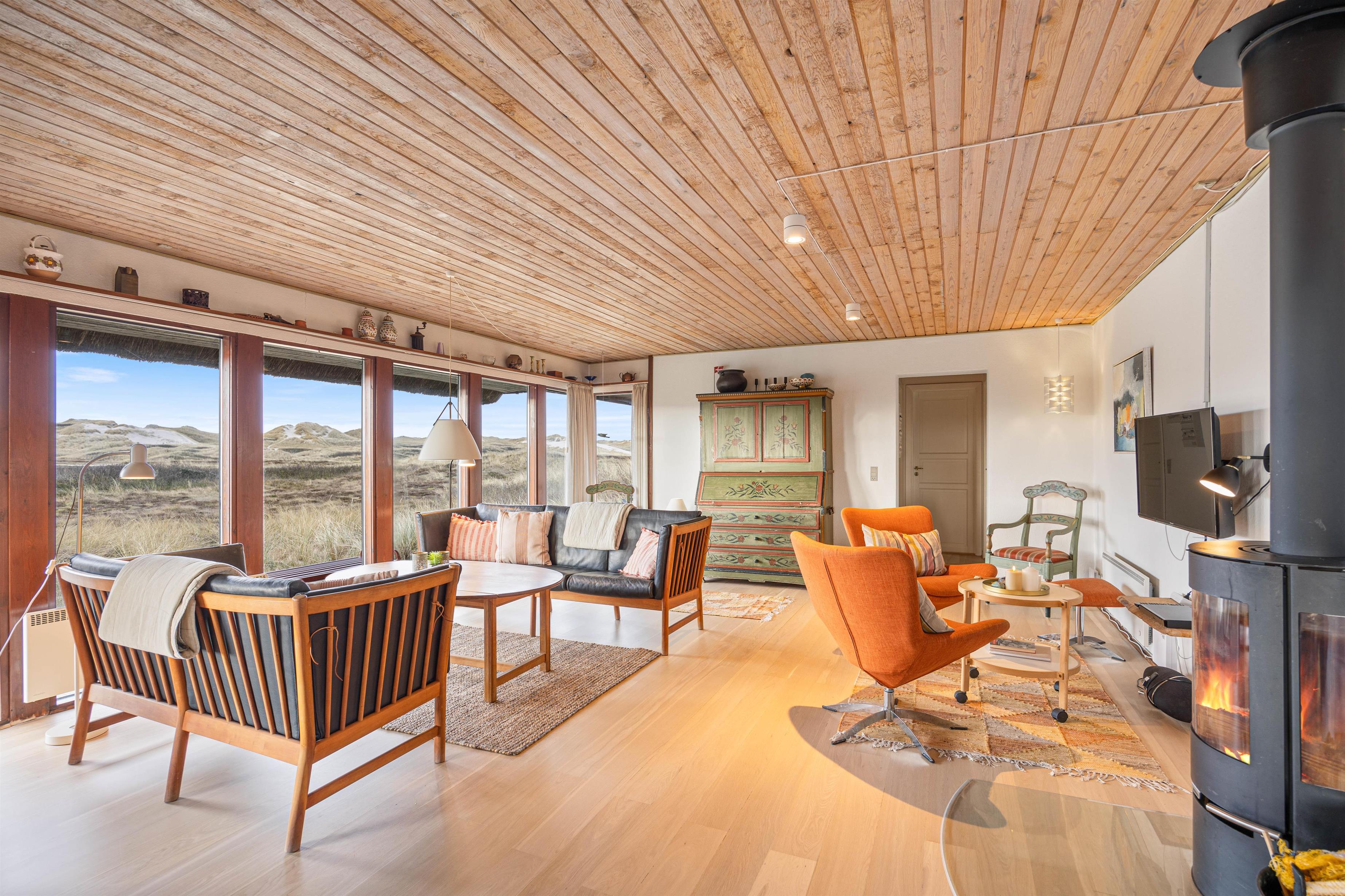 Built in 1965, this holiday home invites you to relax in its comfortable living room by the warming, crackling fire of the wood-burning stove. An energy-efficient heat pump provides pleasant temperatures throughout the living area alongside the stove. Large panoramic windows in the living area and first floor offer fantastic views of the dune landscape, which you can enjoy year-round.