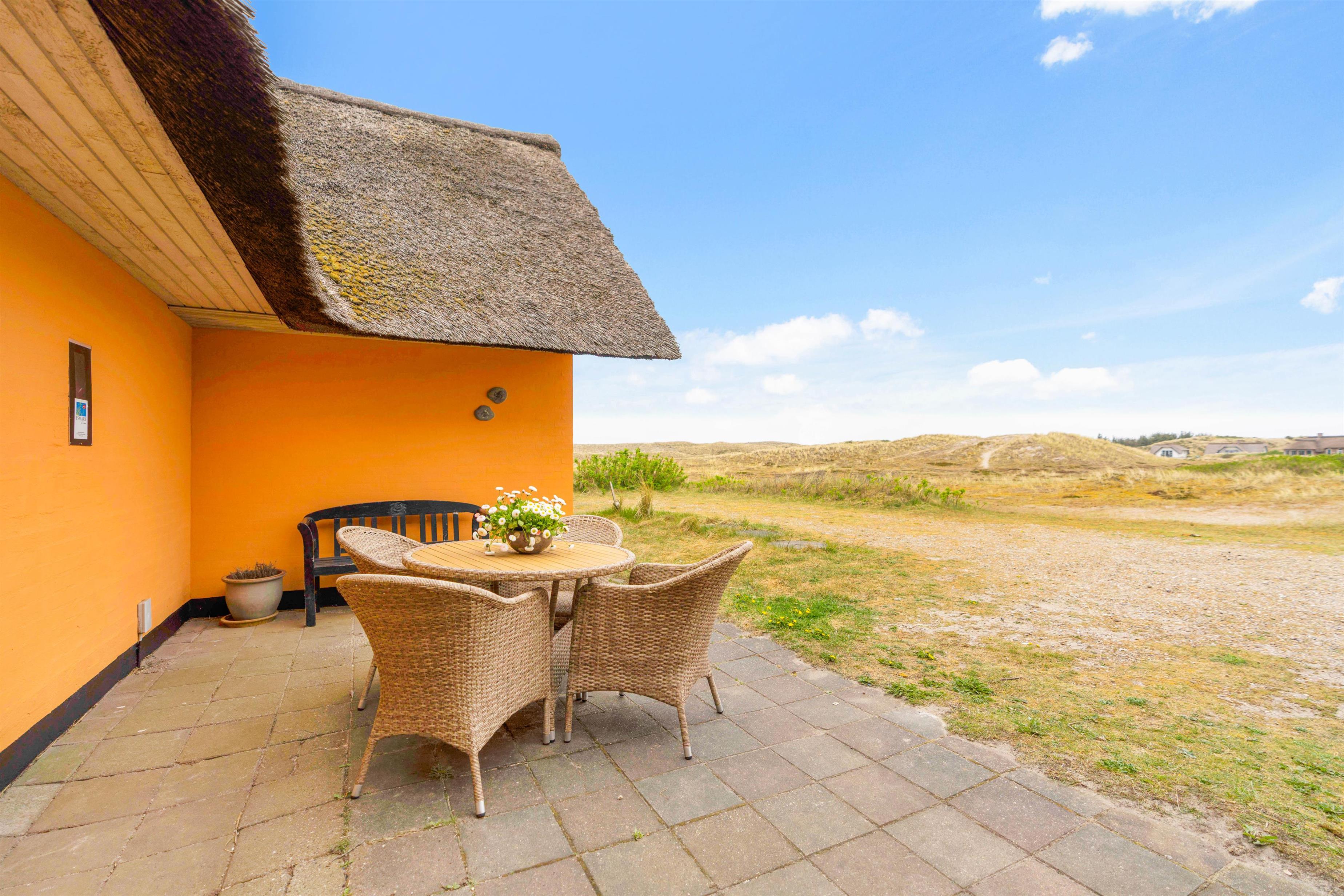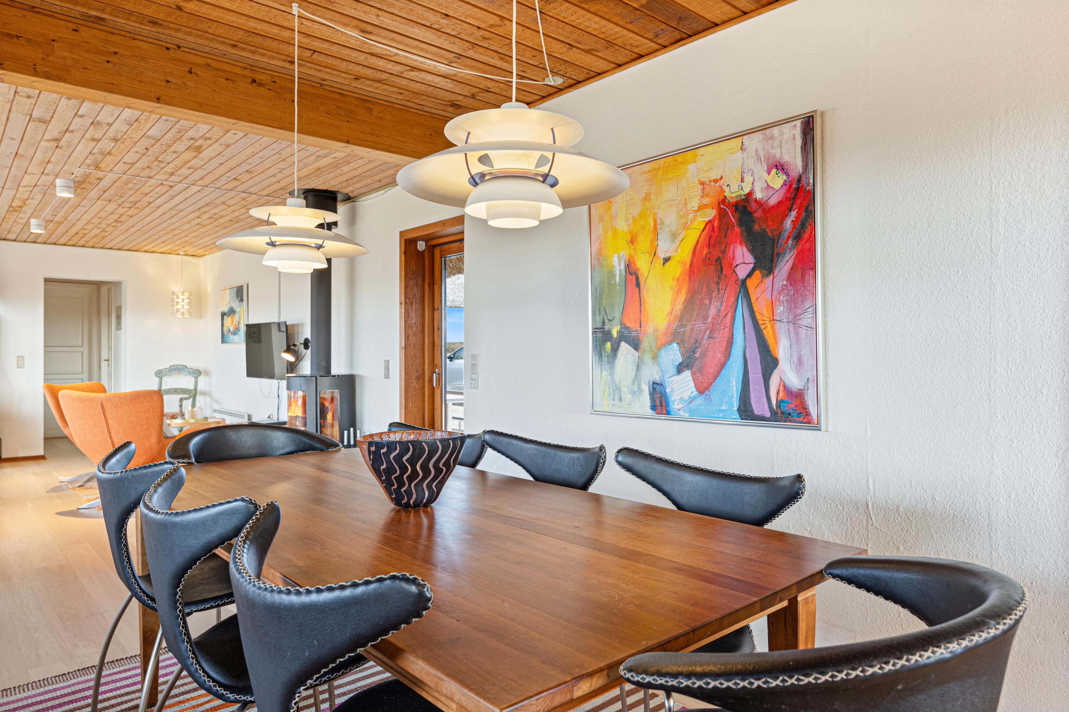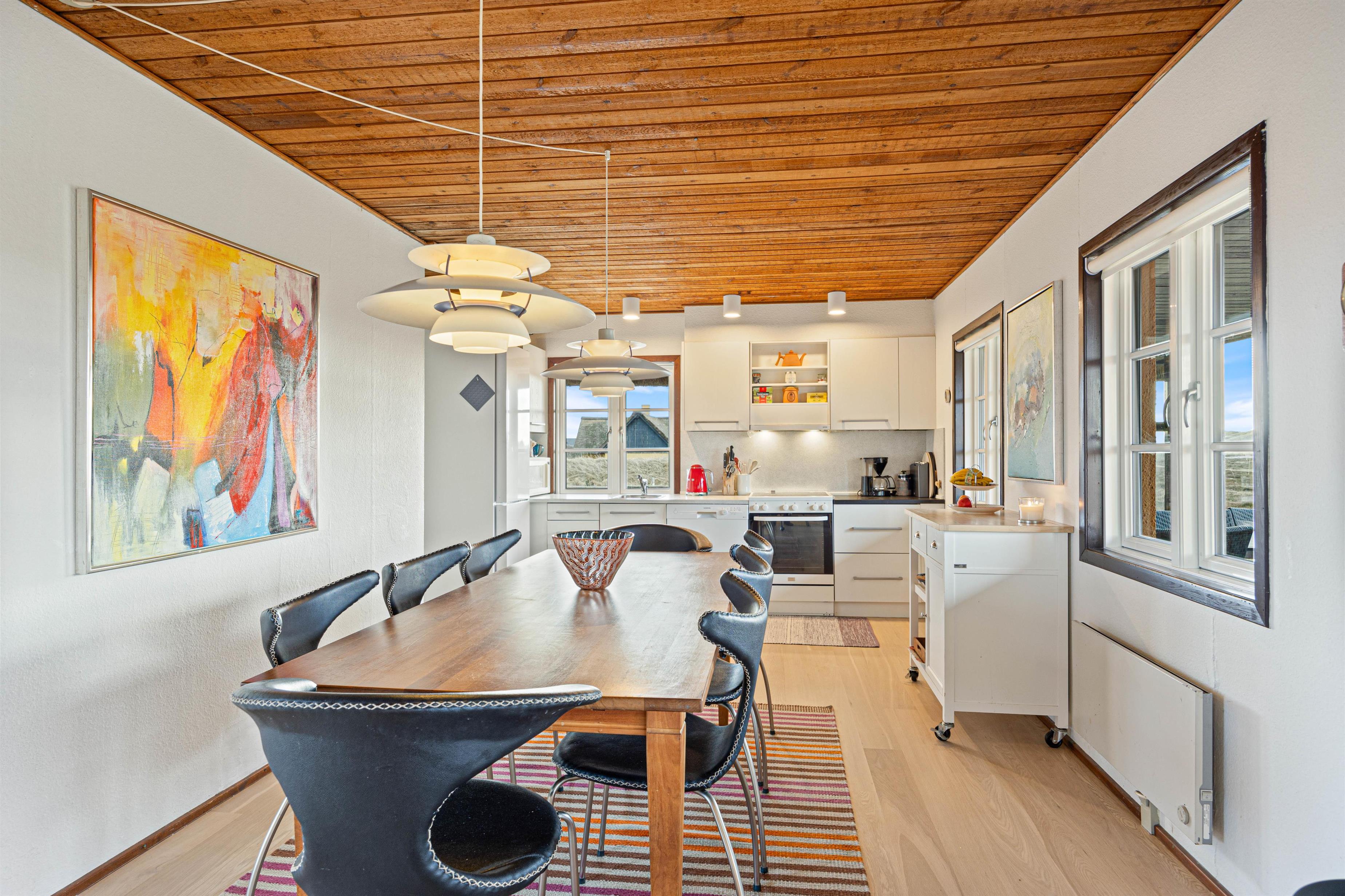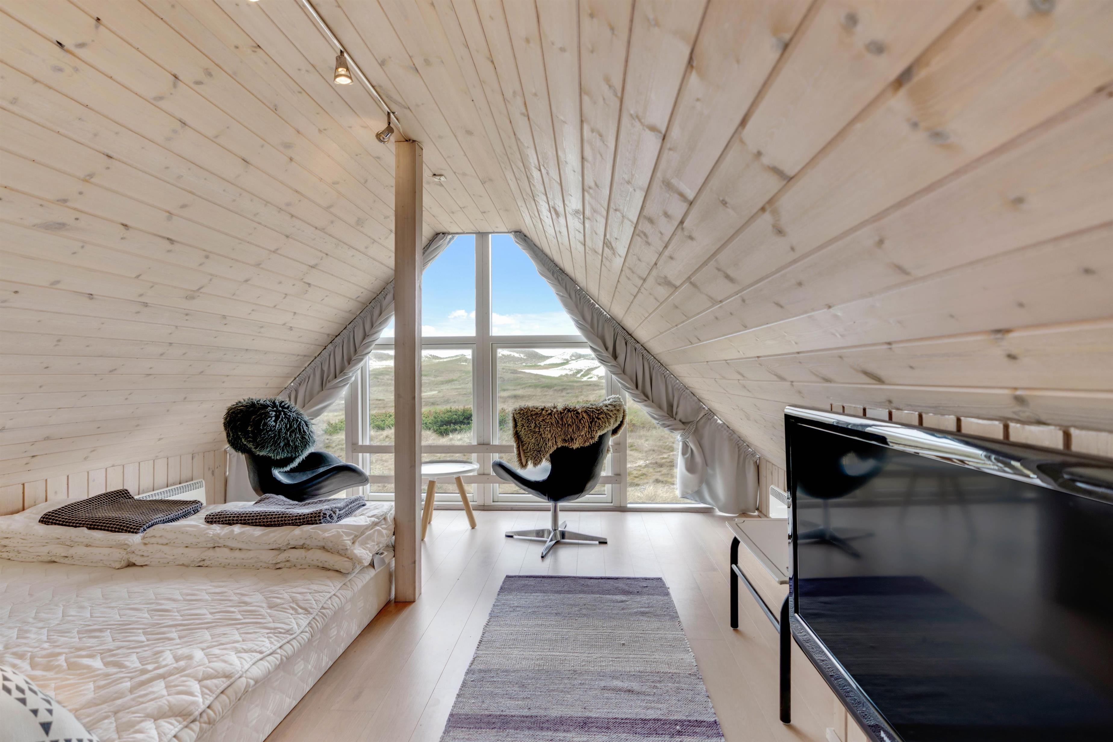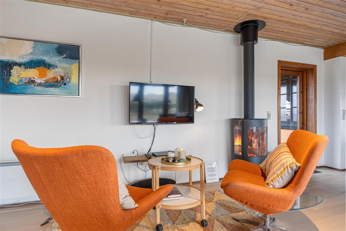 Built in 1965, this holiday home invites you to relax in its comfortable living room by the warming, crackling fire of the wood-burning stove. An energy-efficient heat pump provides pleasant temperatures throughout the living area alongside the stove. Large panoramic windows in the living area and first floor offer fantastic views of the dune landscape, which you can enjoy year-round.