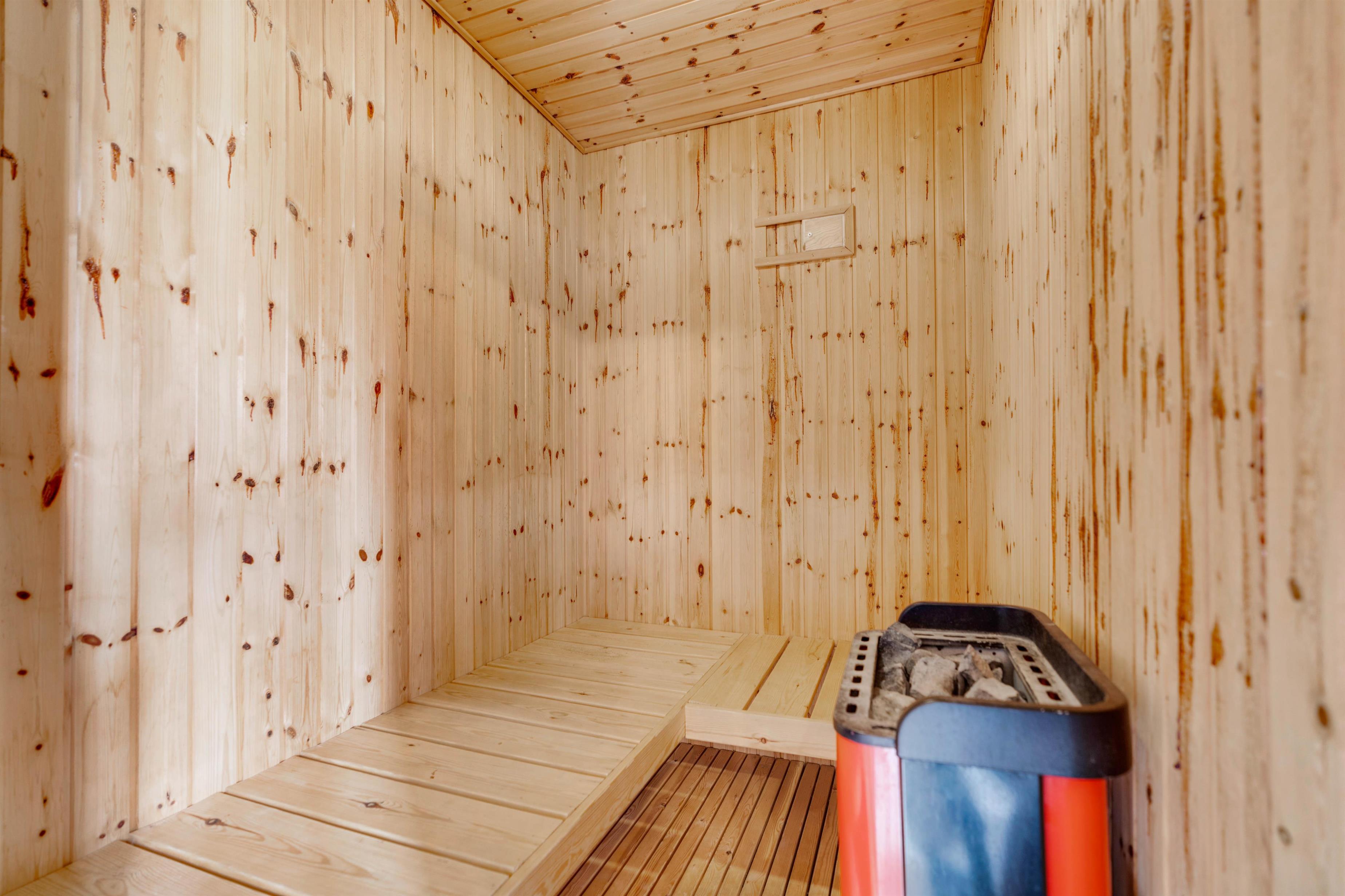 With two bathrooms, both featuring underfloor heating, there's no morning queue. A sauna and whirlpool offer a lovely wellness experience during your stay.