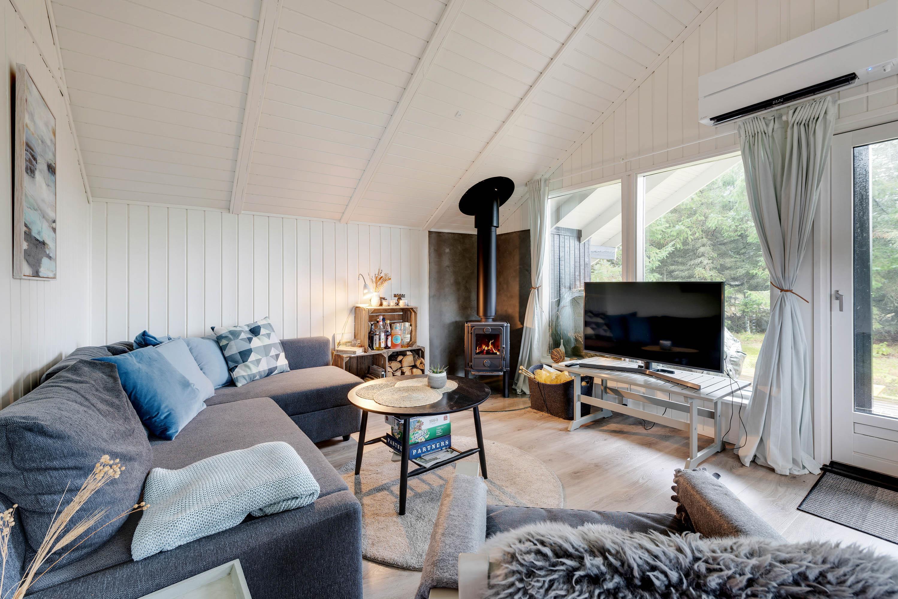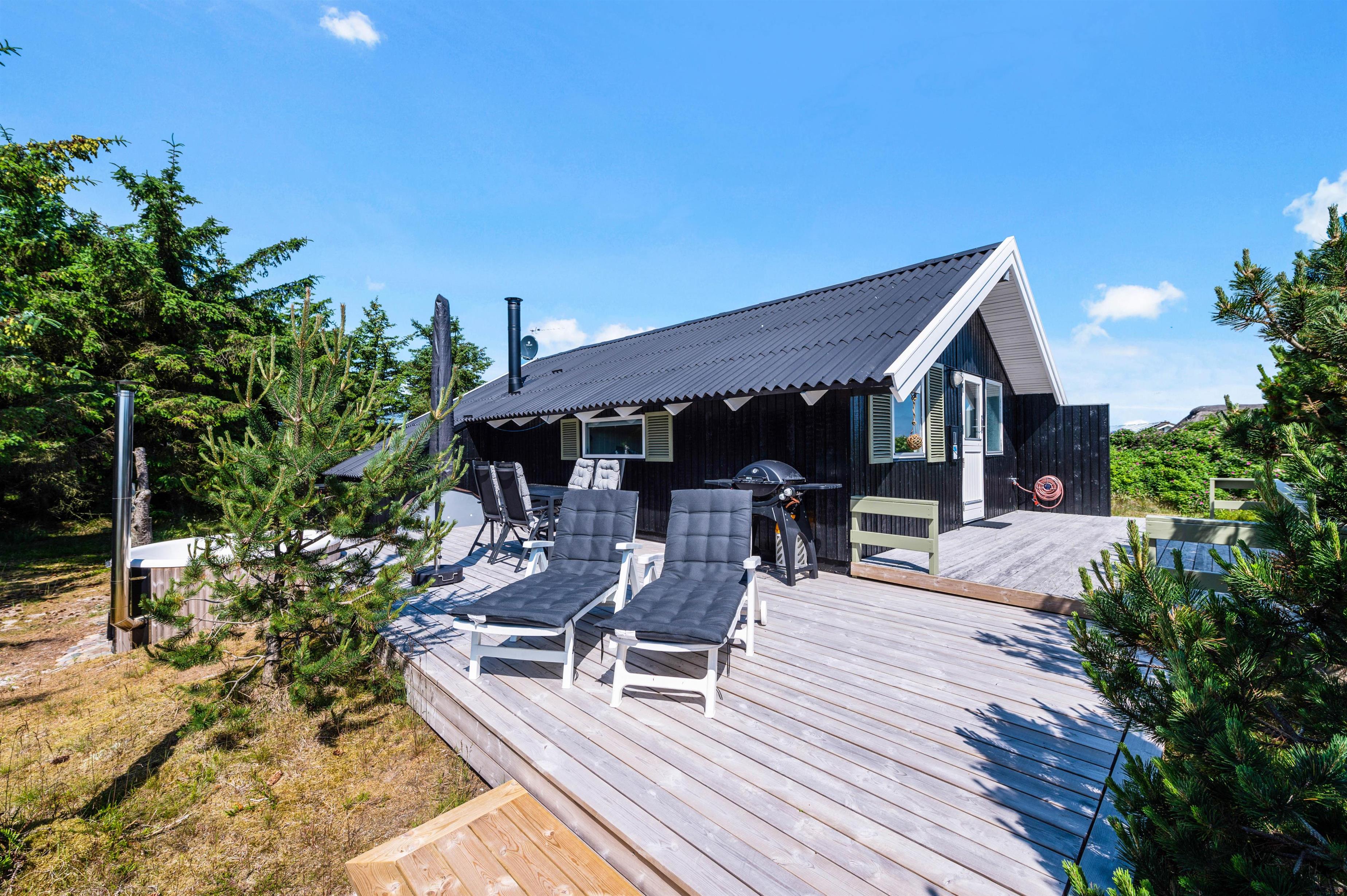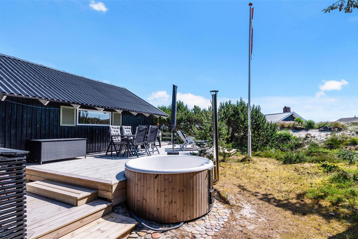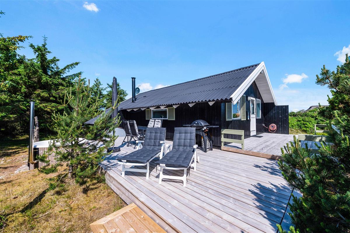 The holiday home on Skodbovej 89 features multiple terraces, ensuring you'll always find a spot for sunbathing or relaxing in the shade with a book. The house stands on a natural plot surrounded by trees and shrubs. Enjoy complete privacy during your holiday while having a barbecue or unwinding in the outdoor hot tub in the evening.