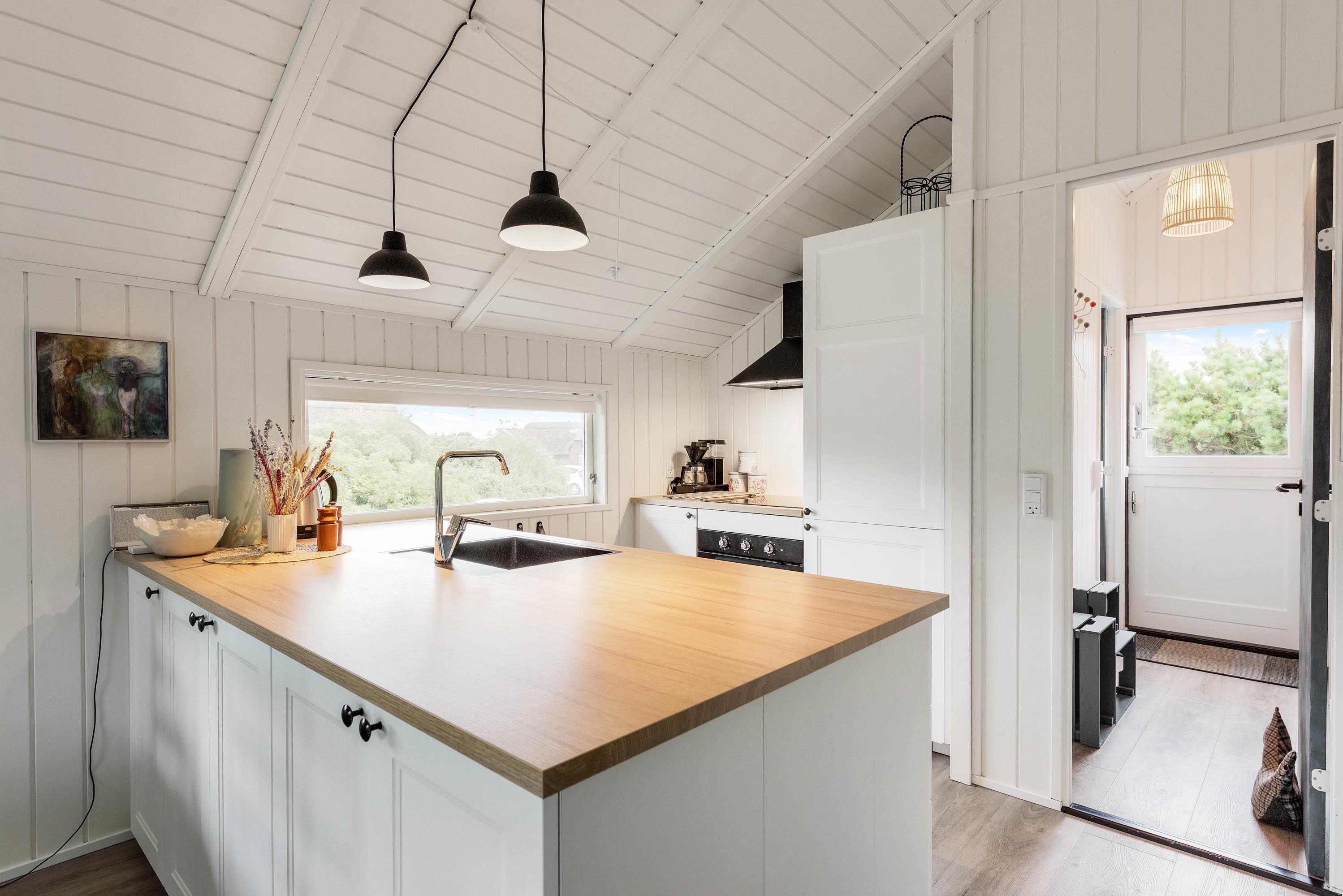 This delightful compact holiday home, comfortably accommodating up to 4 people, was renovated in 2020. The welcoming atmosphere is apparent from the moment you step into the hallway. Dark flooring creates a striking contrast with the white wooden ceilings and walls throughout the holiday home.