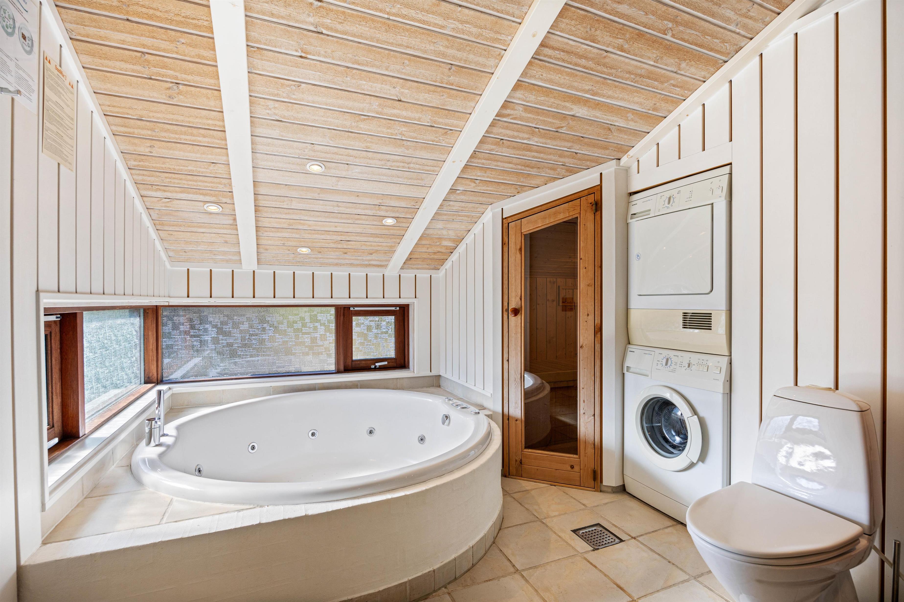 The holiday home has 2 bathrooms, one of which features underfloor heating. After a day outdoors, the sauna and whirlpool invite you to relax. A washing machine and dryer are also available, offering extra convenience during longer stays.