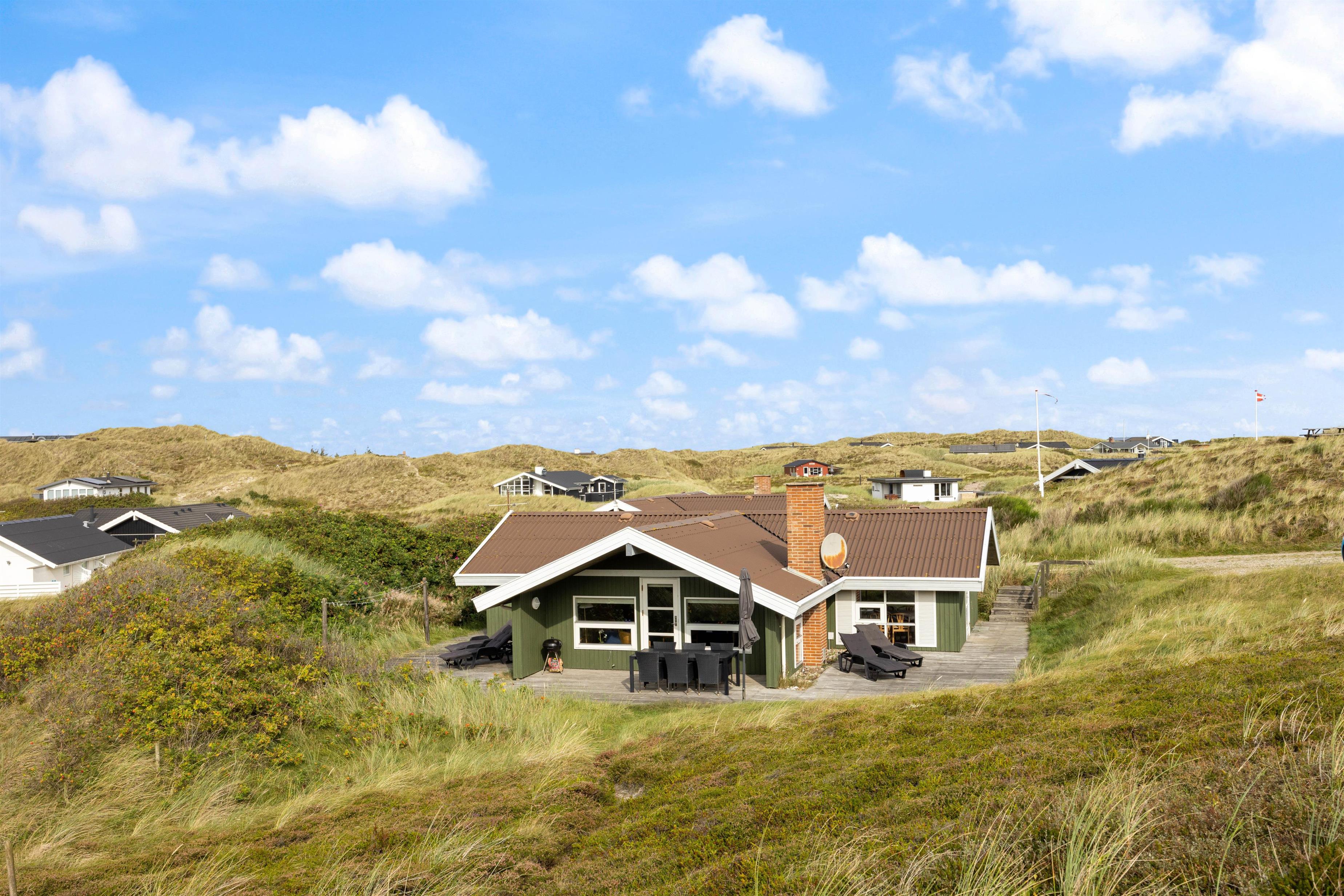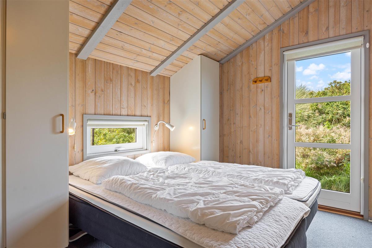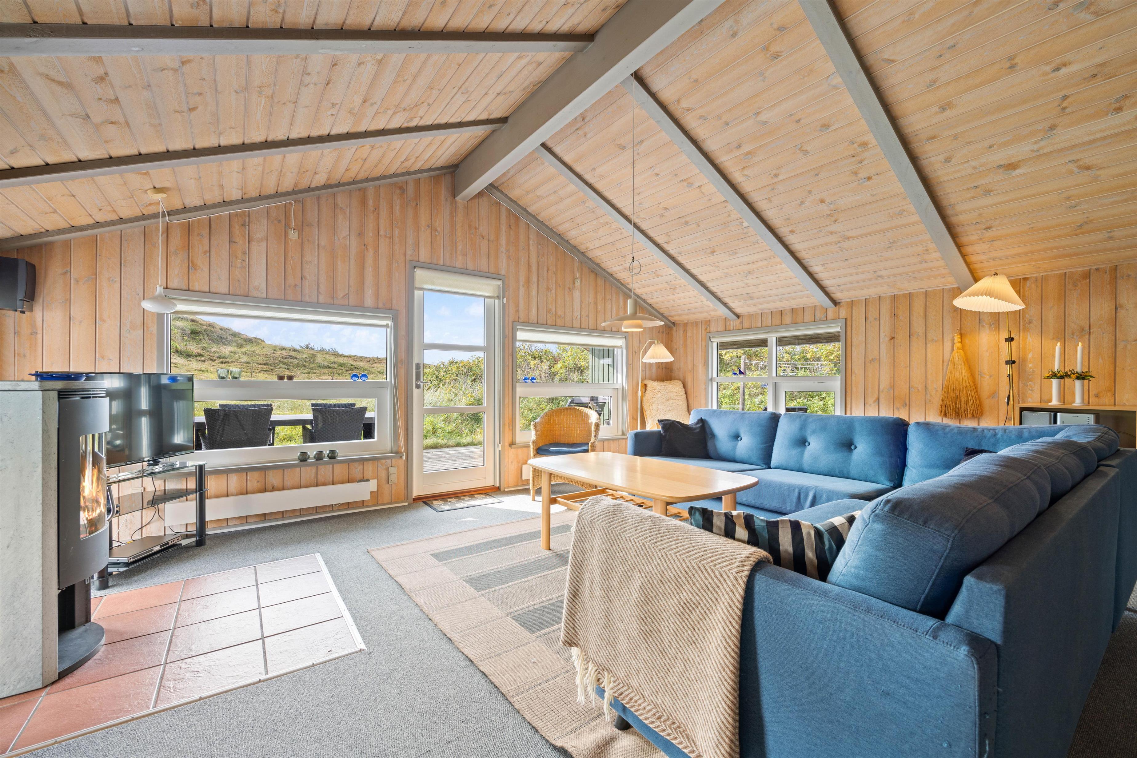 A holiday in Skodbjerge is truly special. Here you'll be close to West Jutland's natural beauty, the North Sea and the Ringkøbing Fjord. This holiday home on Sandvej is comfortable, well-maintained and situated in a peaceful location on a dune plot with stunning views of the surrounding landscape. Please note that there is a staircase leading down to the house from the driveway.