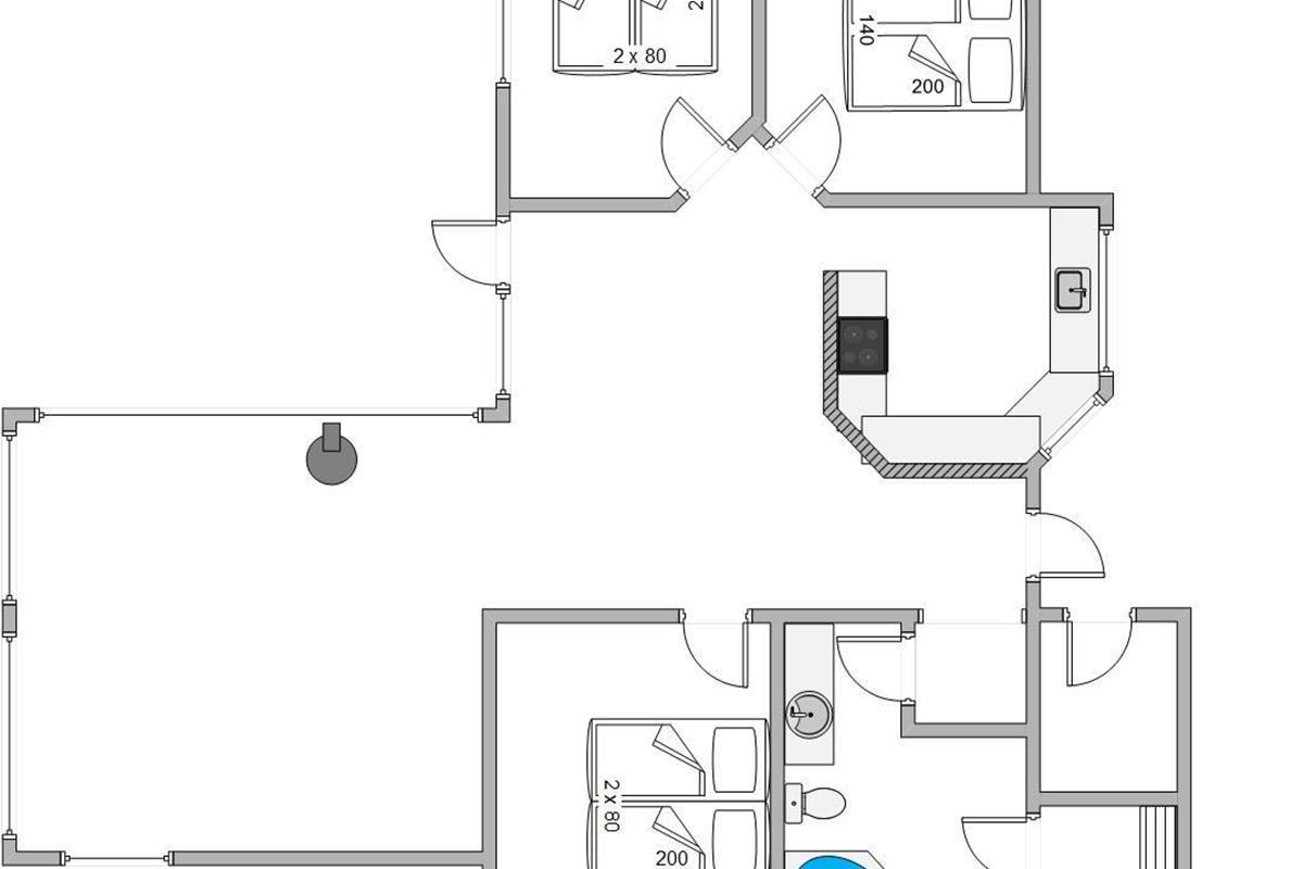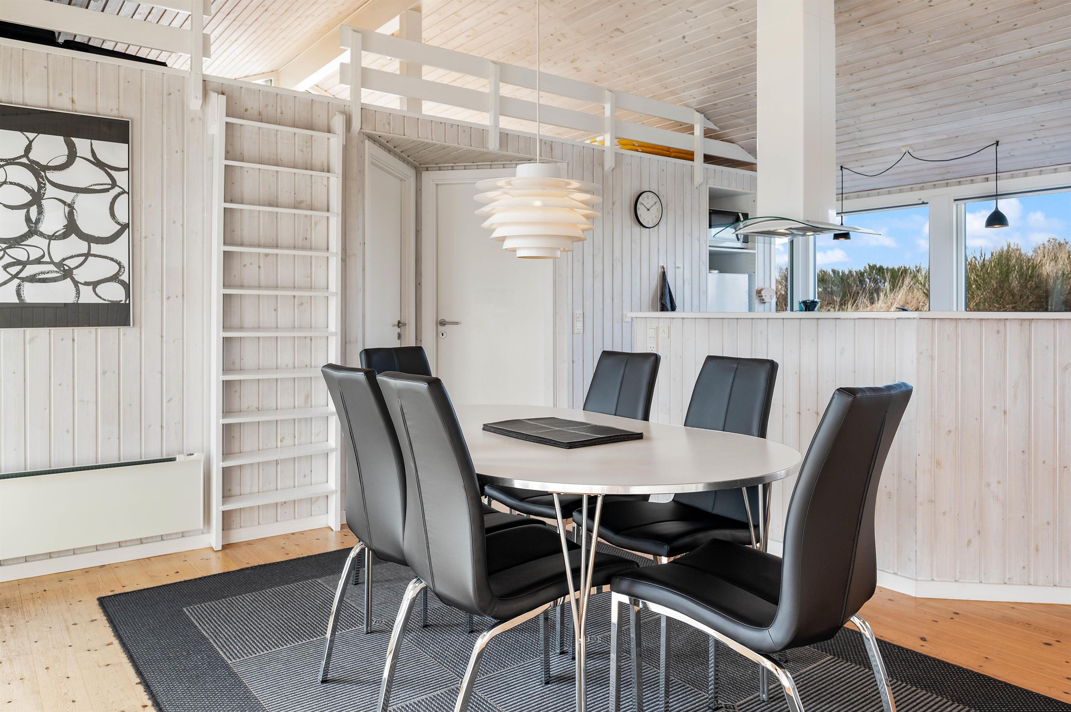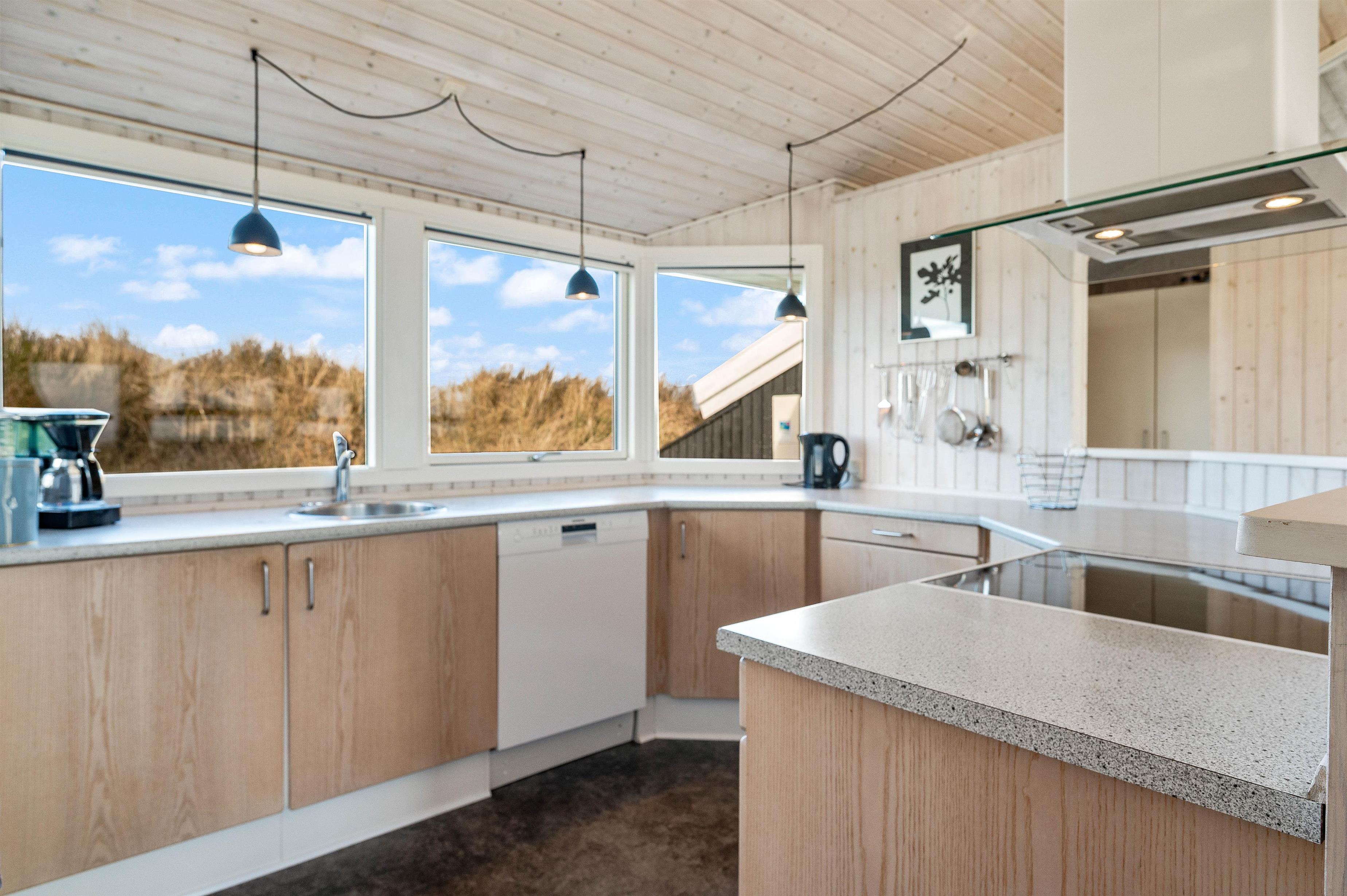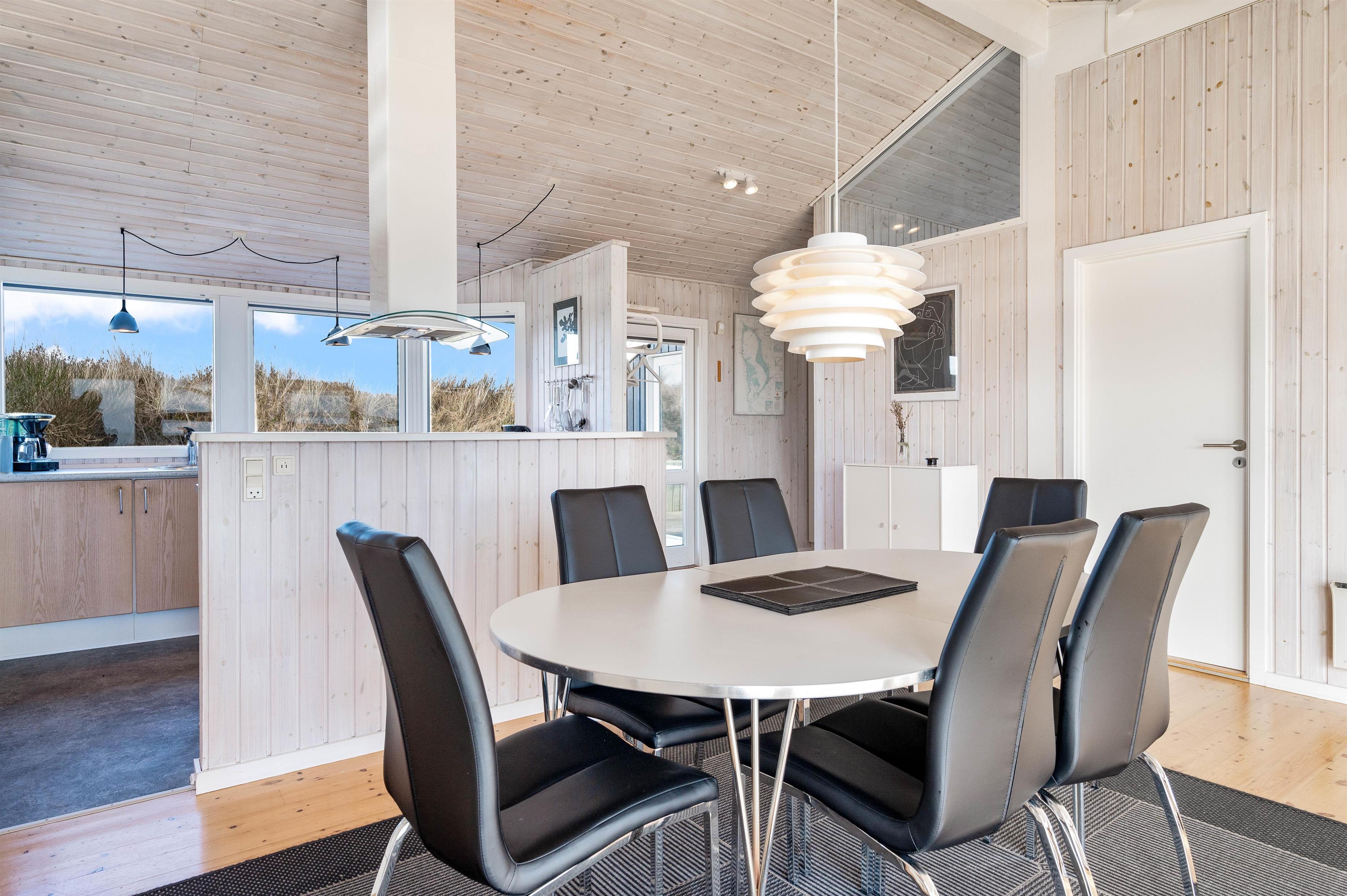 The open-plan kitchen, dining and living area forms the heart of the holiday home. The well-equipped kitchen is perfect for cooking together, and afterwards you can relax in the living area. Here you'll also find the wood-burning stove, providing warmth during the cooler months and creating a perfect holiday atmosphere.