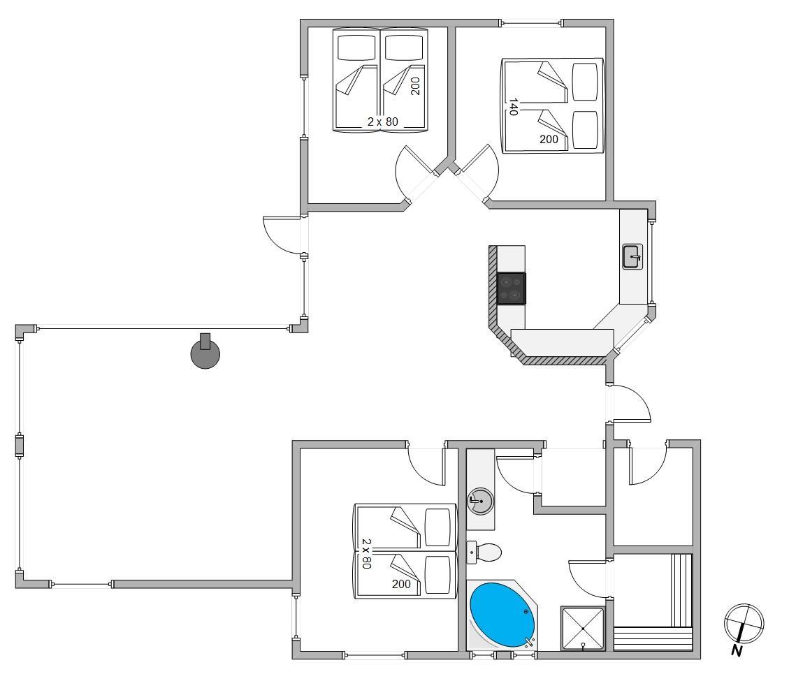 The open terrace, which is partially covered, offers space for undisturbed relaxation in the fresh air while you enjoy the fjord's tranquil setting. A barbecue is also available for enjoyable outdoor dining.