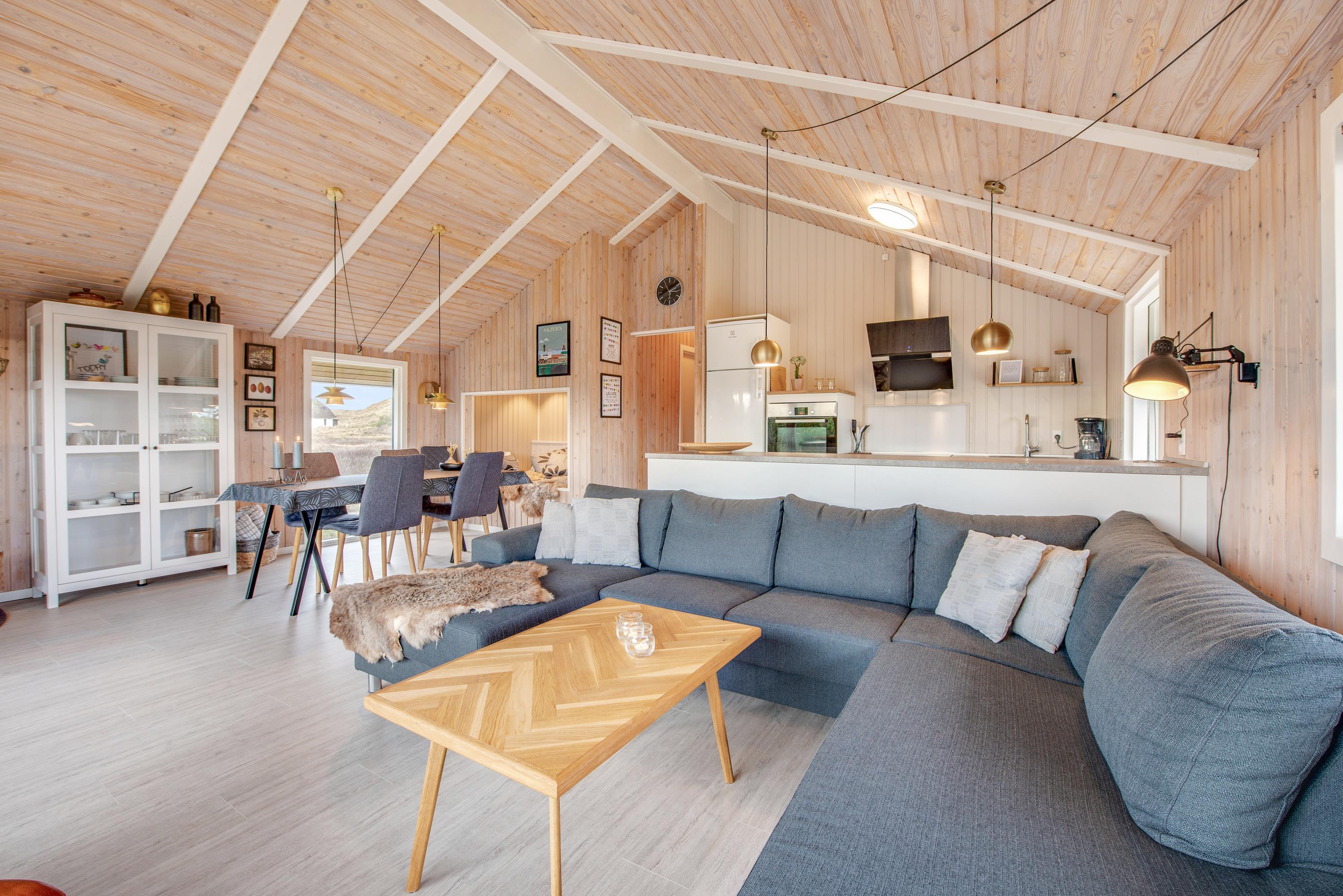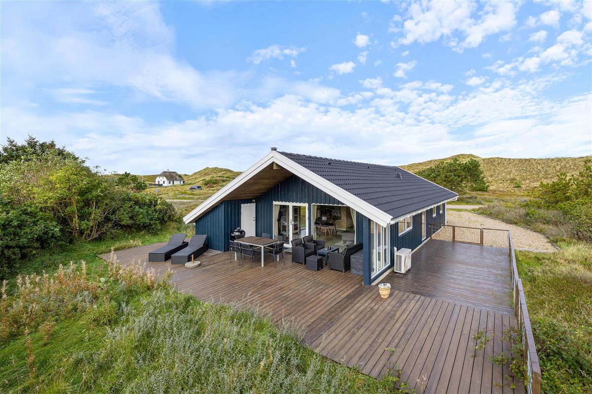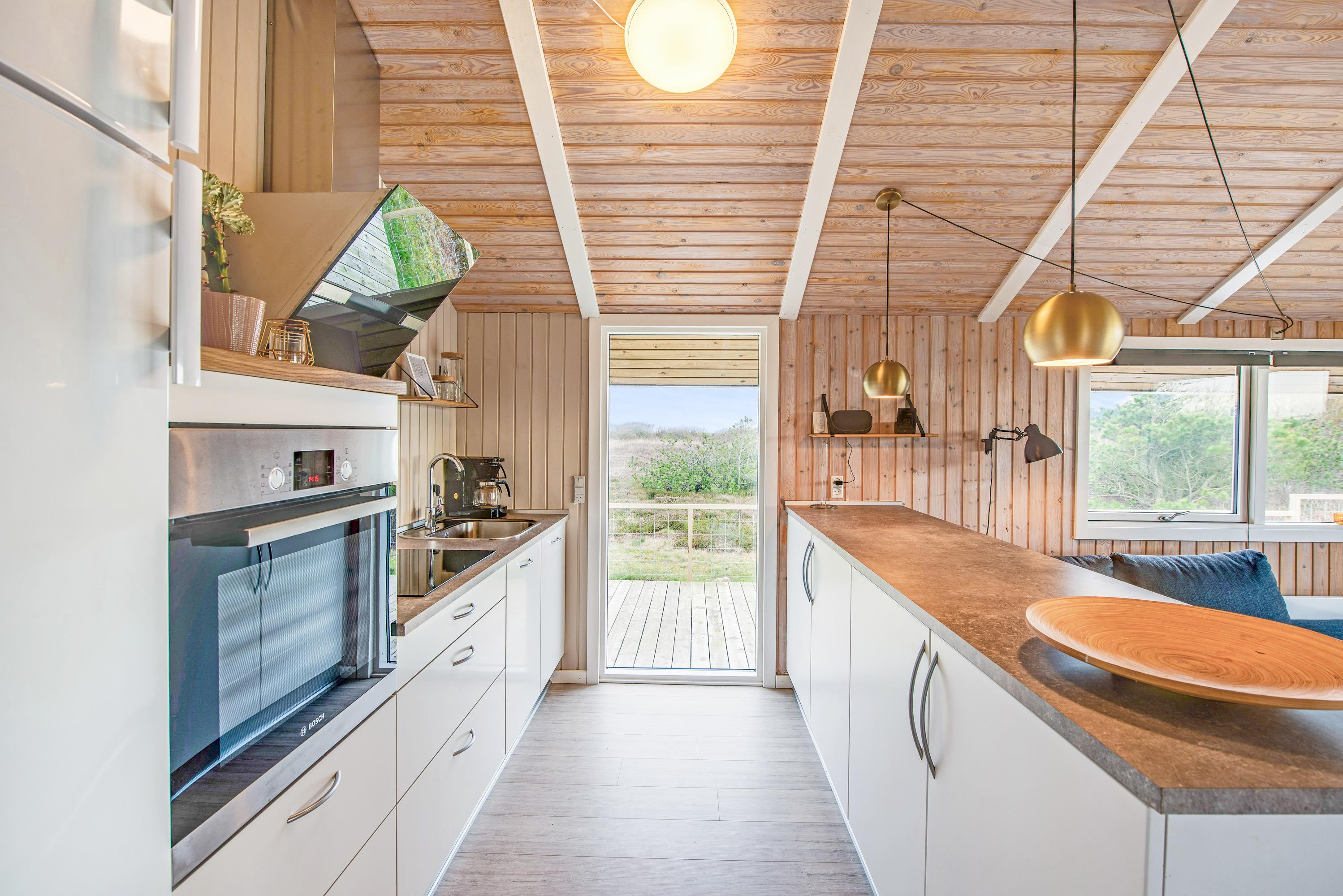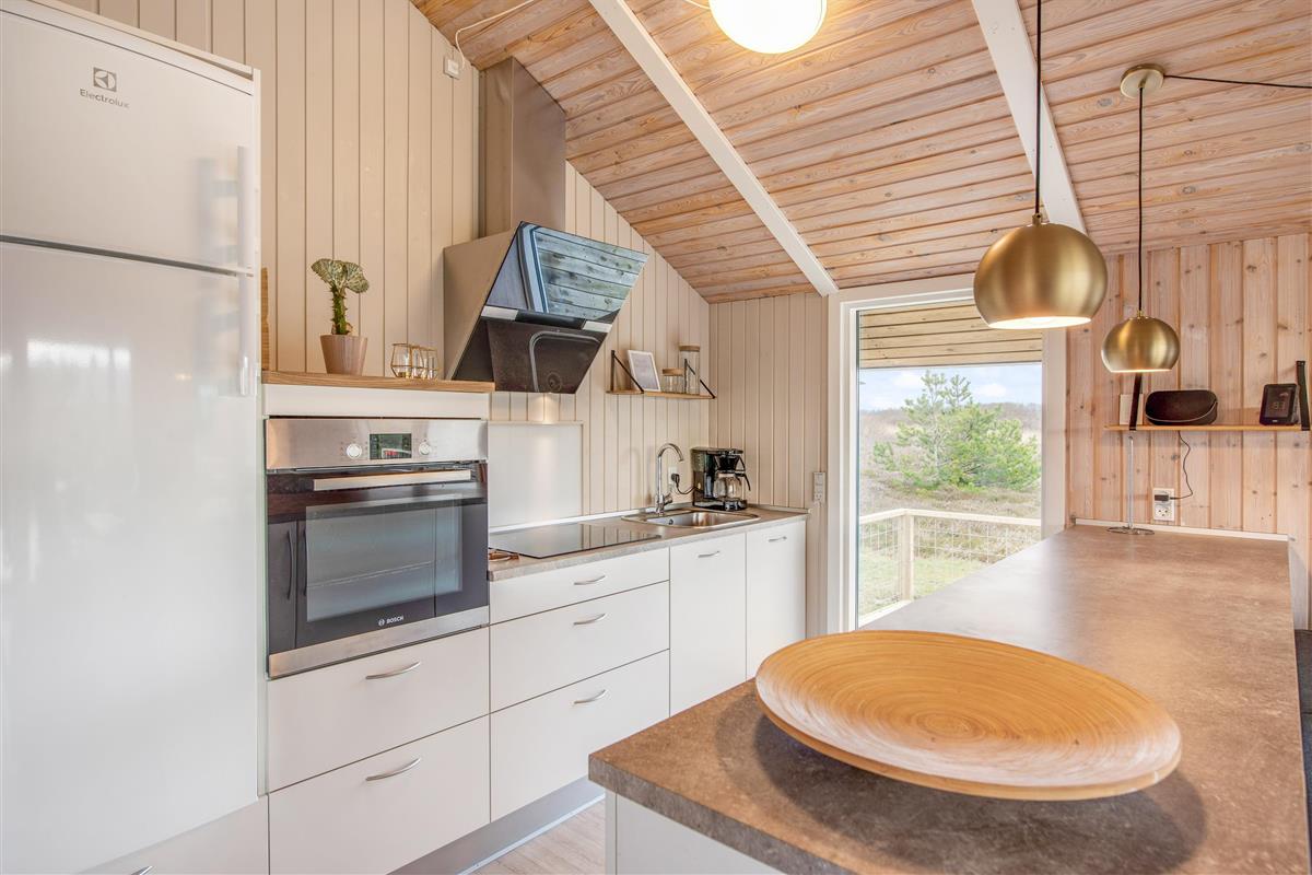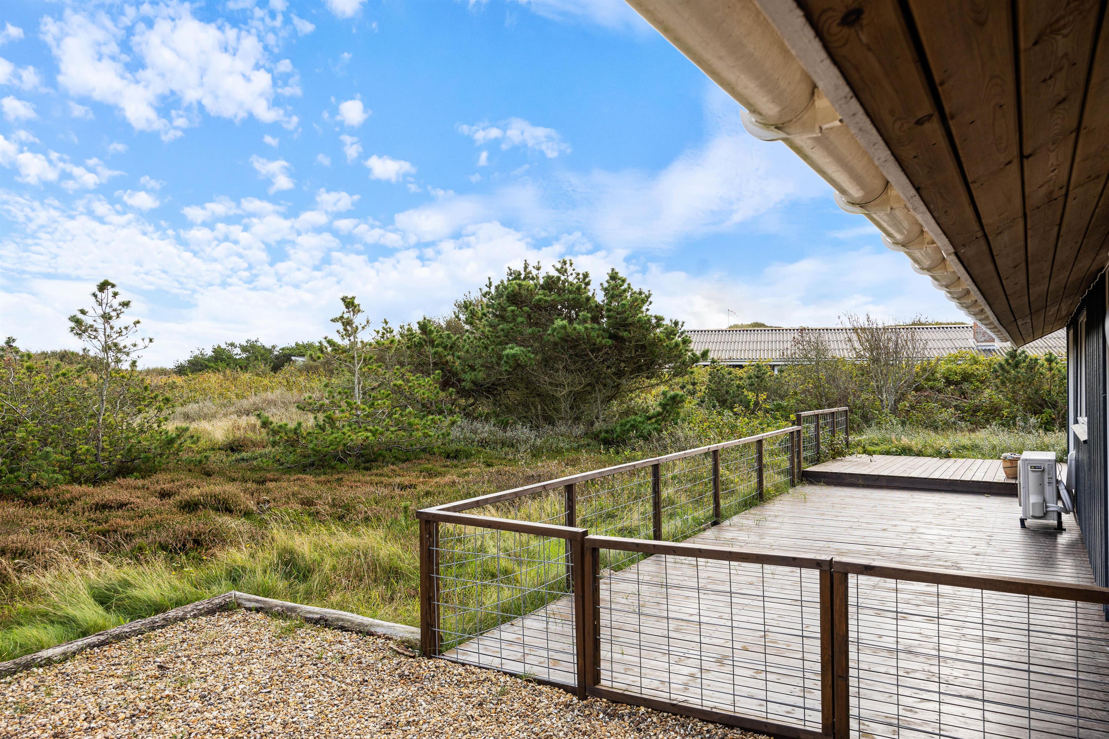 From the living room, you step out onto the holiday home's lovely wooden terrace. Here you'll find both a covered section, offering shelter in all weather conditions, and an open area where you can enjoy the sunshine on warm summer days. Garden furniture, sun loungers and a barbecue are provided - everything you need to enjoy good weather and round off the day with a lovely barbecue dinner in the warm evening sun.