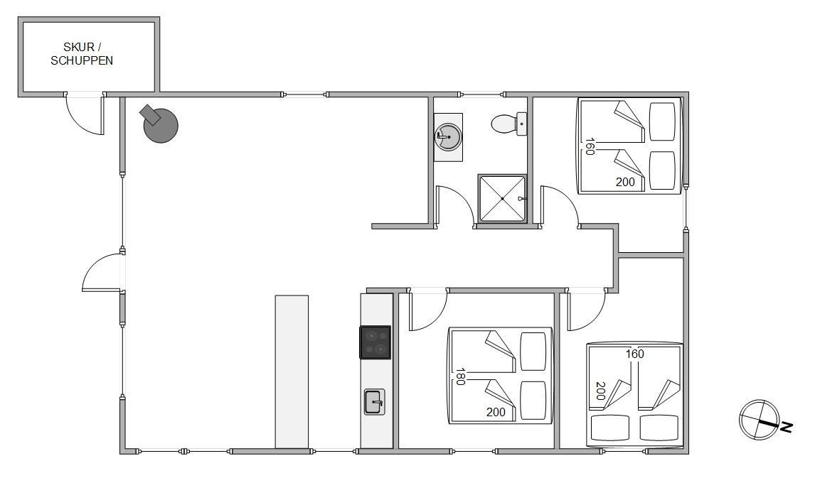 The small cottage at Skodbovej 9 radiates a special charm both inside and out. The holiday home was renovated in 2019, which is particularly evident in the interior, where modern Scandinavian design elements blend successfully with classic cottage comfort. The heart of the house is the living room, which combines the kitchen, dining area and living space. This layout puts togetherness and comfort at the centre. A compact dishwasher takes care of practical tasks like washing up.