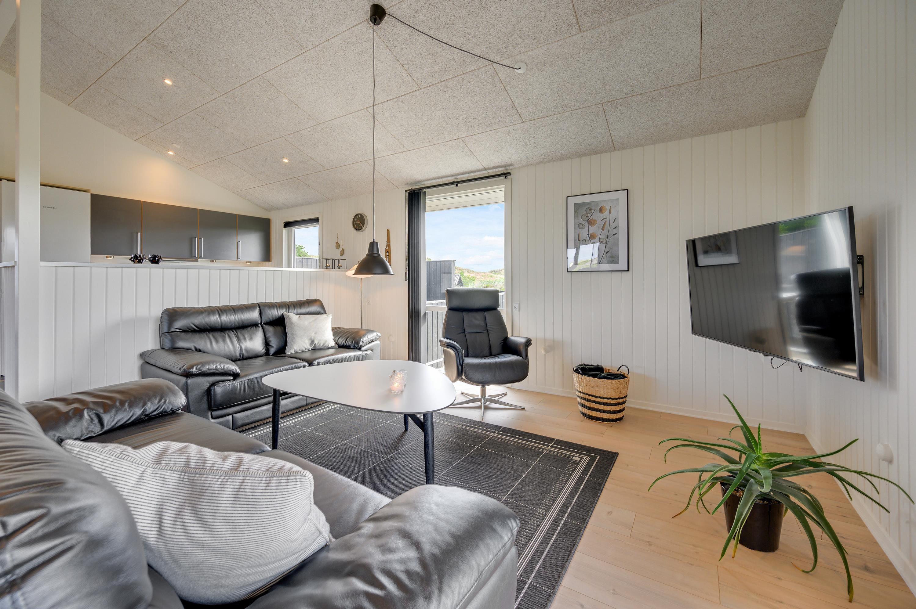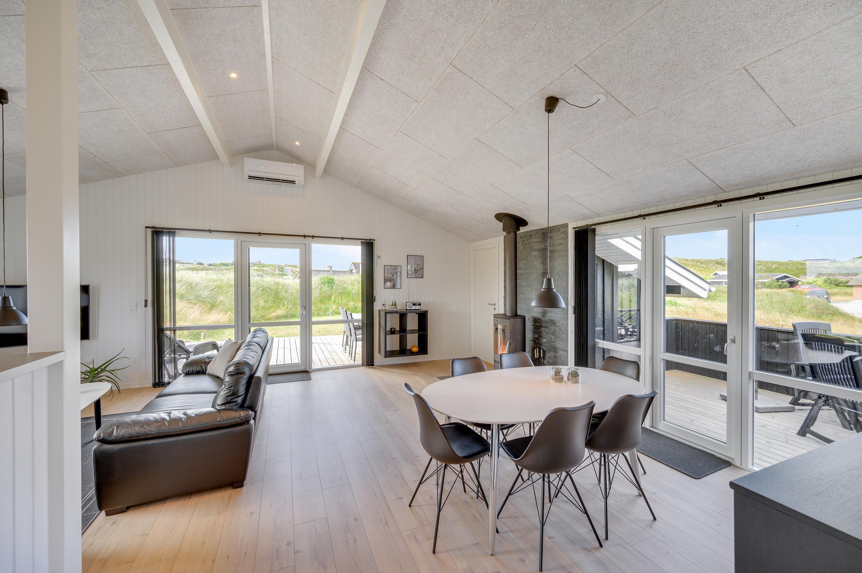 This family-friendly holiday home for 6 people, renovated in 2019, is located on the western side of Ringkøbing Fjord, on a narrow strip of land just 700 metres from the North Sea.