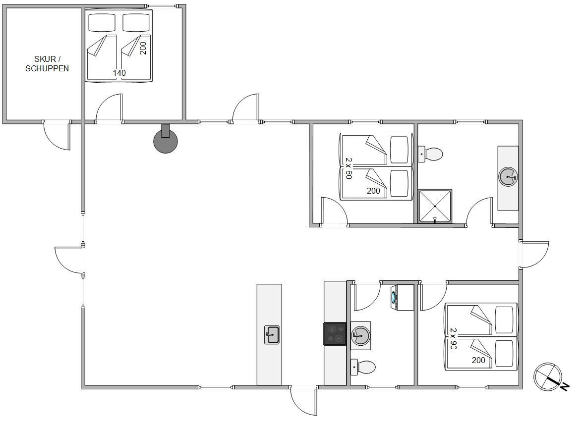Park your car at Skodbjergevej 4 and let children and dogs roam free in the natural grounds while you settle into the house and distribute the three bedrooms, each with a double bed. The holiday home offers a bathroom and a guest WC with washing machine and tumble dryer.