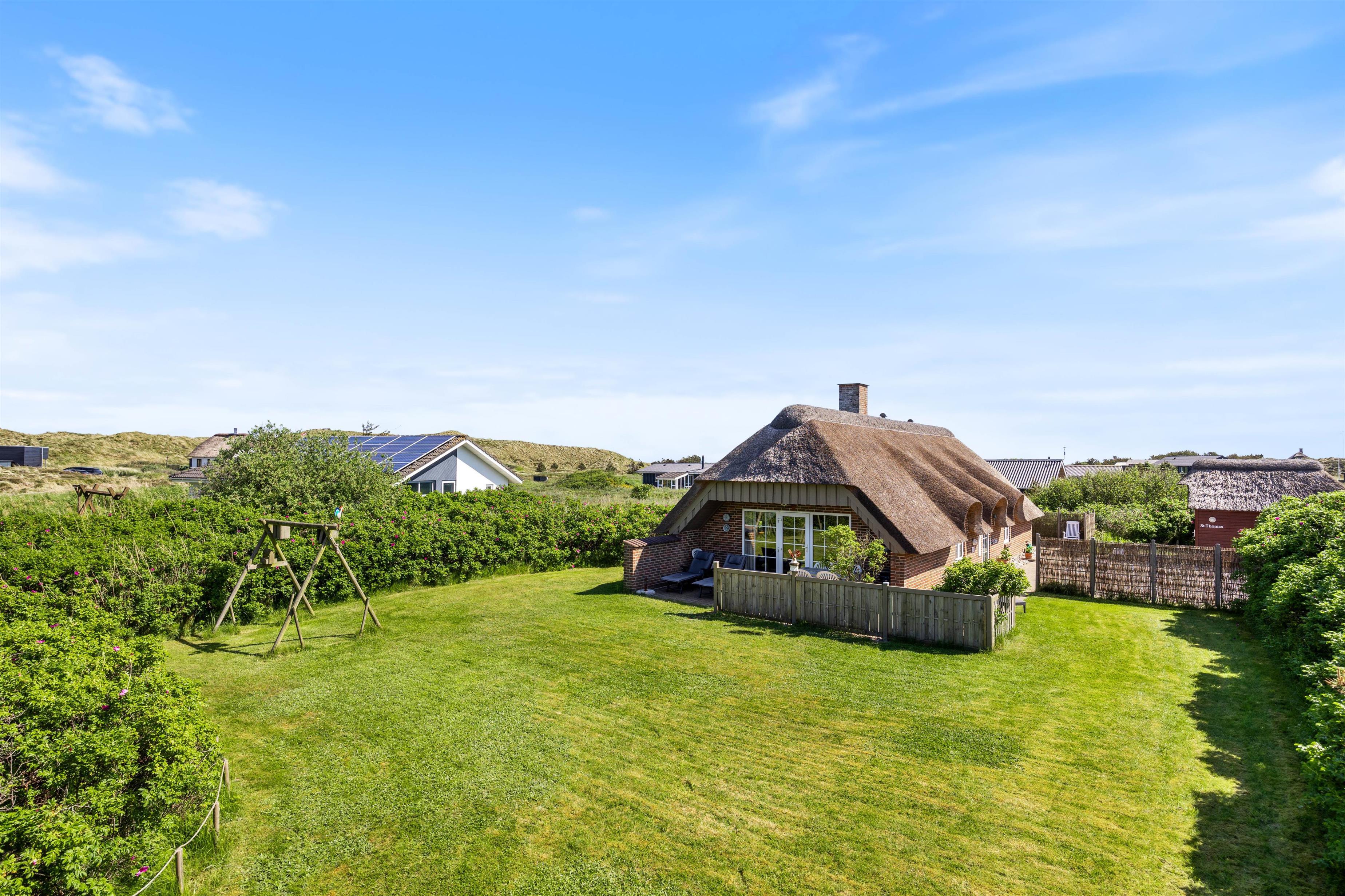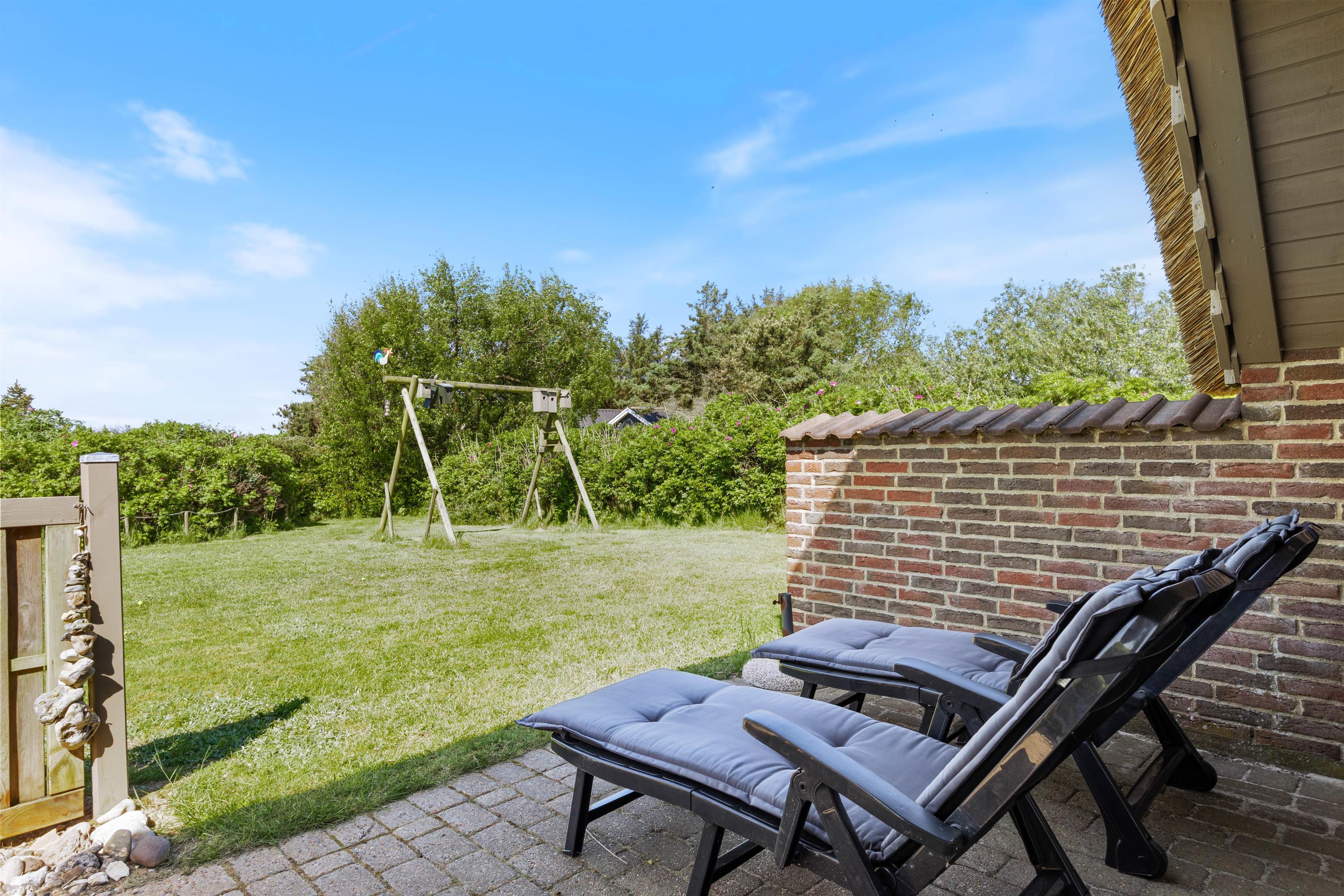 A barbecue is available for sociable evening gatherings, while children can enjoy themselves on the swing or play ball games on the lawn. The outdoor area is perfect for enjoying the fine weather and fresh sea air.