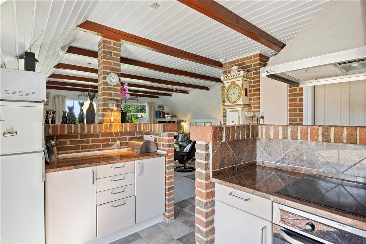 The energy-efficient heat pump ensures a comfortable temperature even on cold days. For entertainment, there's a television and DVD player, perfect for relaxed film nights or watching favourite series. The adjoining kitchen, equipped with a modern induction hob and dishwasher among other amenities, provides everything needed for cooking with family or friends. Why not try your hand at a traditional Danish recipe?