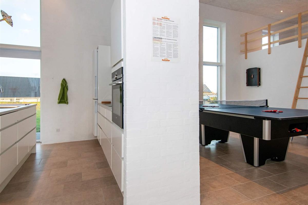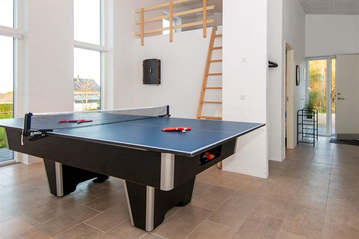 In diesem Ferienhaus kann eigentlich niemandem langweilig werden, da sich auf dem Rasengrundstück auch noch einige Spielgeräte für die kleineren Kinder befinden. Im Aktivitätsraum gibt es Billard, Tischtennis und Darts für die Freizeitgestaltung. Meer und Strand sind zudem nahe und auch der Ferienort Fjellerup mit mehreren Restaurants, Minigolf, Supermarkt, Eisdiele, Imbiss und beliebter Waffelbäckerei liegt nicht weit entfernt. Um den Außen-Whirlpool zwischen dem 1. Oktober und dem 1. März zu nutzen, bitte eine Bestellung beim örtlichen Büro aufgeben.