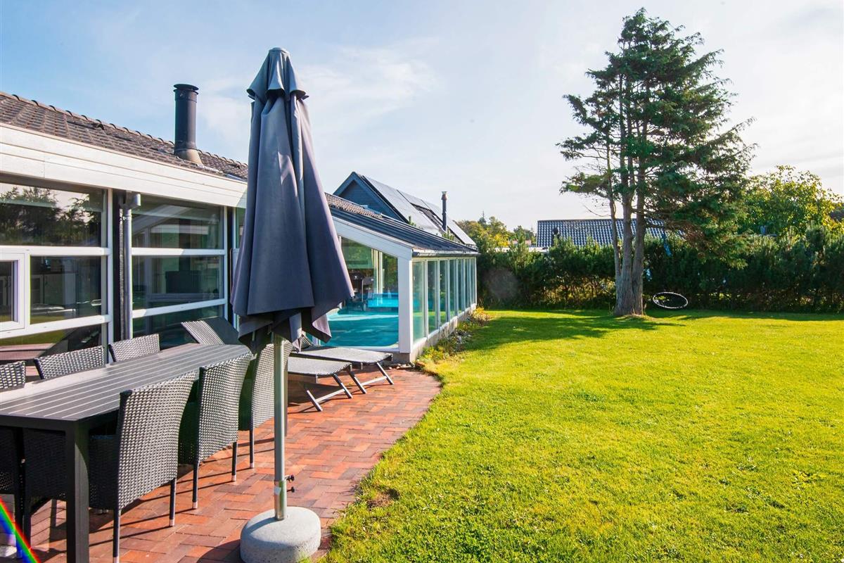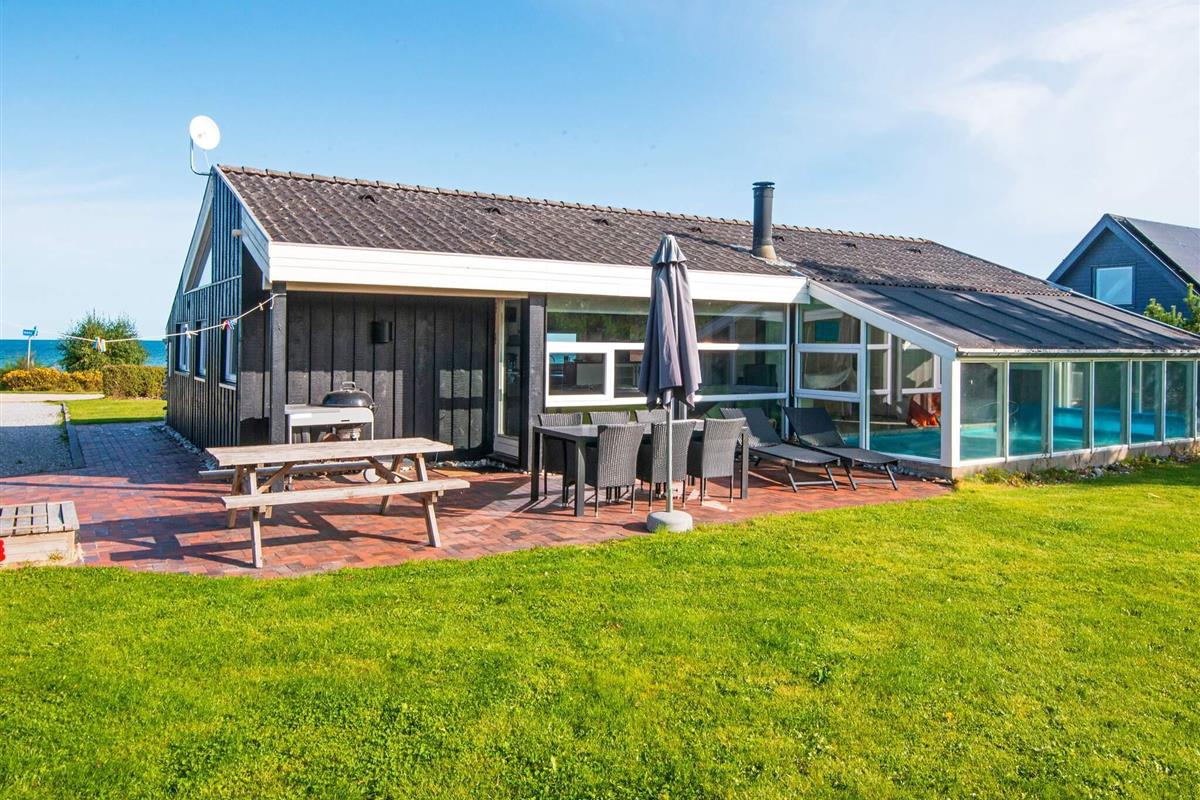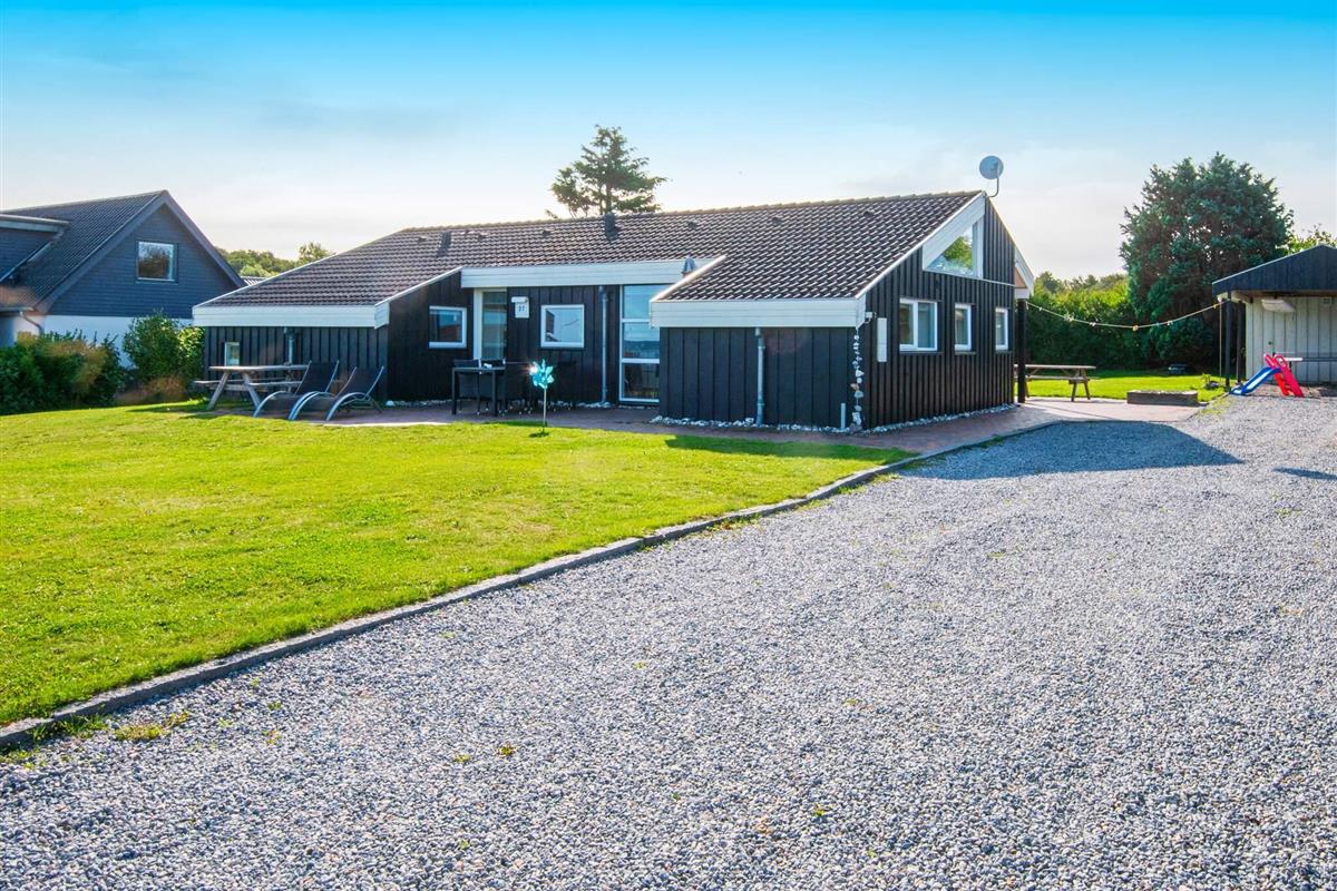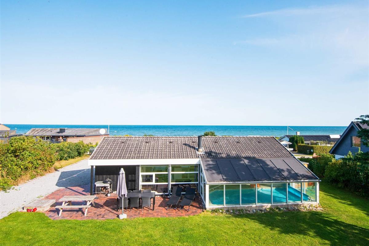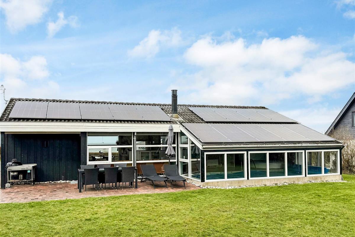 Ferienhaus mit Pool, whirlpool und Sauna sowie Meerblick und aktraktiver Lage, nur 100 m von einem kinderfreundlichen Sandstrand entfernt. Der offene Küchenbereich mit Induktionskochfeldern ist in den Wohnbereich integriert und wurde 2004 renoviert und 2018 mit einem Induktionsherd neu ausgestattet. Dort steht auch ein Holzofen und eine energiesparende Wärmepumpe für behagliche Wärme an kühleren Tagen bereit. Küche und Wohnraum sind mit Fußbodenheizung ausgestattet. Zusätzlich zu den vier Schlafzimmern des Hauses gibt es einen Schlafboden mit vier Schlafplätzen, die sich vor allem für größere Kinder anbieten. Auf dem offenen Naturgrundstück gibt es eine Schaukel und einen Sandkasten sowie eine große Rasenfläche für Spiel und Spaß im Freien. Die Eltern können derweil auf der großen, offenen Terrasse sonnenbaden oder das Abendessen grillen und den herrlichen Blick aufs Meer genießen.