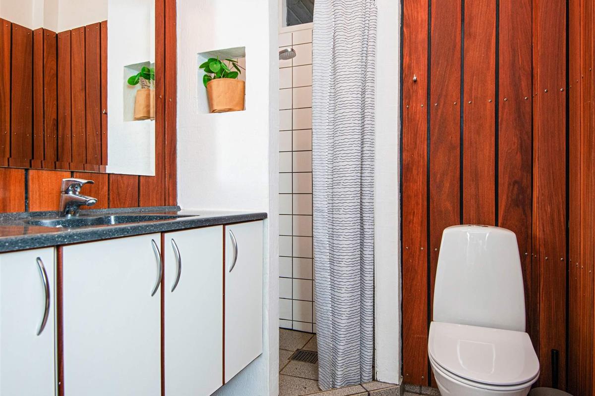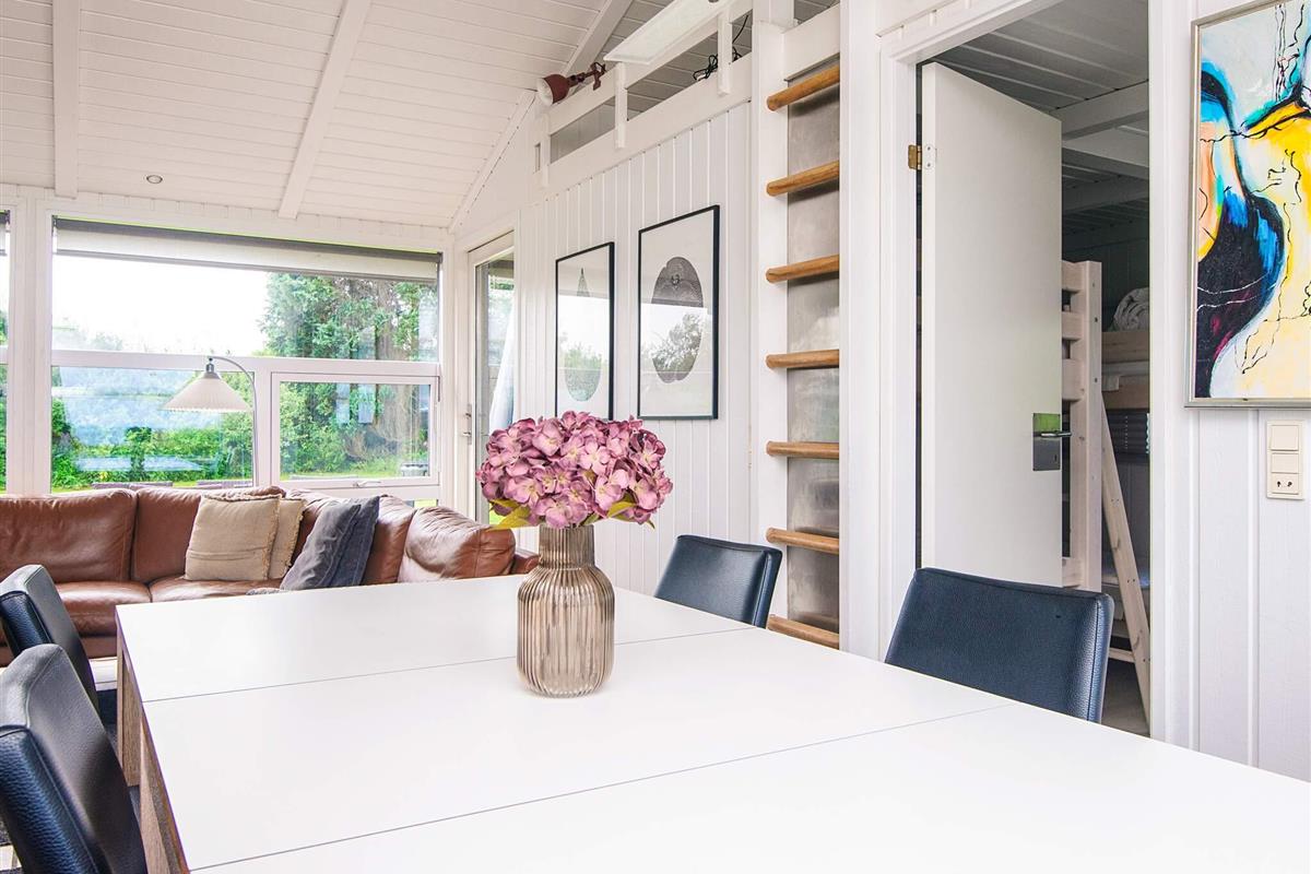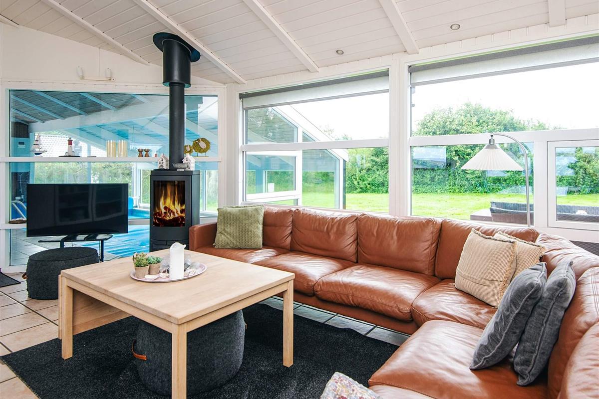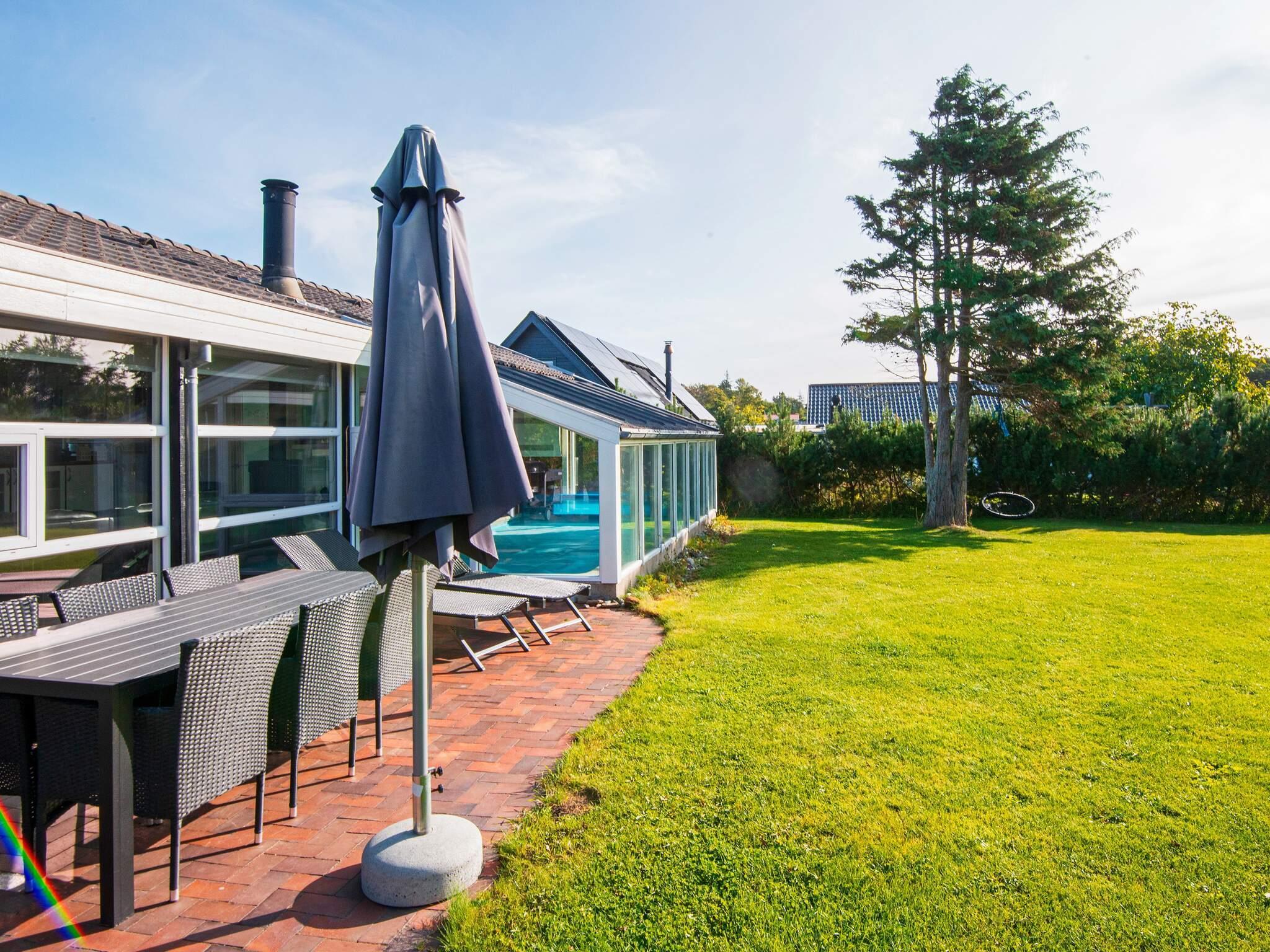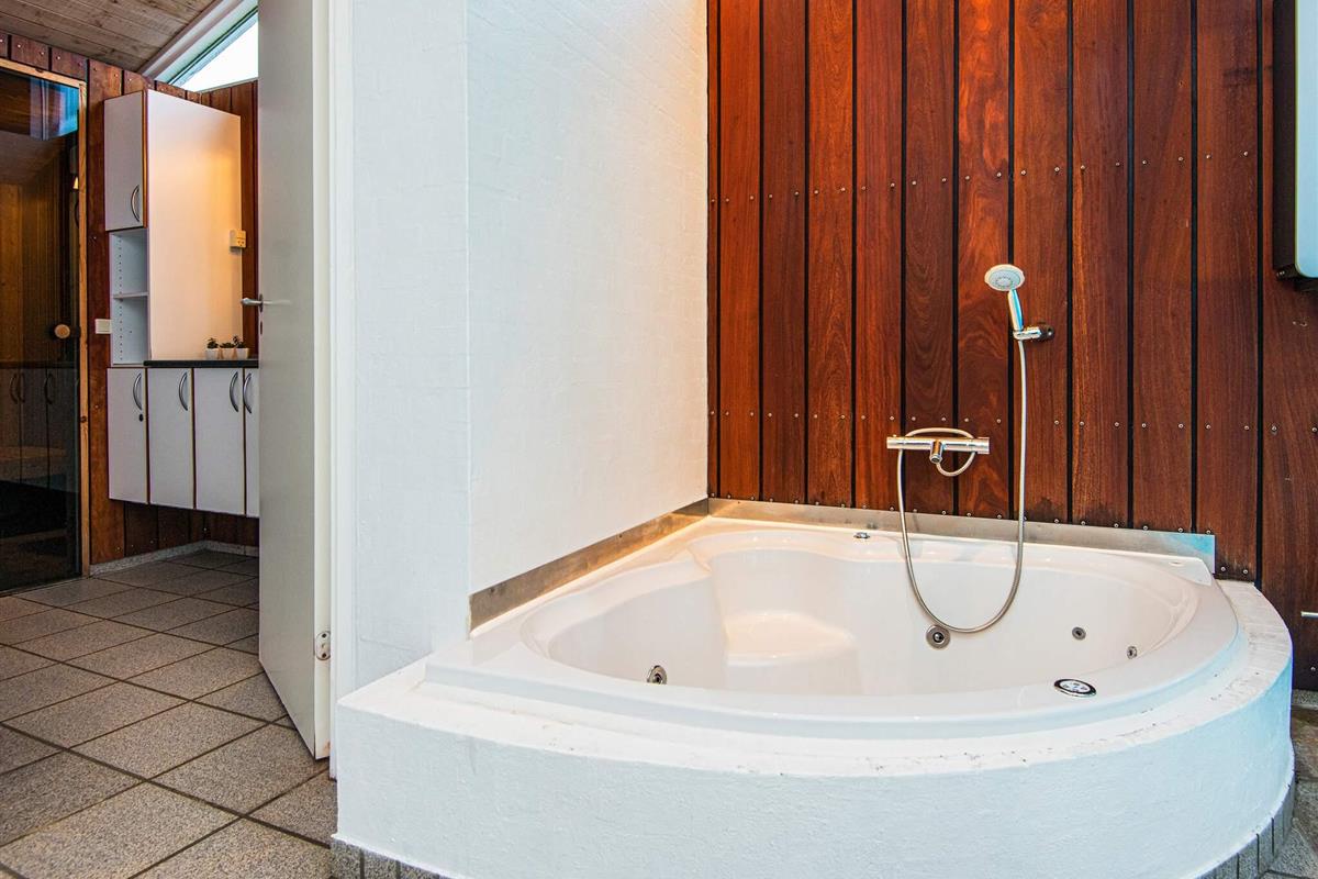 Ferienhaus mit Pool, whirlpool und Sauna sowie Meerblick und aktraktiver Lage, nur 100 m von einem kinderfreundlichen Sandstrand entfernt. Der offene Küchenbereich mit Induktionskochfeldern ist in den Wohnbereich integriert und wurde 2004 renoviert und 2018 mit einem Induktionsherd neu ausgestattet. Dort steht auch ein Holzofen und eine energiesparende Wärmepumpe für behagliche Wärme an kühleren Tagen bereit. Küche und Wohnraum sind mit Fußbodenheizung ausgestattet. Zusätzlich zu den vier Schlafzimmern des Hauses gibt es einen Schlafboden mit vier Schlafplätzen, die sich vor allem für größere Kinder anbieten. Auf dem offenen Naturgrundstück gibt es eine Schaukel und einen Sandkasten sowie eine große Rasenfläche für Spiel und Spaß im Freien. Die Eltern können derweil auf der großen, offenen Terrasse sonnenbaden oder das Abendessen grillen und den herrlichen Blick aufs Meer genießen.